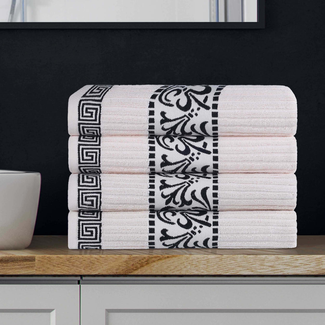 Cotton Terry Greek Key Bath Towel Set of 4