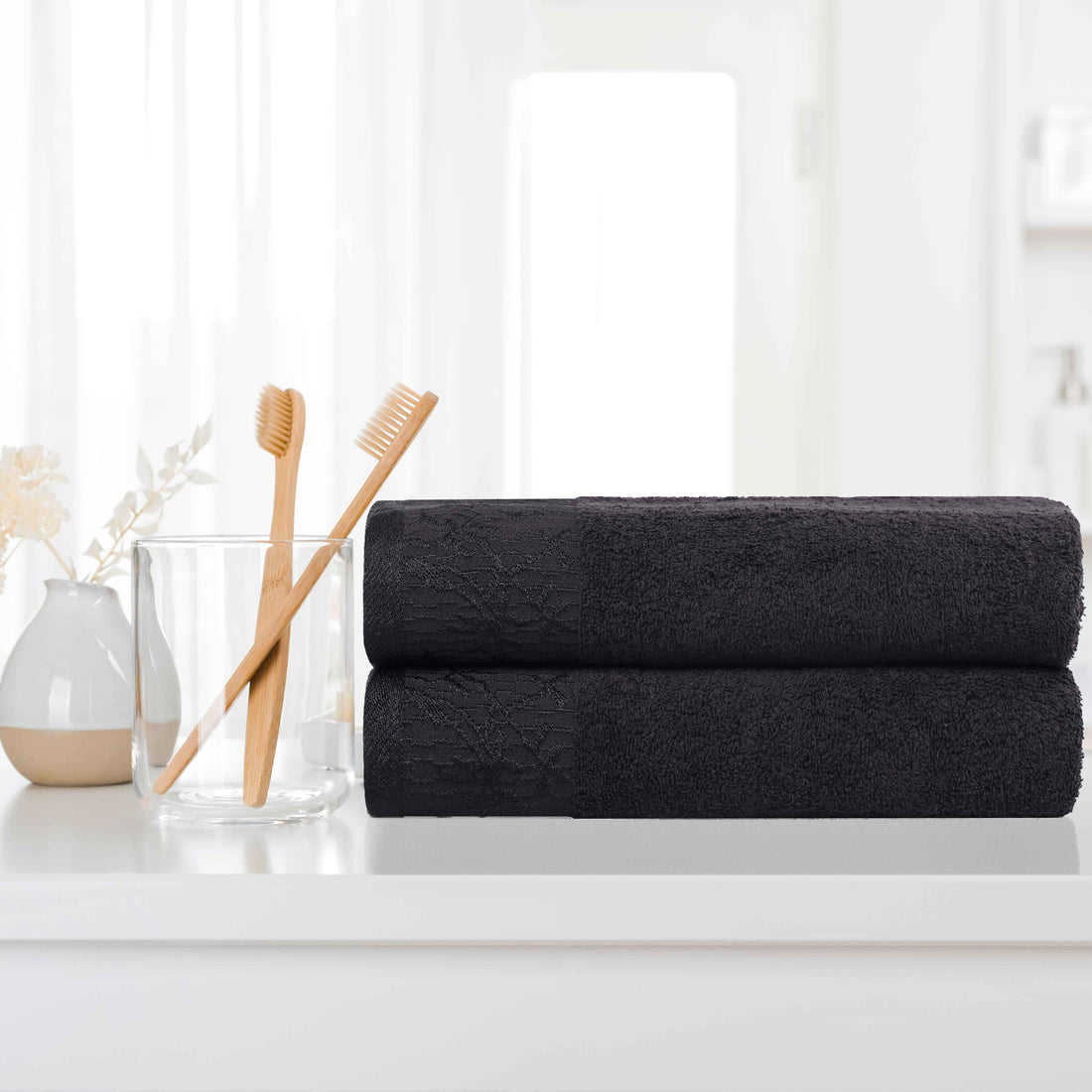Wisteria Cotton Floral Jacquard Border Bath Towels, Set of 2
