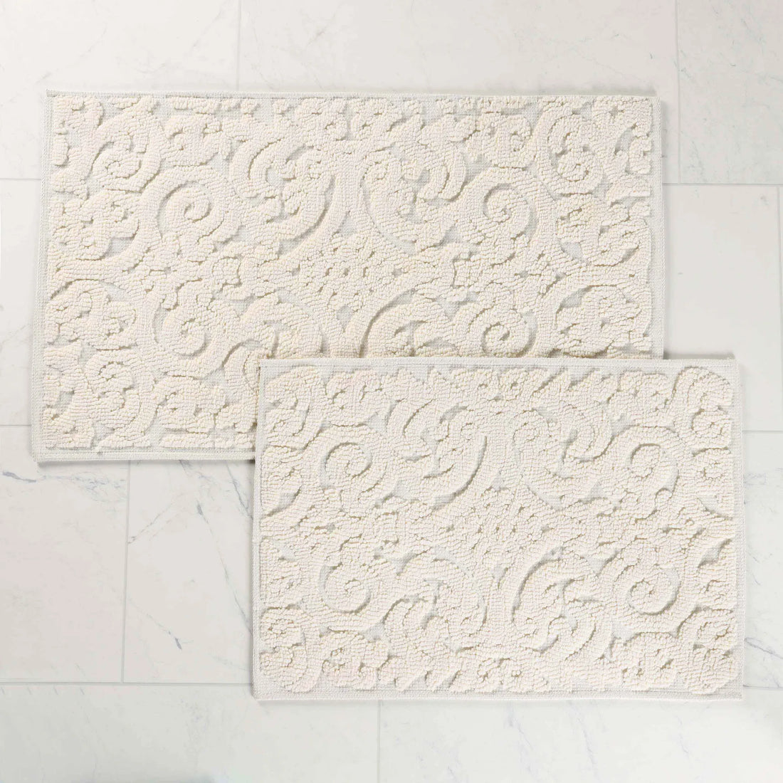 Venere Floral Scroll Textured Machine Washable Bath Rugs, Set of 2