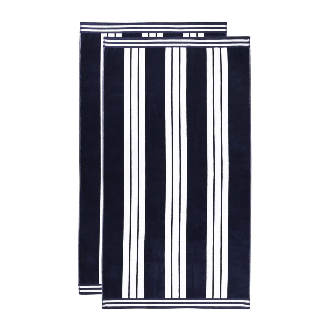 Nautical Stripe Oversized Cotton Beach Towel Set of 2 Piece