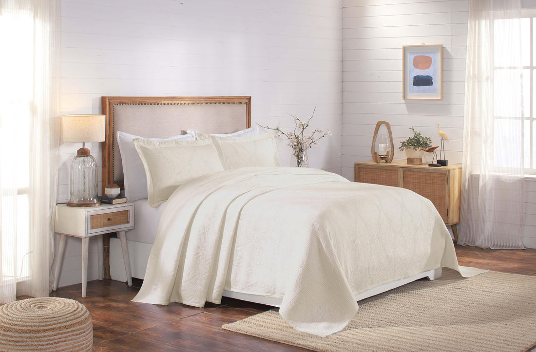 Lightweight Cotton Bedspread Sets 3-Piece Serenity Wedding Ring Jacquard Matelassé