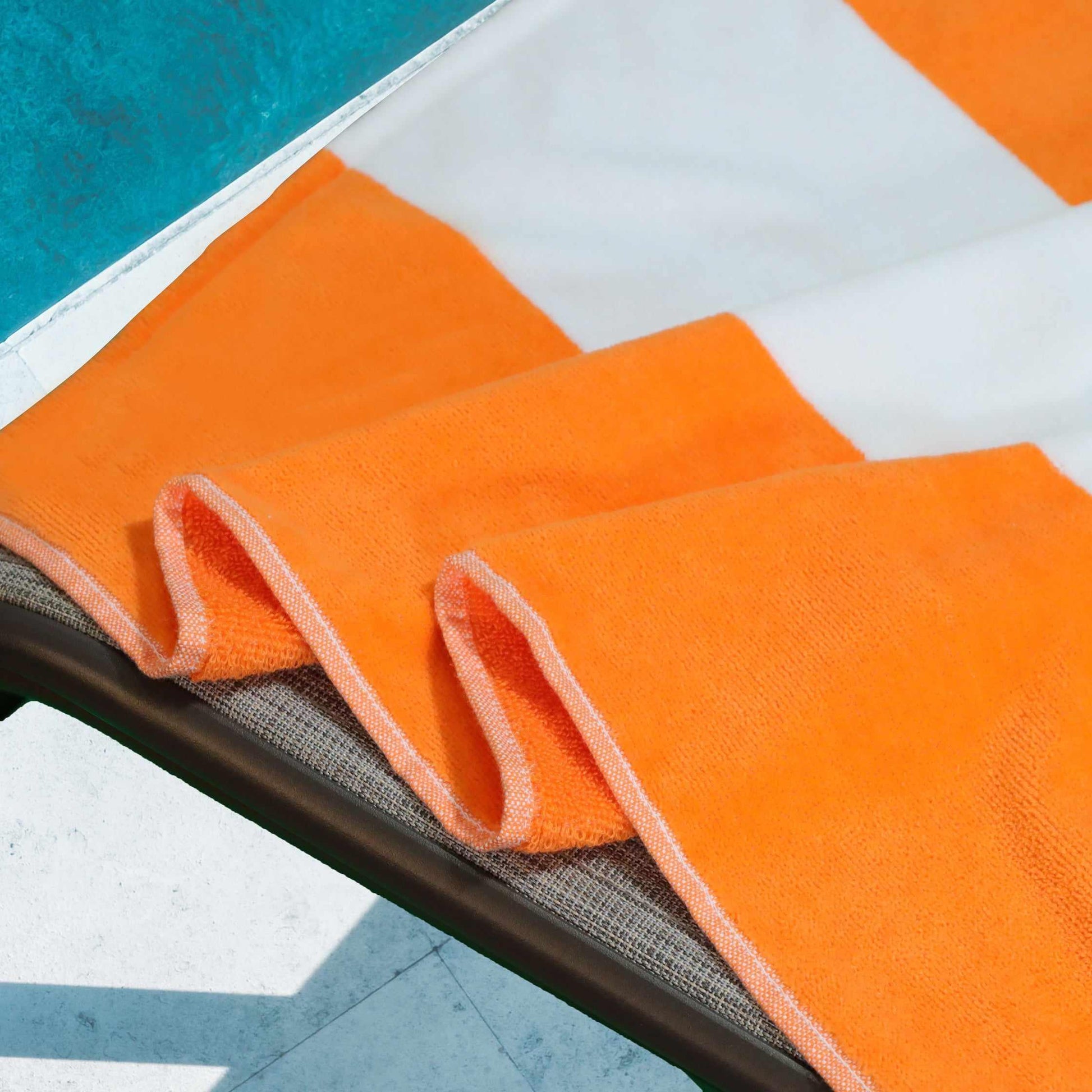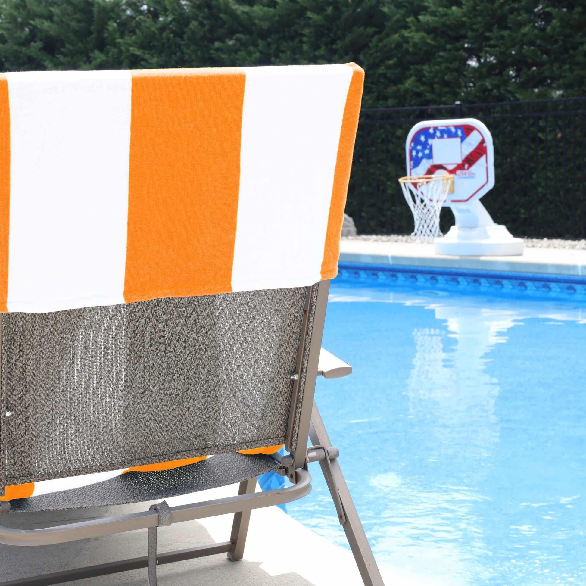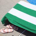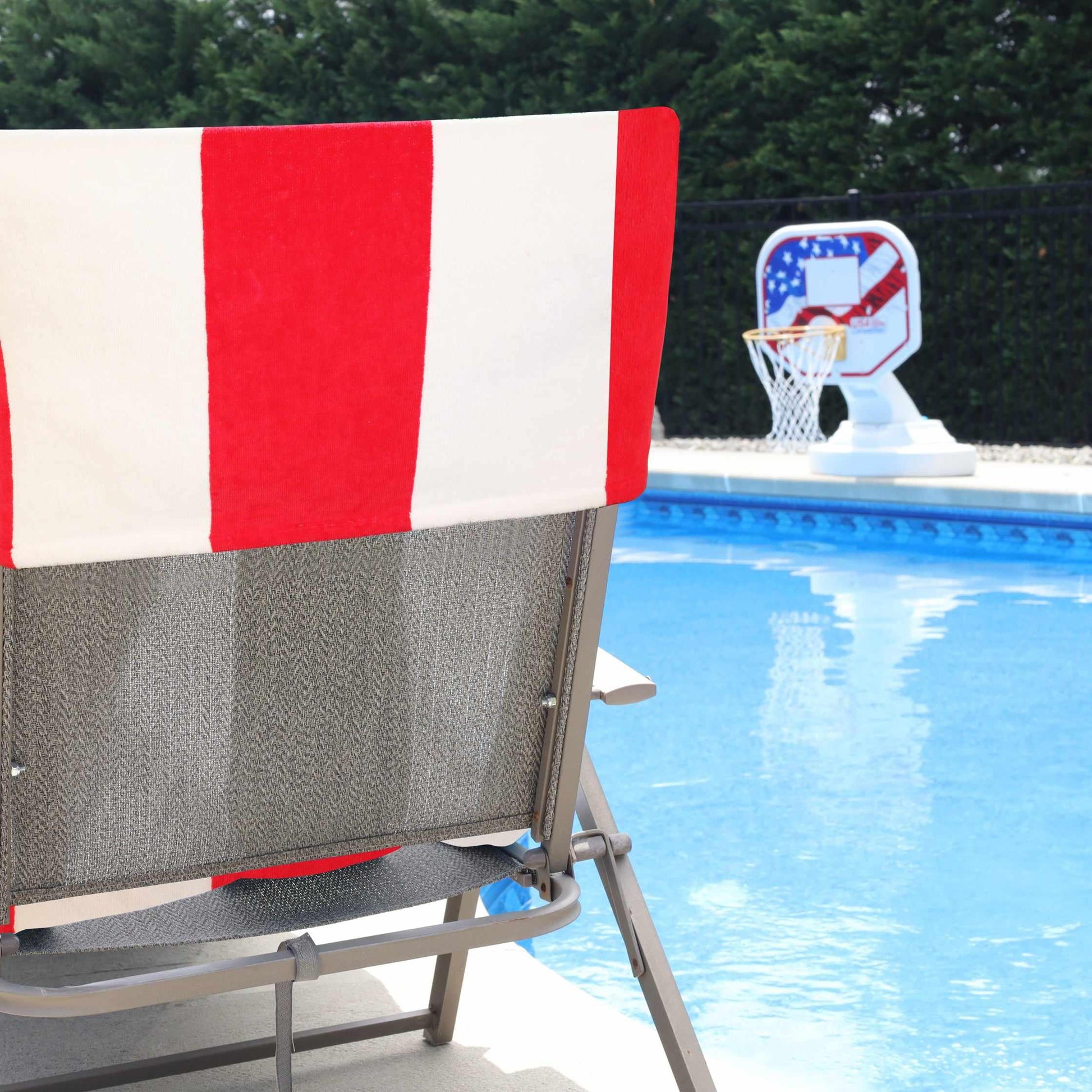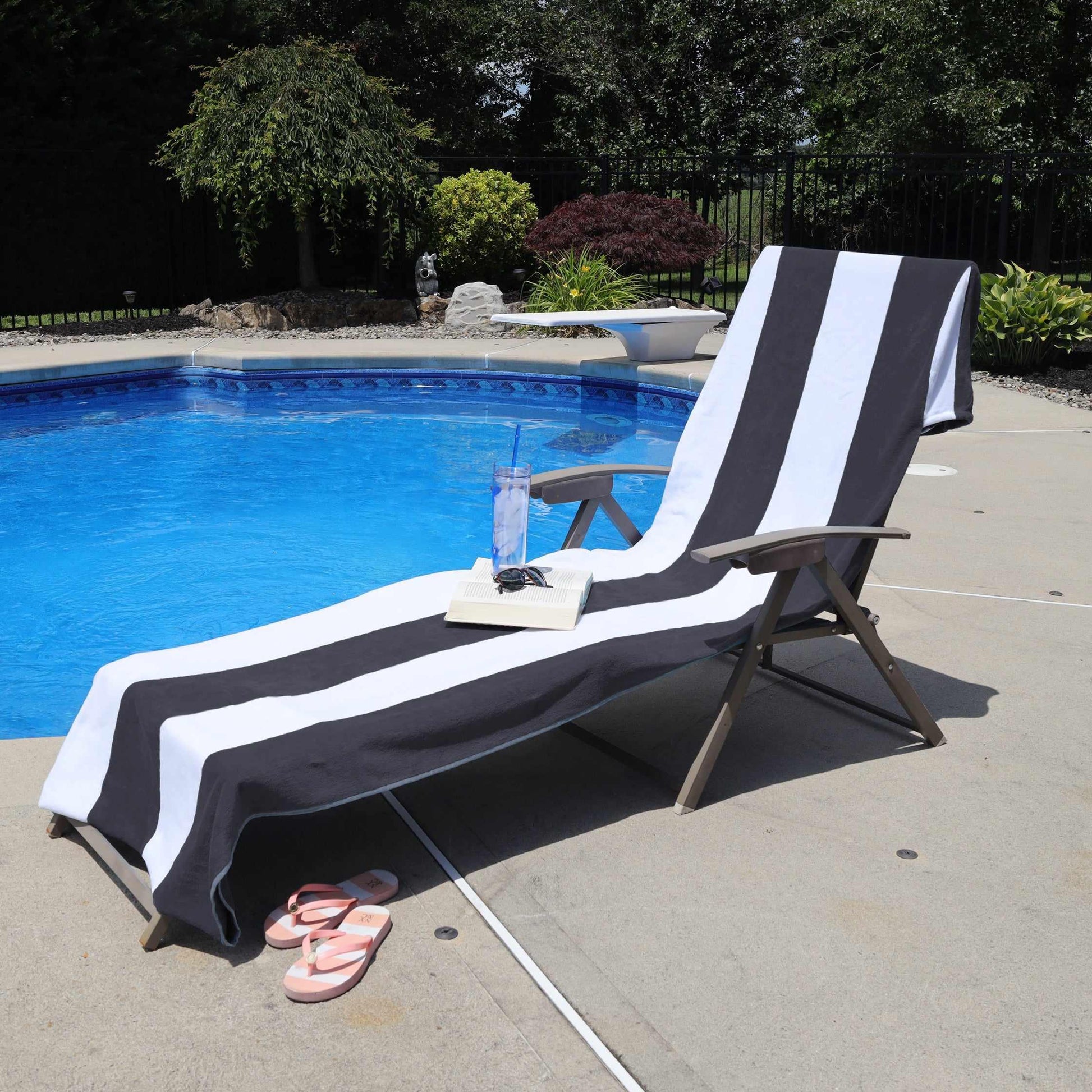 Protect your beach chairs and lay out in the sun comfortably with our Cabana Striped Lounge Chair Cover Set. Crafted from Cotton, the textured terry loop design of these covers helps get you dry quickly after a dip in the pool and helps shield your chair cushions from sunscreen, saltwater, or chlorine. These chair covers have an extra back flap to protect the top of the seat, so you can have total peace of mind while you enjoy fun in the sun.