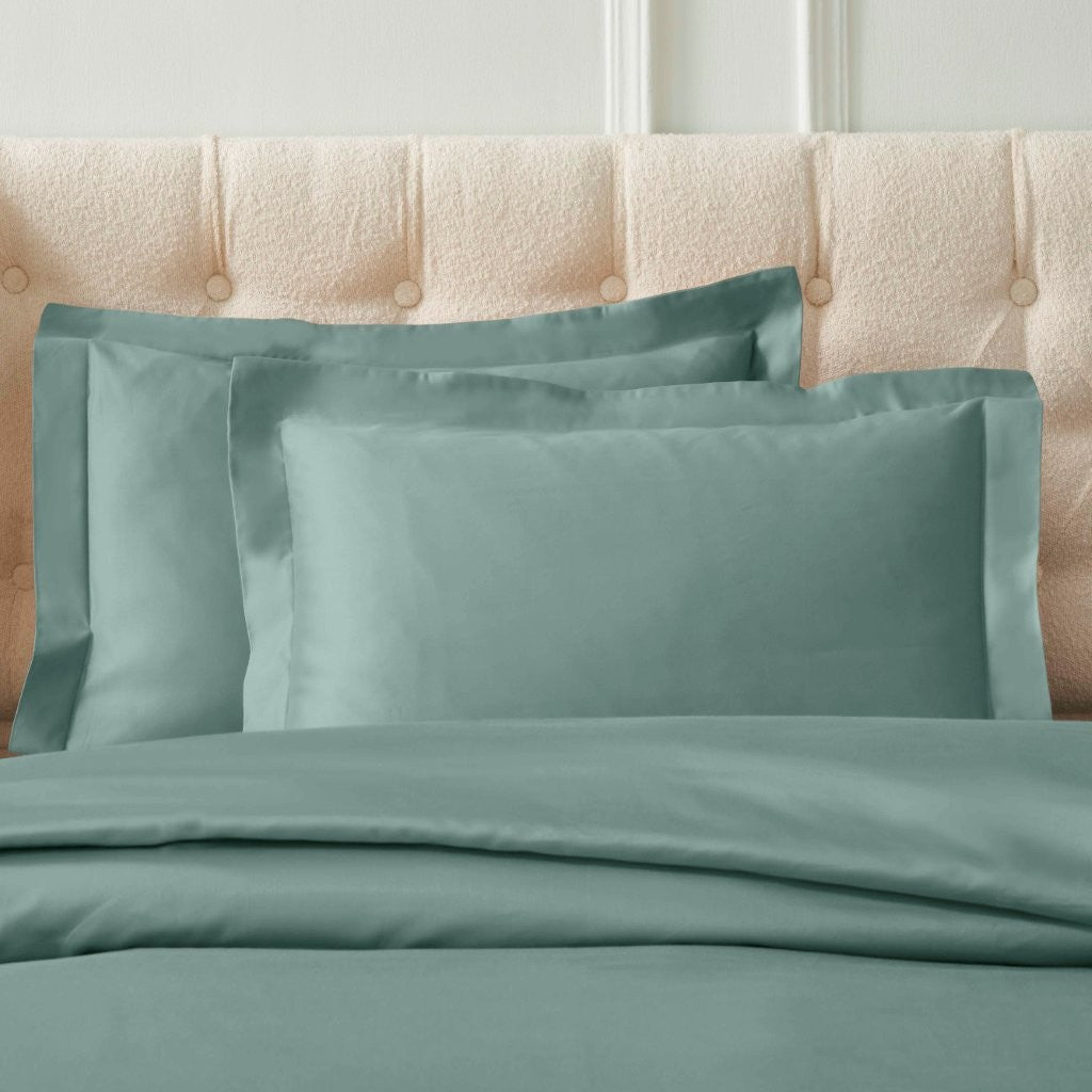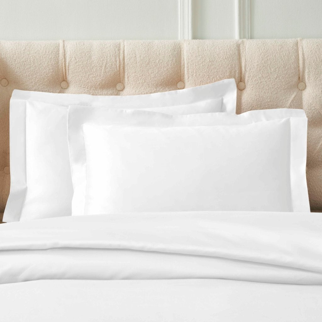 Pillow shams feature a 2' flange and secure envelope closure for a cohesive presentation. Available in a wide range of elegant colors and sizes, this set offers everything you need to create a serene sleep sanctuary.