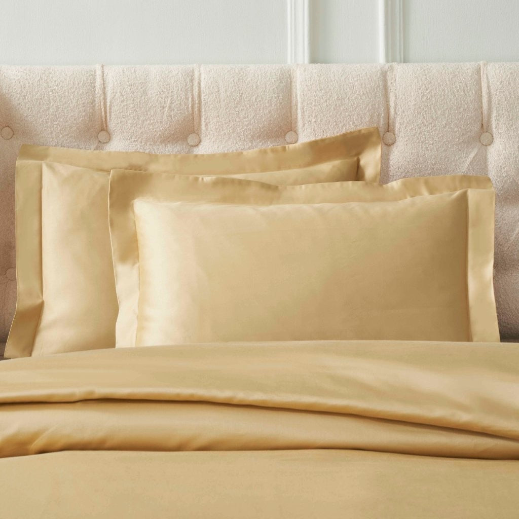 This set features 100% Egyptian Cotton in a thick, decadent weave that offers a luxe feel and long-lasting strength. The fabric’s natural sheen from its sateen finish gives a refined look, while the internal ties and hidden button closures ensure a snug, polished fit for your duvet insert.