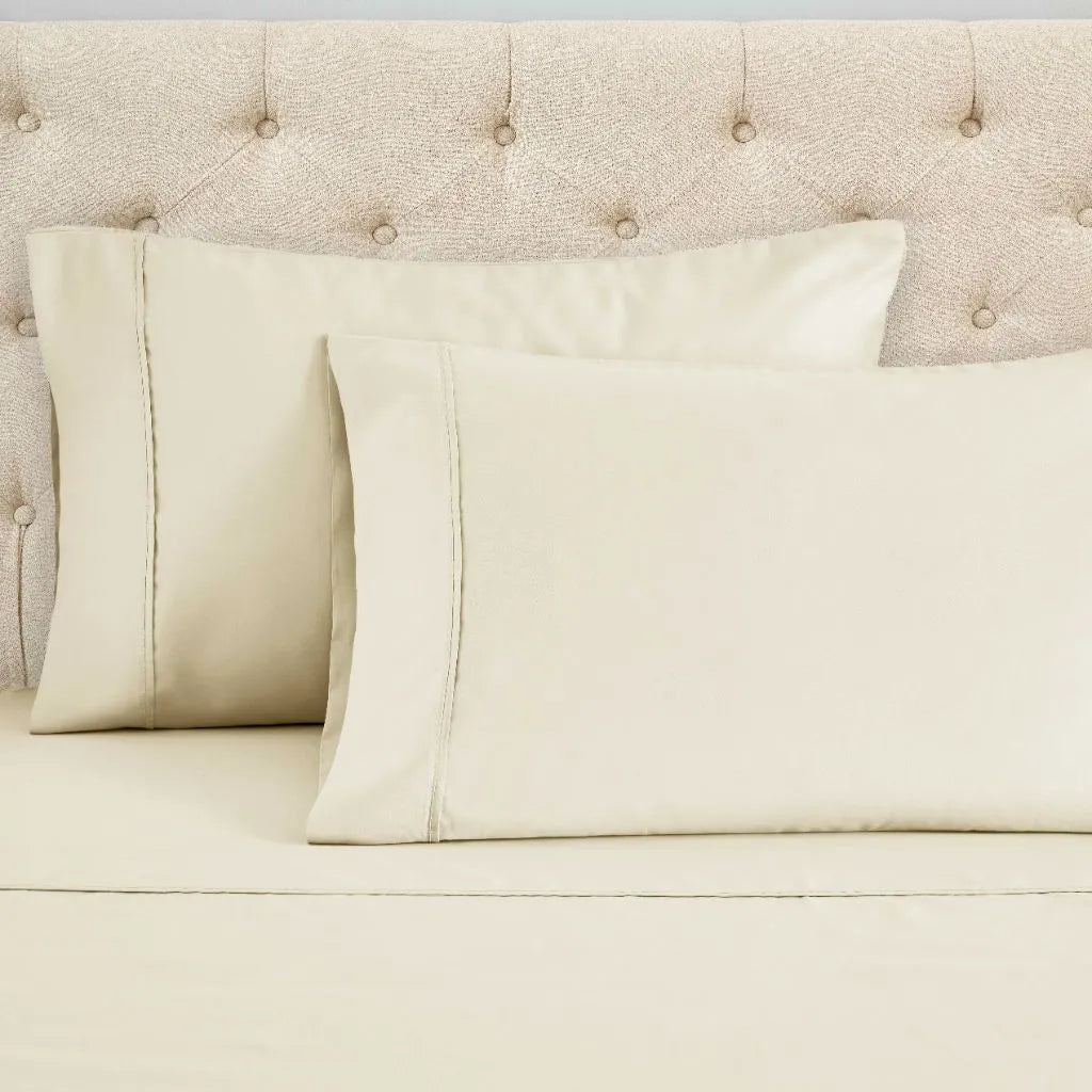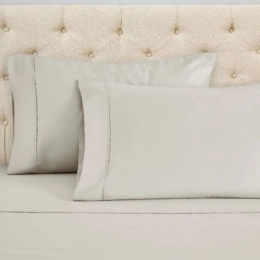 Finished with a luminous sateen weave and stylish double pintuck hem, it offers both elegance and durability. Each piece is single-ply and breathable, designed to bring lasting softness and subtle shimmer to your bed.