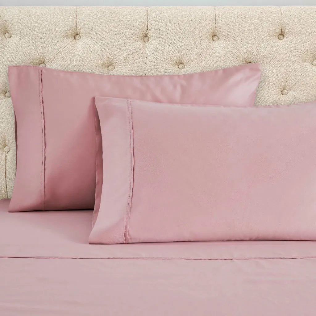 This set, perfect for year-round comfort, includes one flat sheet, one fitted sheet, and two pillowcases (with one pillowcase for Twin XL sizes), all featuring an elastic deep pocket fitted sheet that fits mattresses up to 18 inches thick.