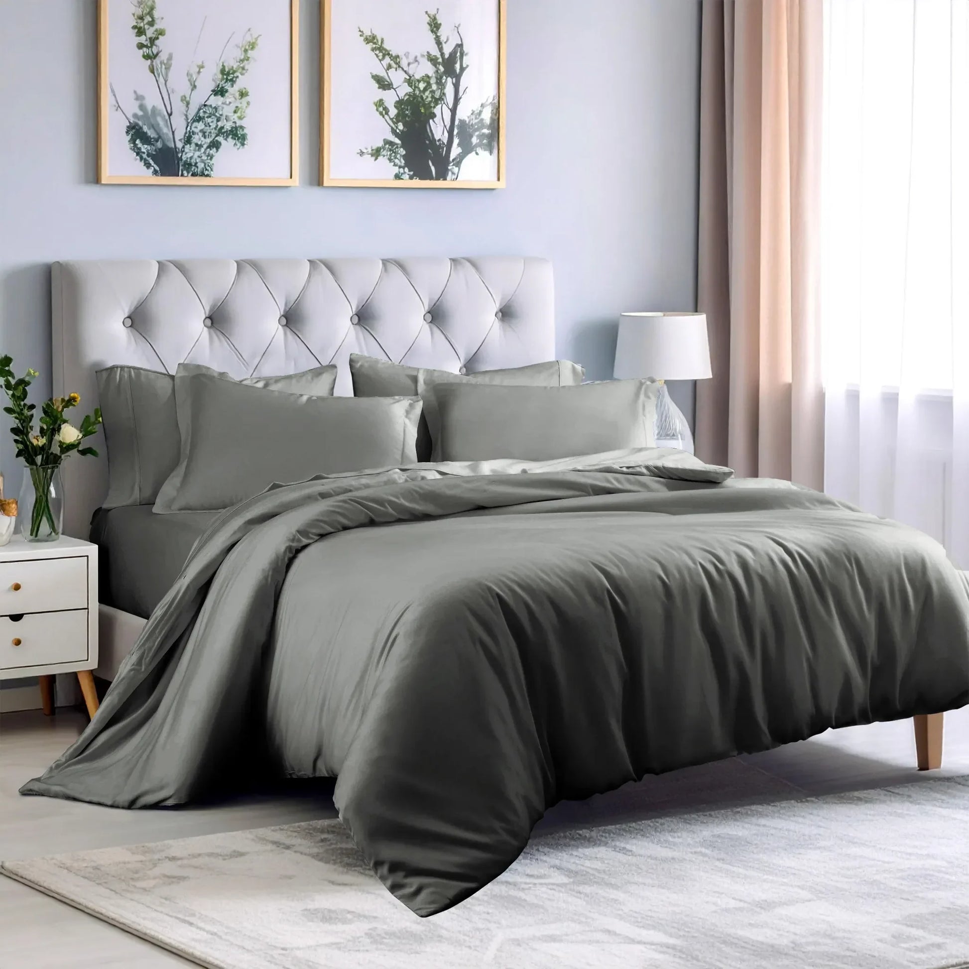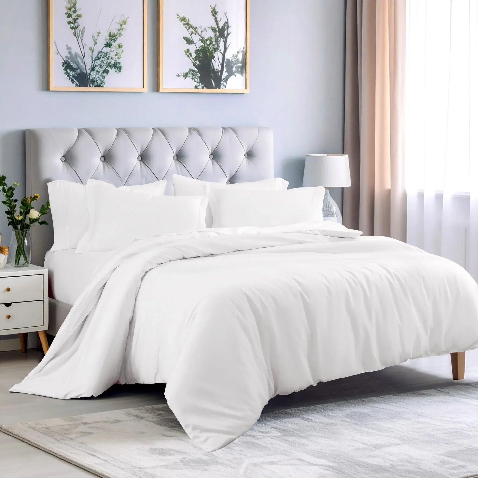Perfect for guest rooms, master bedrooms, and apartments, this set combines style with comfort for all-season use. Experience the silky softness of this bamboo duvet cover set and create a restful, allergy-friendly bedroom sanctuary.