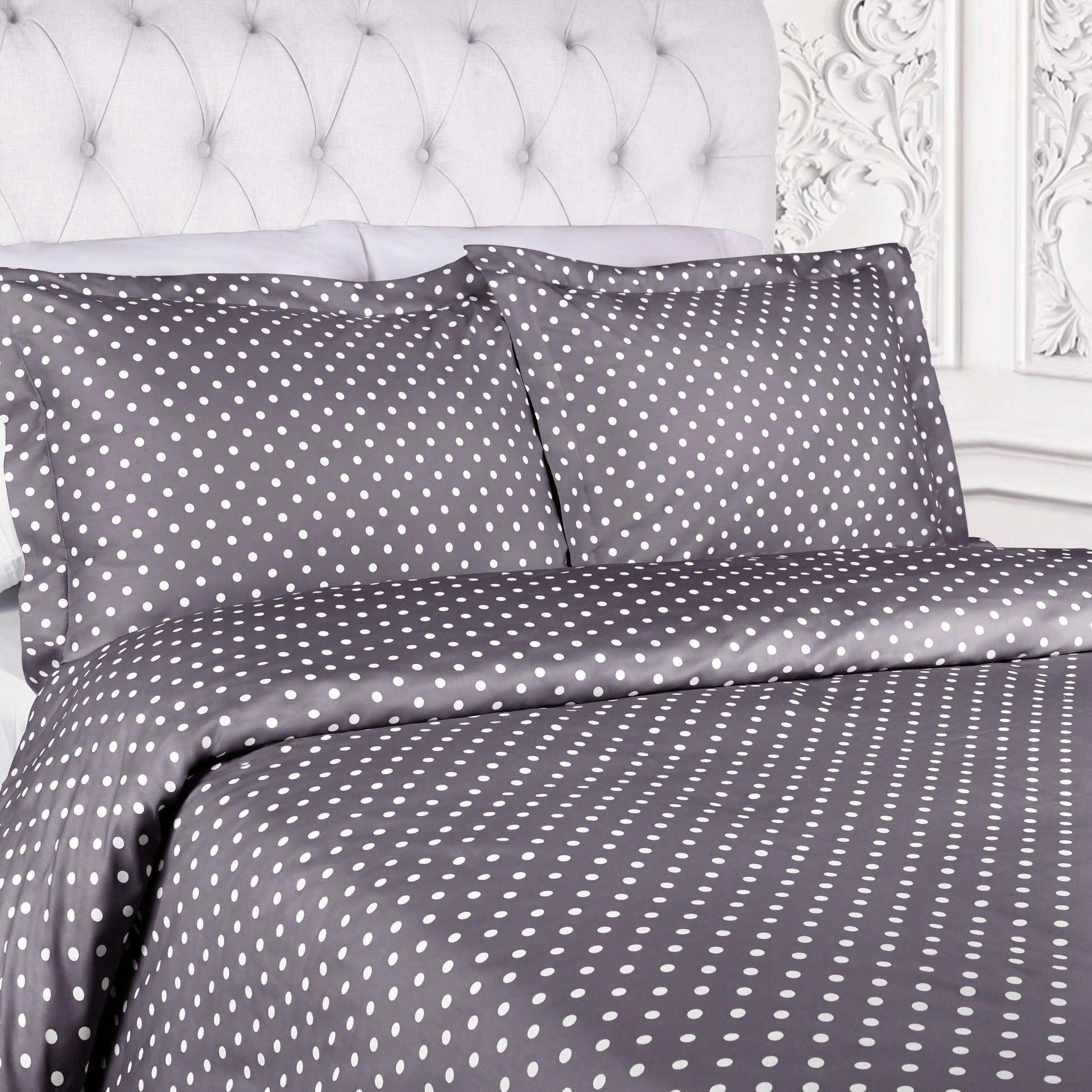 The Cotton Blend 600 Thread Count Polka Dot Duvet Cover Set is a lively polka dot cotton blend duvet cover set that merges retro personality with luxe performance.