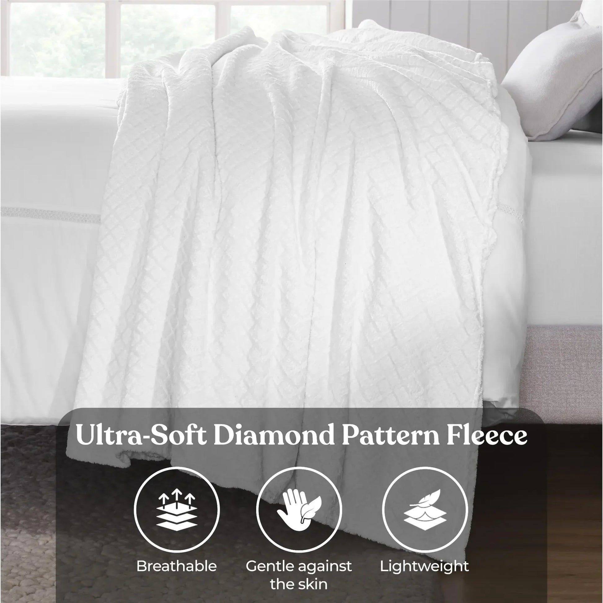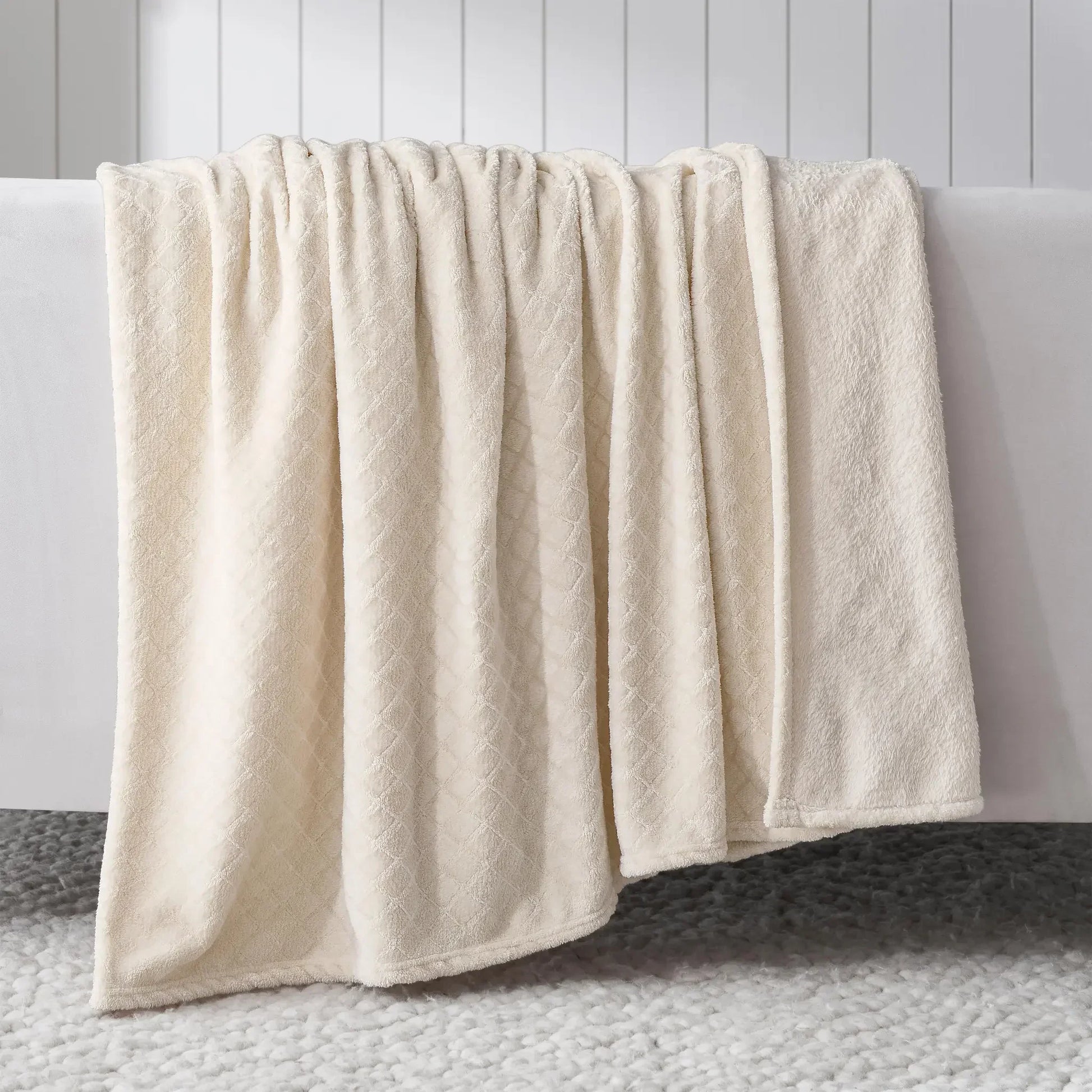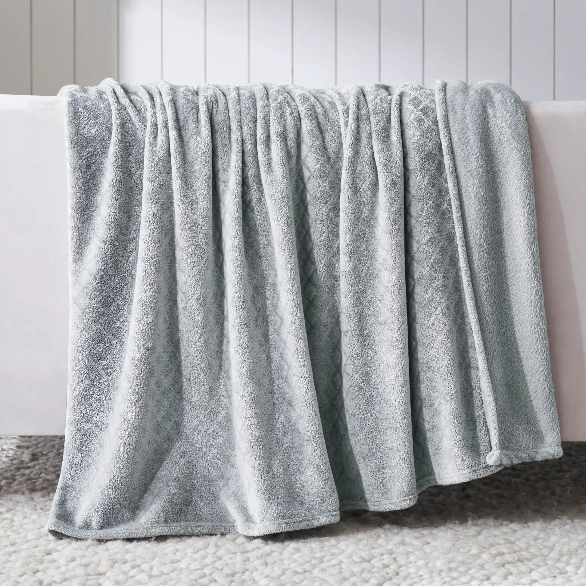 Experience the ultimate comfort with our Alaska Diamond flannel fleece blanket. Crafted from incredibly soft and ultra-plush fibers, this warm fluffy blanket is perfect for year-round use. The beautifully embossed diamond pattern adds a touch of modern elegance and rich texture to any space, while the perfect medium weight provides a luxuriously soft feel.