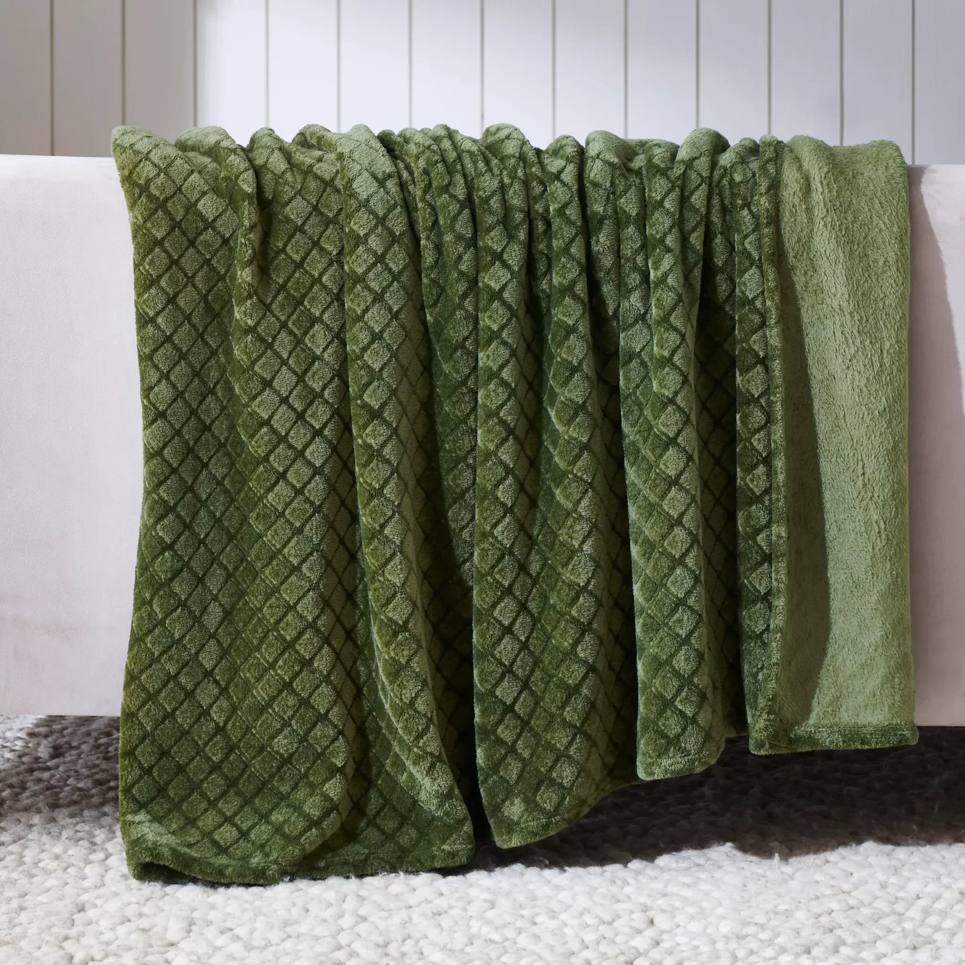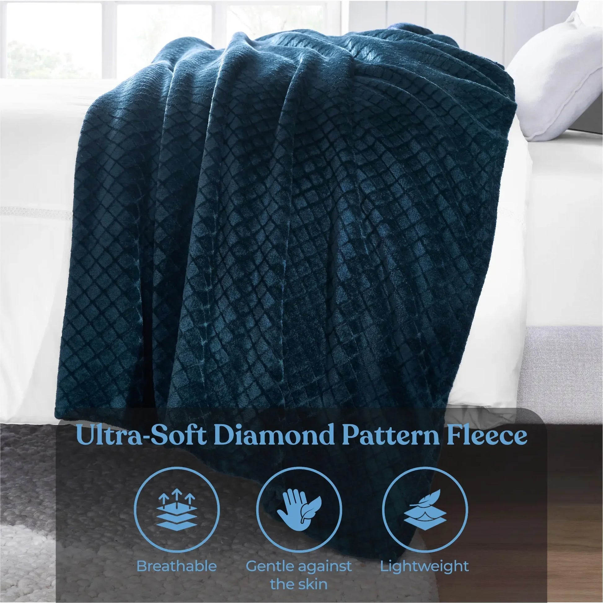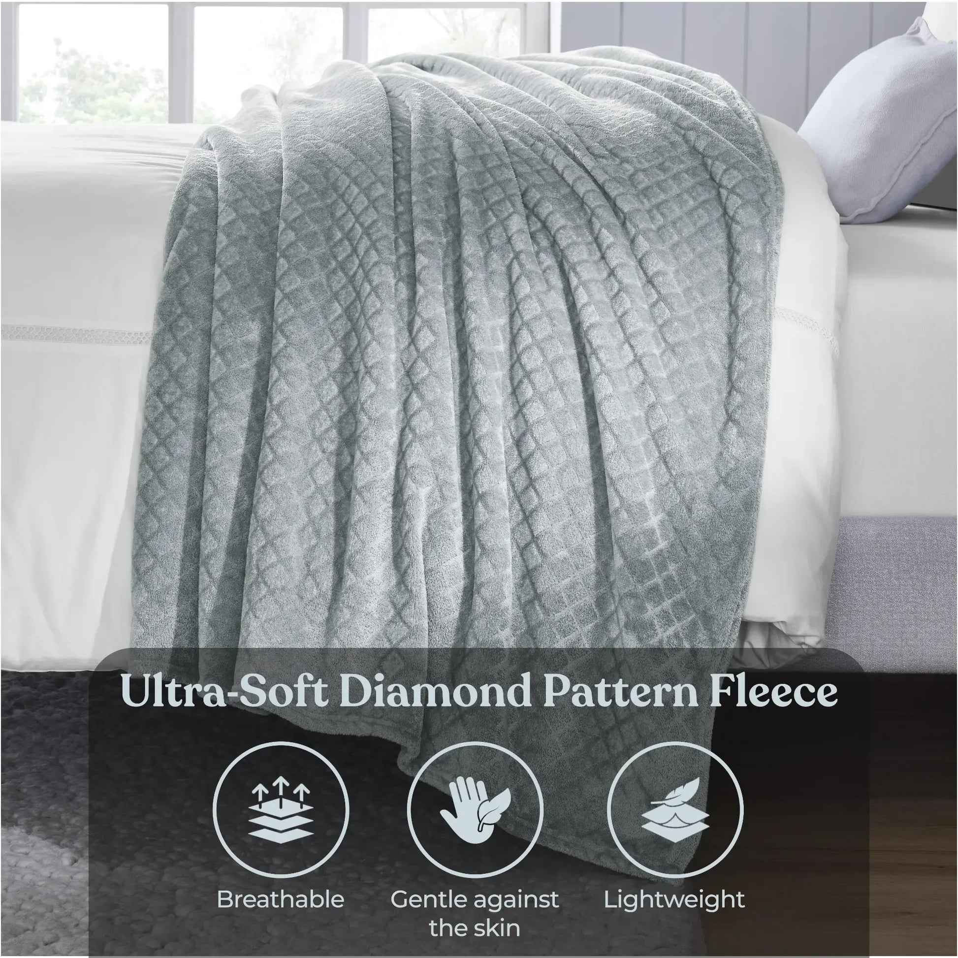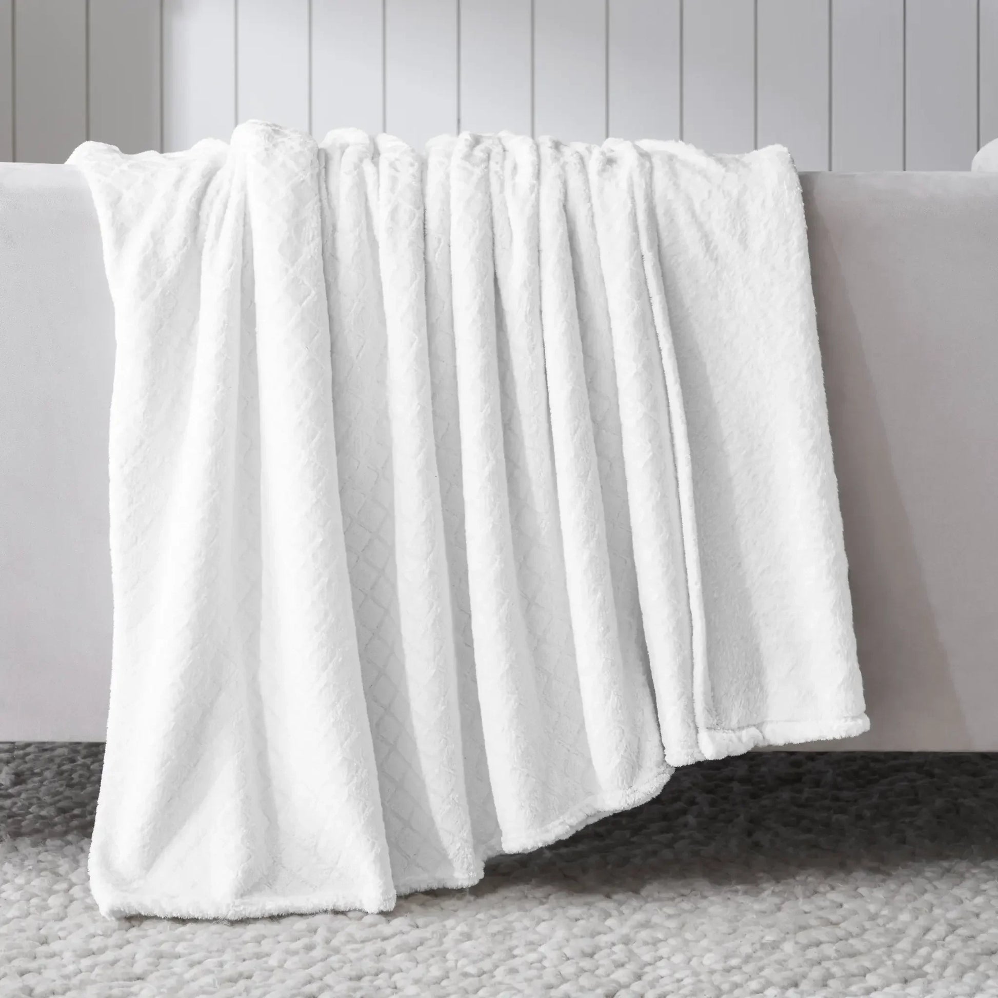 Experience the ultimate comfort with our Alaska Diamond flannel fleece blanket. Crafted from incredibly soft and ultra-plush fibers, this warm fluffy blanket is perfect for year-round use. The beautifully embossed diamond pattern adds a touch of modern elegance and rich texture to any space, while the perfect medium weight provides a luxuriously soft feel.