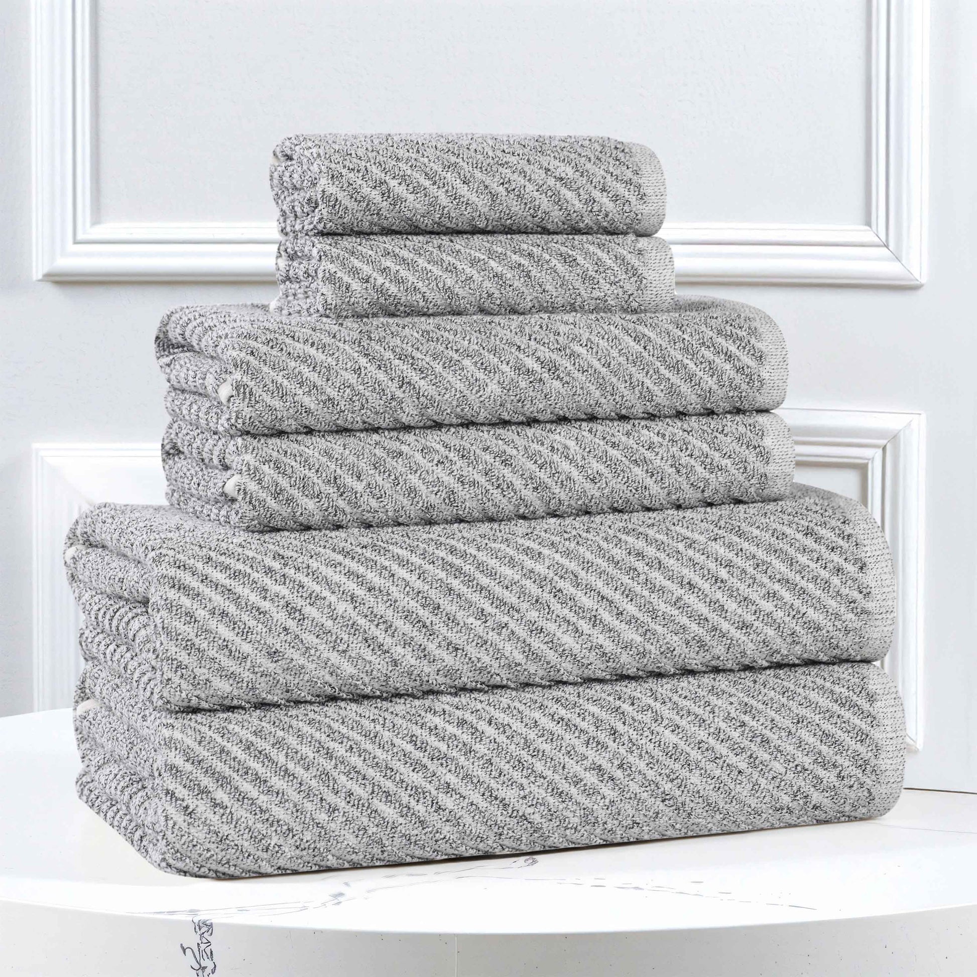 Amelia Cotton Blend Textured Diagonal Ribbed 6 Piece Towel Set