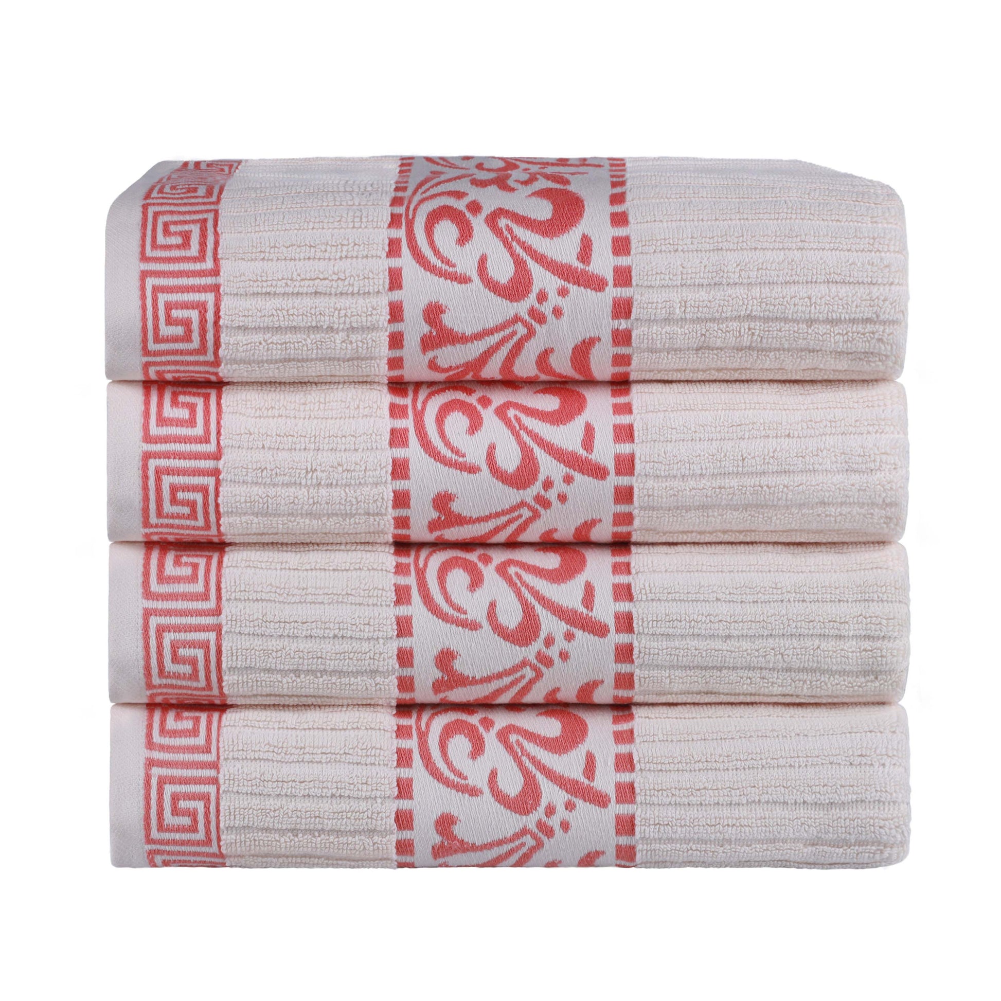 Refresh your bathroom with the elegance of our Cotton Terry Greek Key Bath Towel Set of 4.