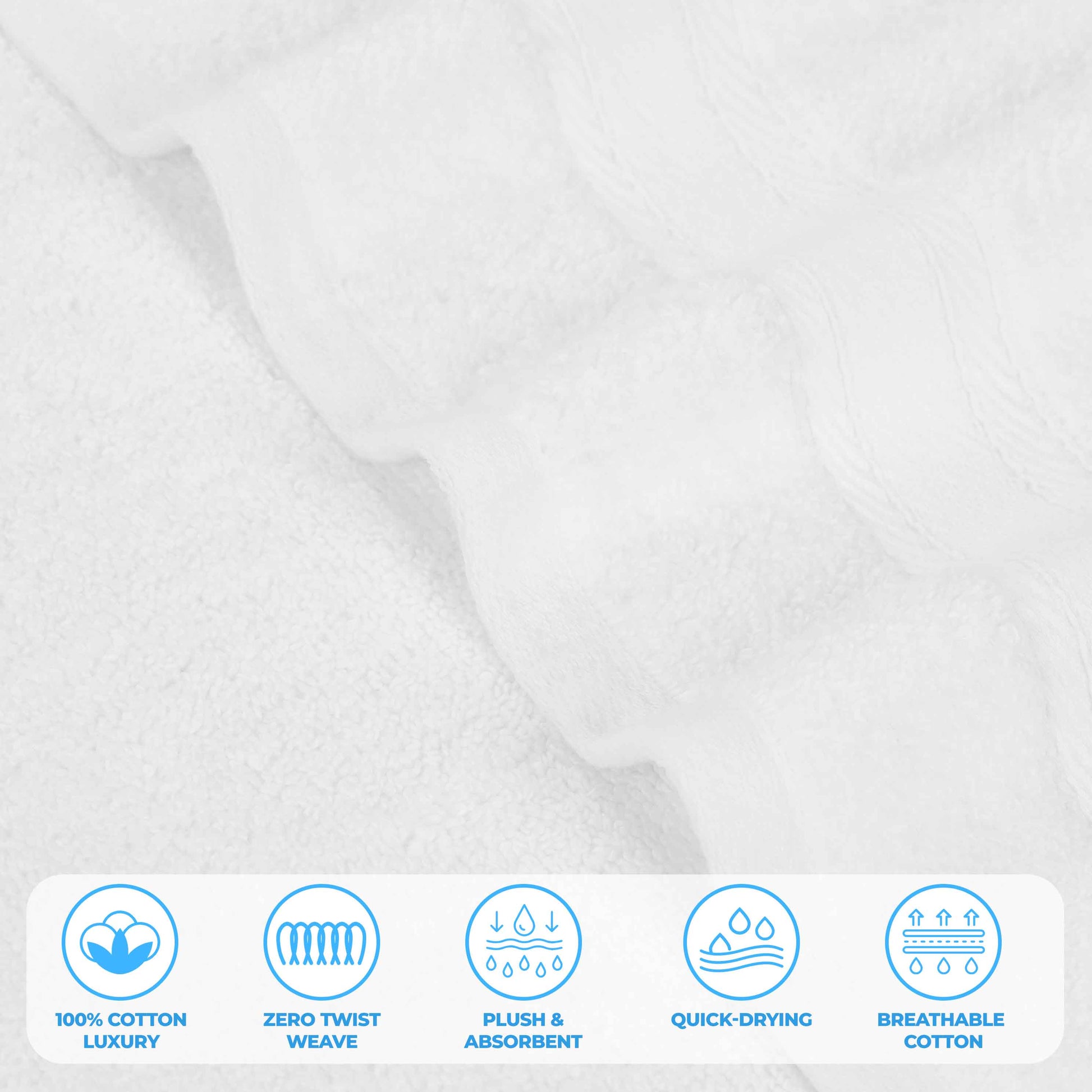 Elevate your everyday bathing ritual without compromising on value with our Belmont Zero Twist Cotton 8 Piece Towel Set. This towel set, meticulously crafted from 100% cotton, envelops you in a plush, absorbent embrace. The refined border adds a subtle touch of sophistication, transforming an everyday essential into a luxurious indulgence. Its quick-drying nature ensures practicality, while its plush softness delivers a pampering experience every time.