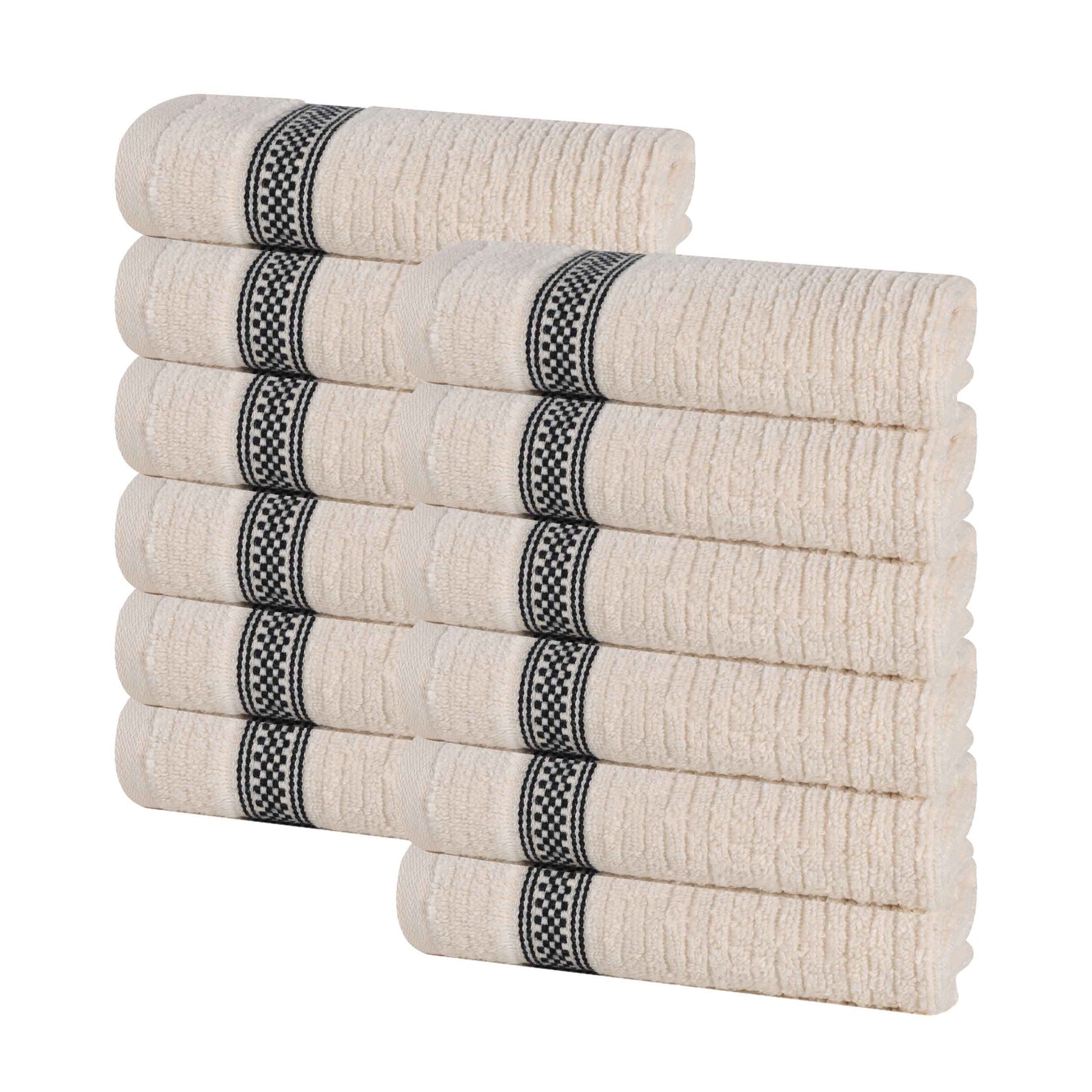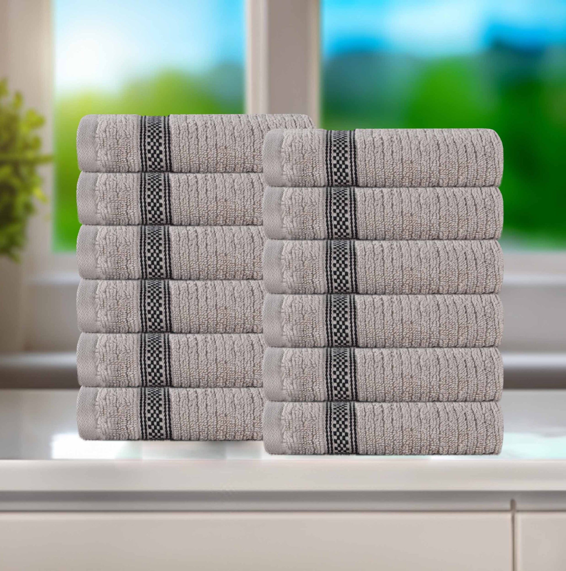 Brea Zero-Twist Cotton Ribbed Face Towel Set 12 Piece