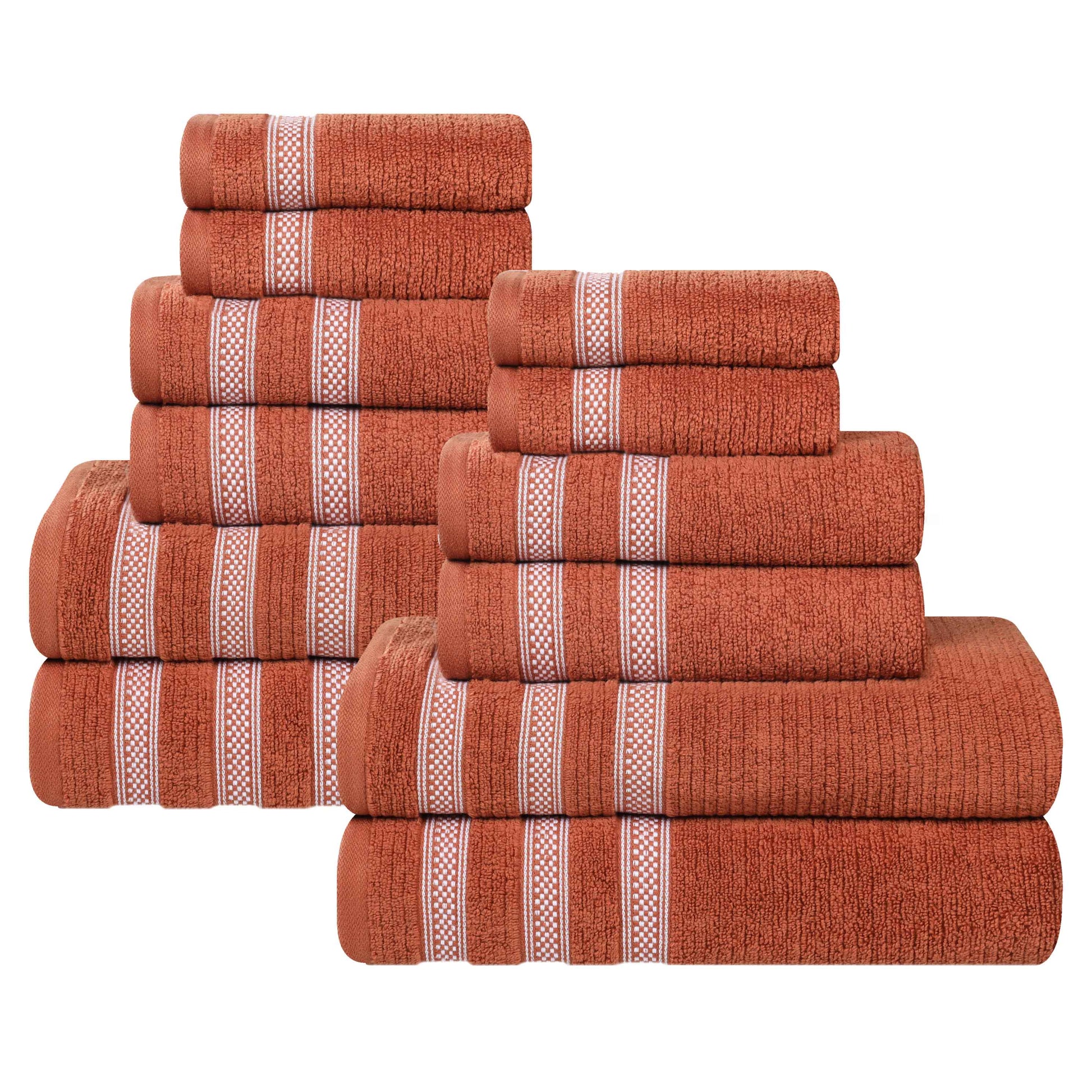 Brea Zero Twist Cotton Ribbed Geometric Border 12 Piece Towel Set