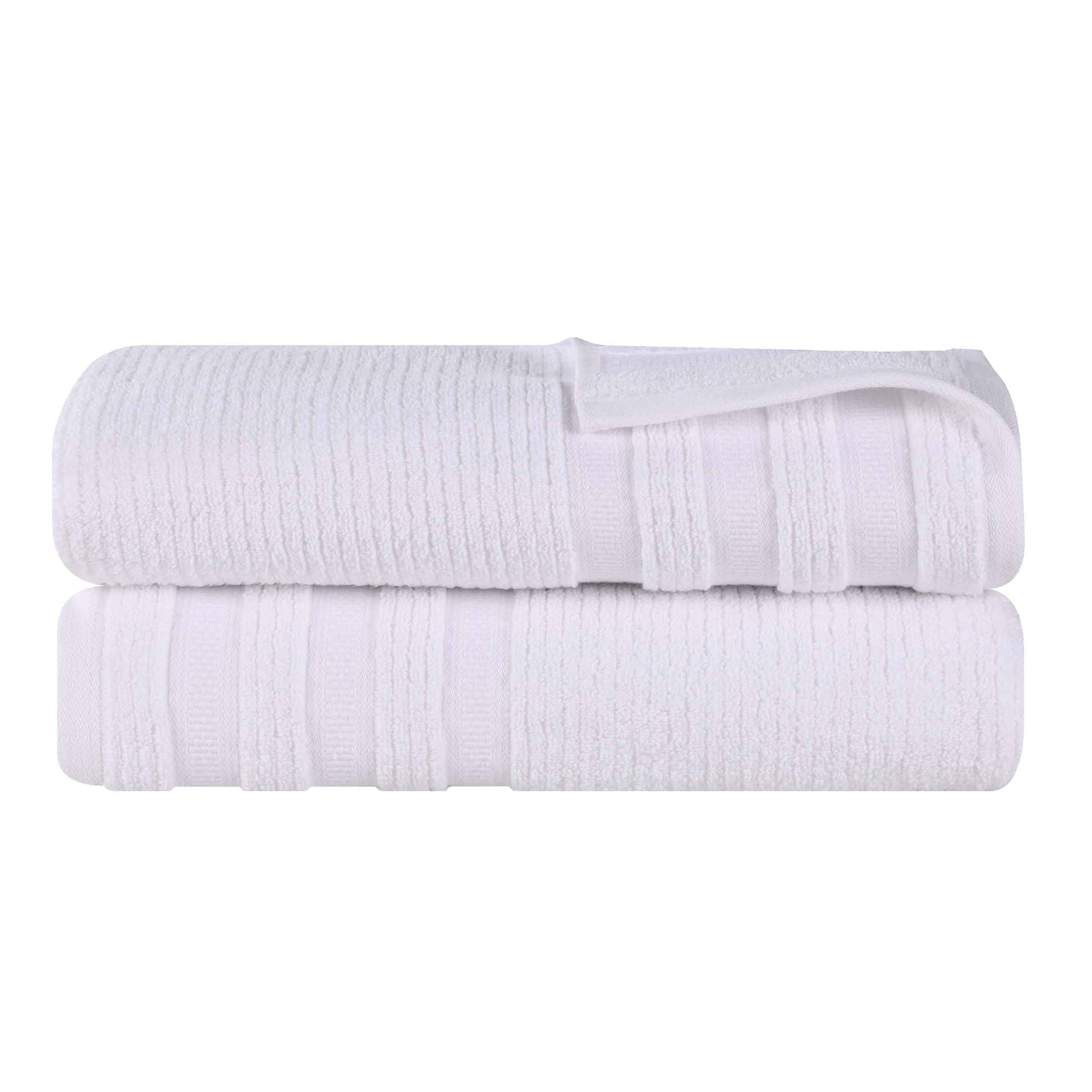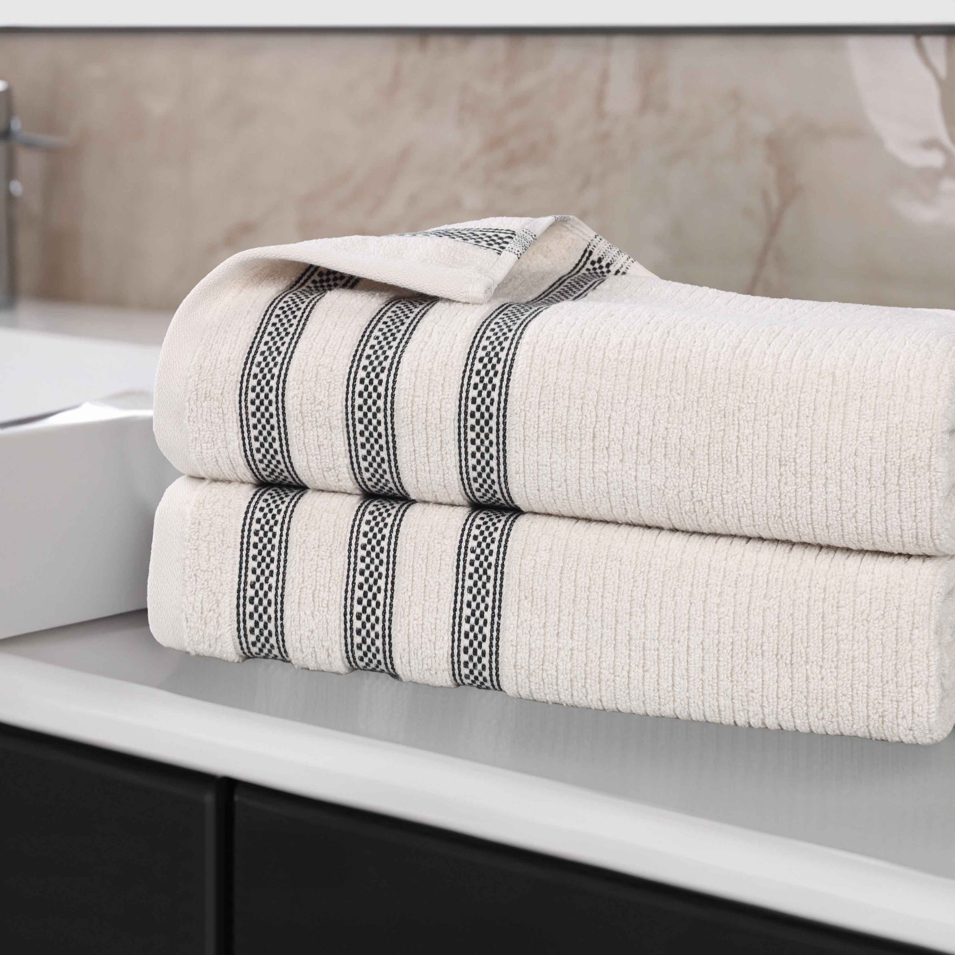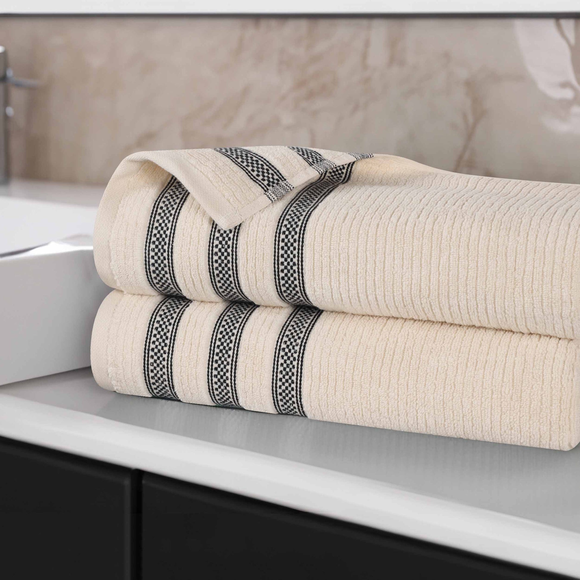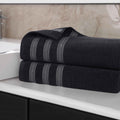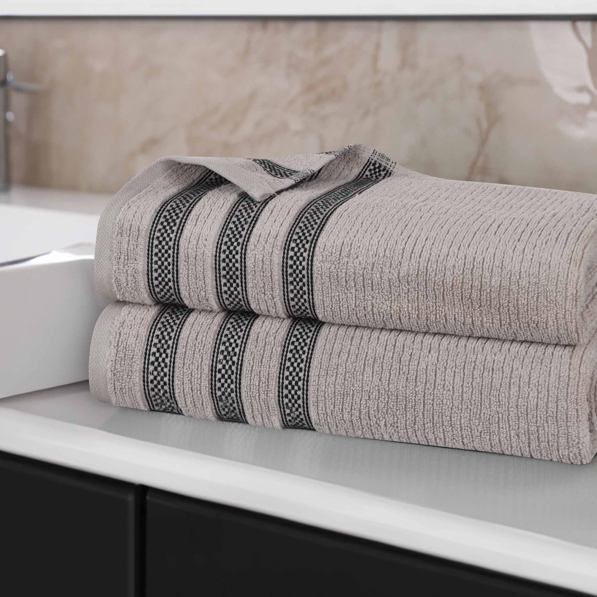 Brea Zero Twist Cotton Ribbed Geometric Border Bath Sheet Set of 2
