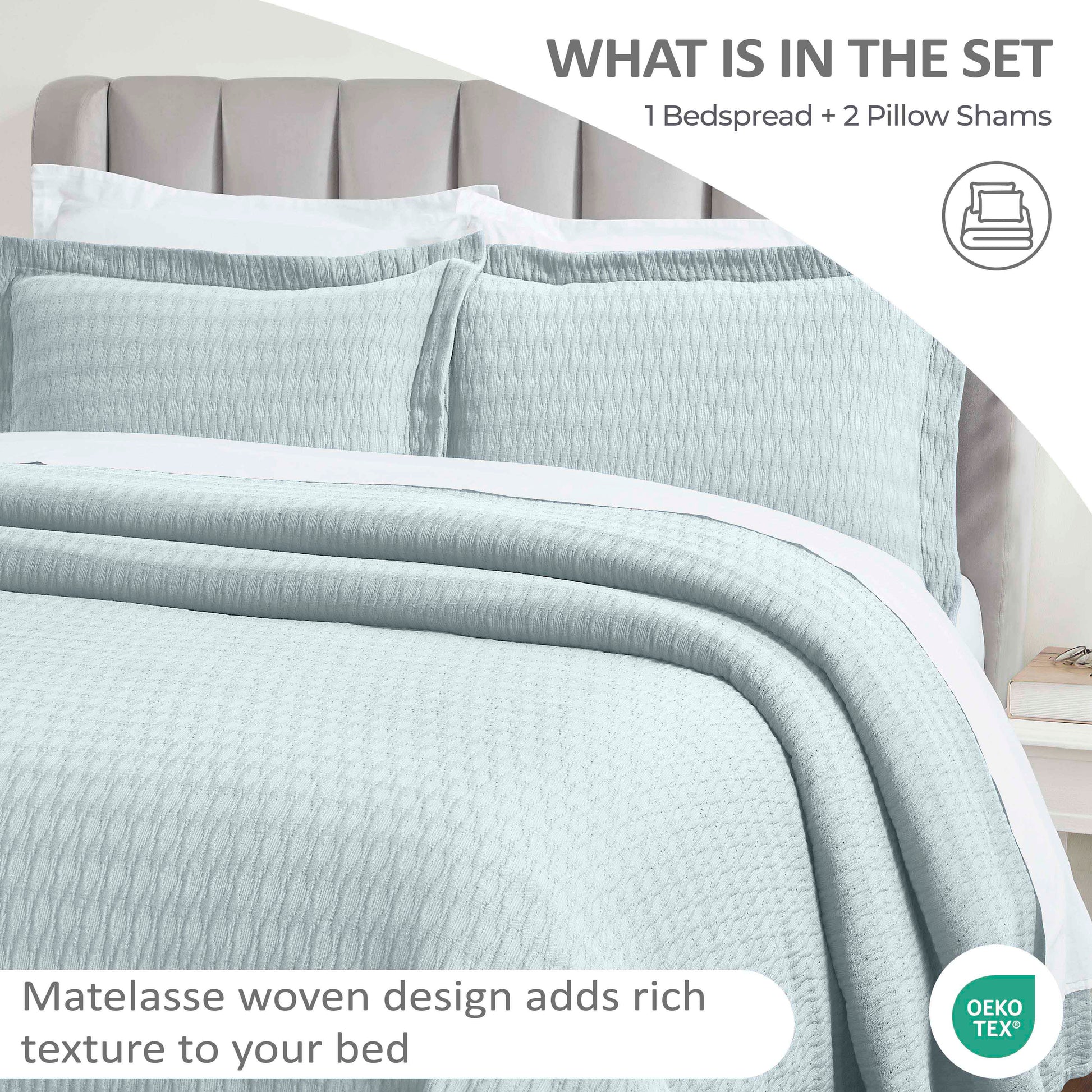 Lightweight Cotton Bedspread Sets 3-Piece Calvert Diamond Matelassé Jacquard