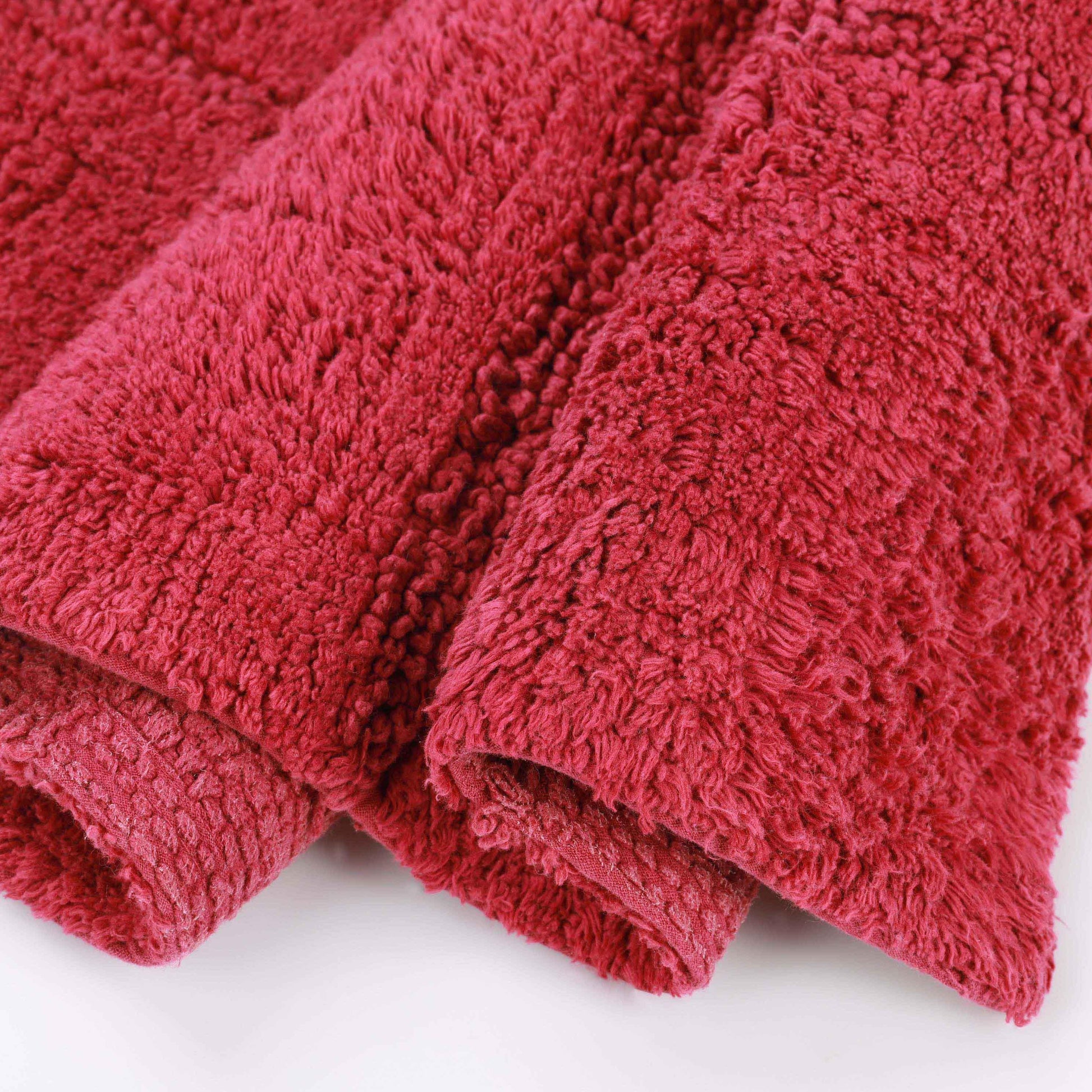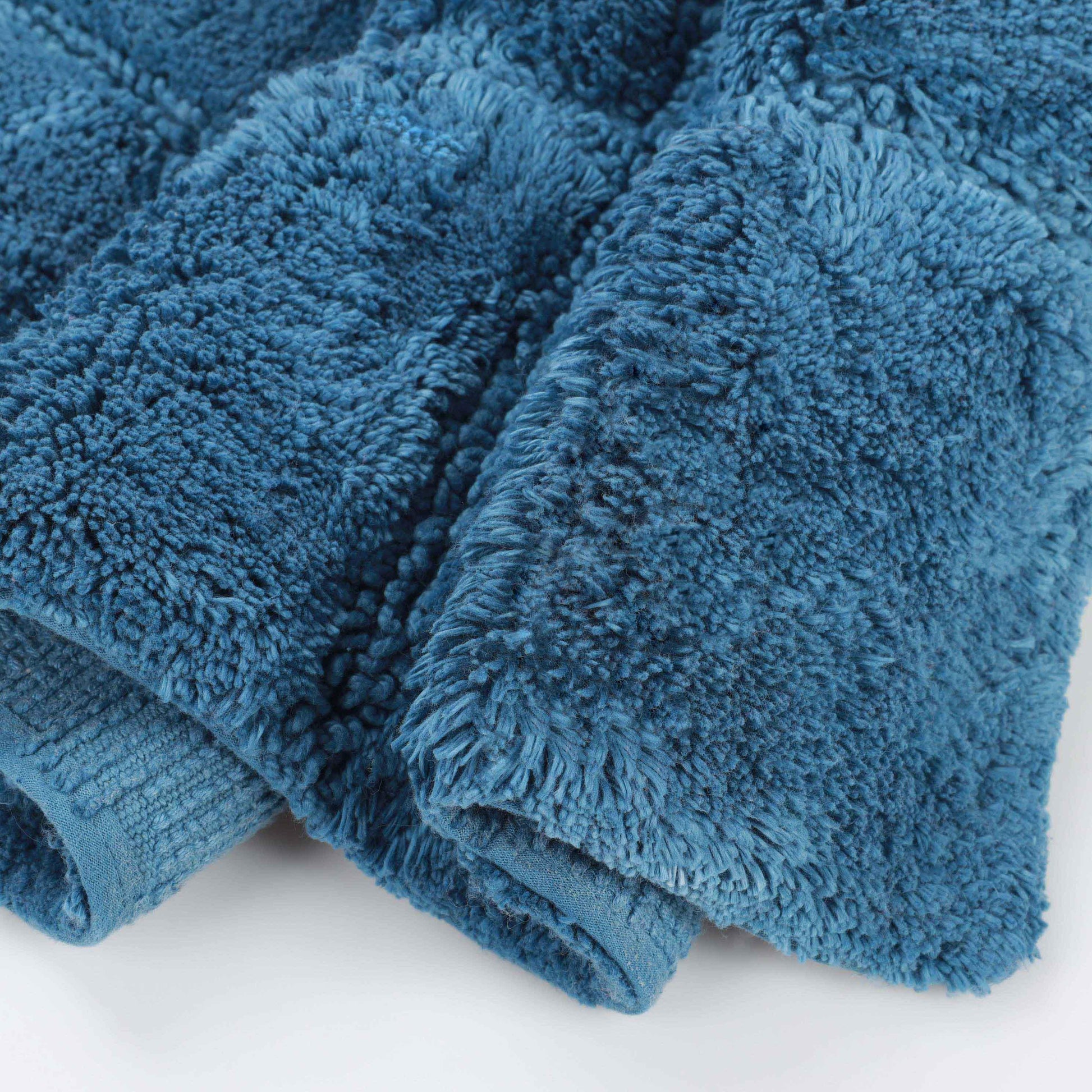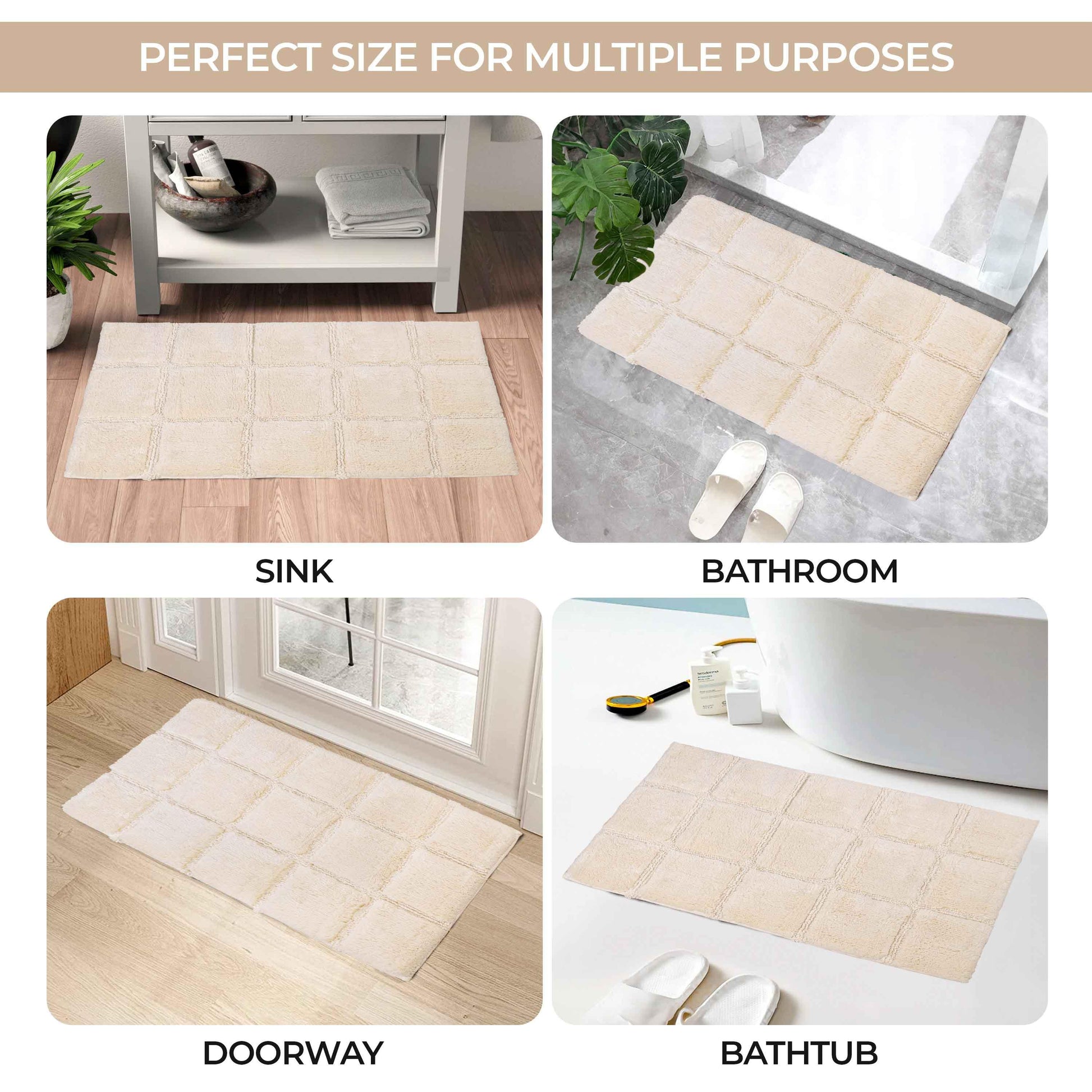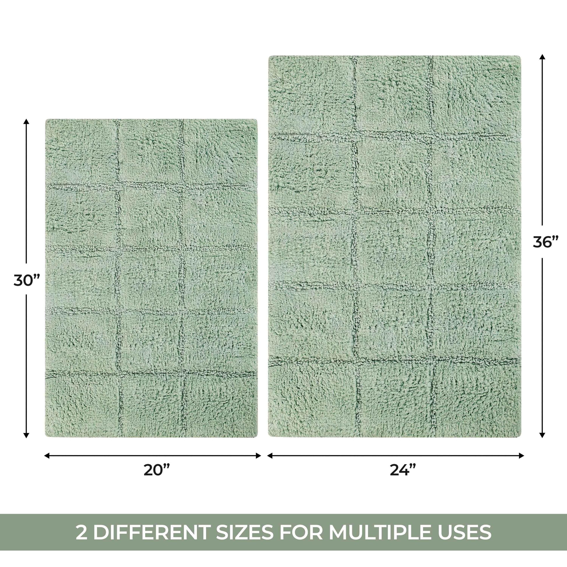 Start your mornings off right by stepping onto the Cotton Checkers 2 Piece Bath Rug Set. Crafted from plush and durable cotton fabric, this bath rug feels comfortable underfoot, giving you a hotel-like experience. The non-slip latex backing keeps your rug from shifting or sliding. Perfect for any shower space, the oversized checkered pattern easily coordinates with modern or contemporary bathroom styles. Available in two different sizes, place the larger rug outside your tub and the smaller rug in front of the sink for a tailored finish to your bathroom. This rug set is also OEKO-TEX certified, meaning it does not contain any harmful substances or chemicals, ensuring quality, comfort, and wellness.