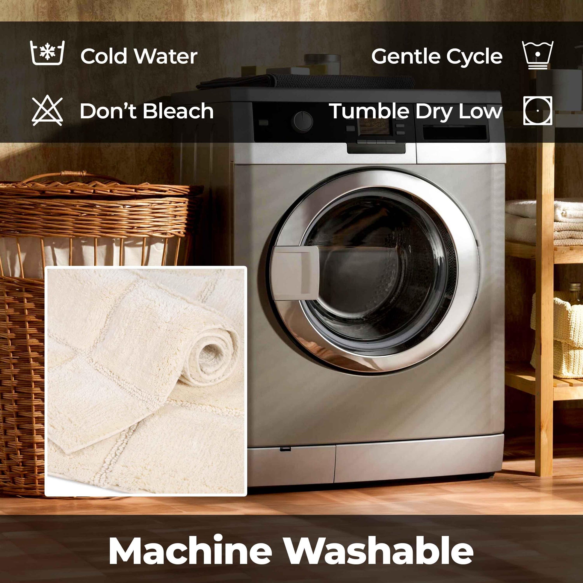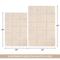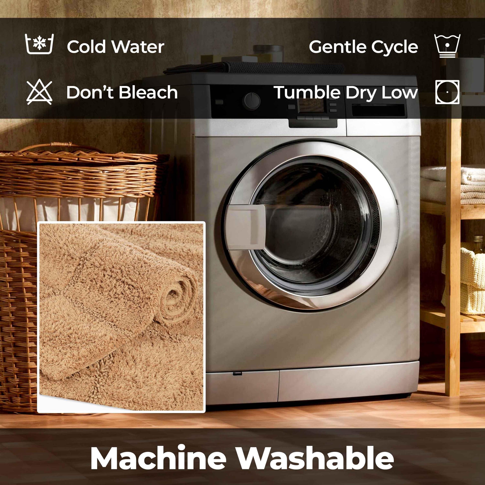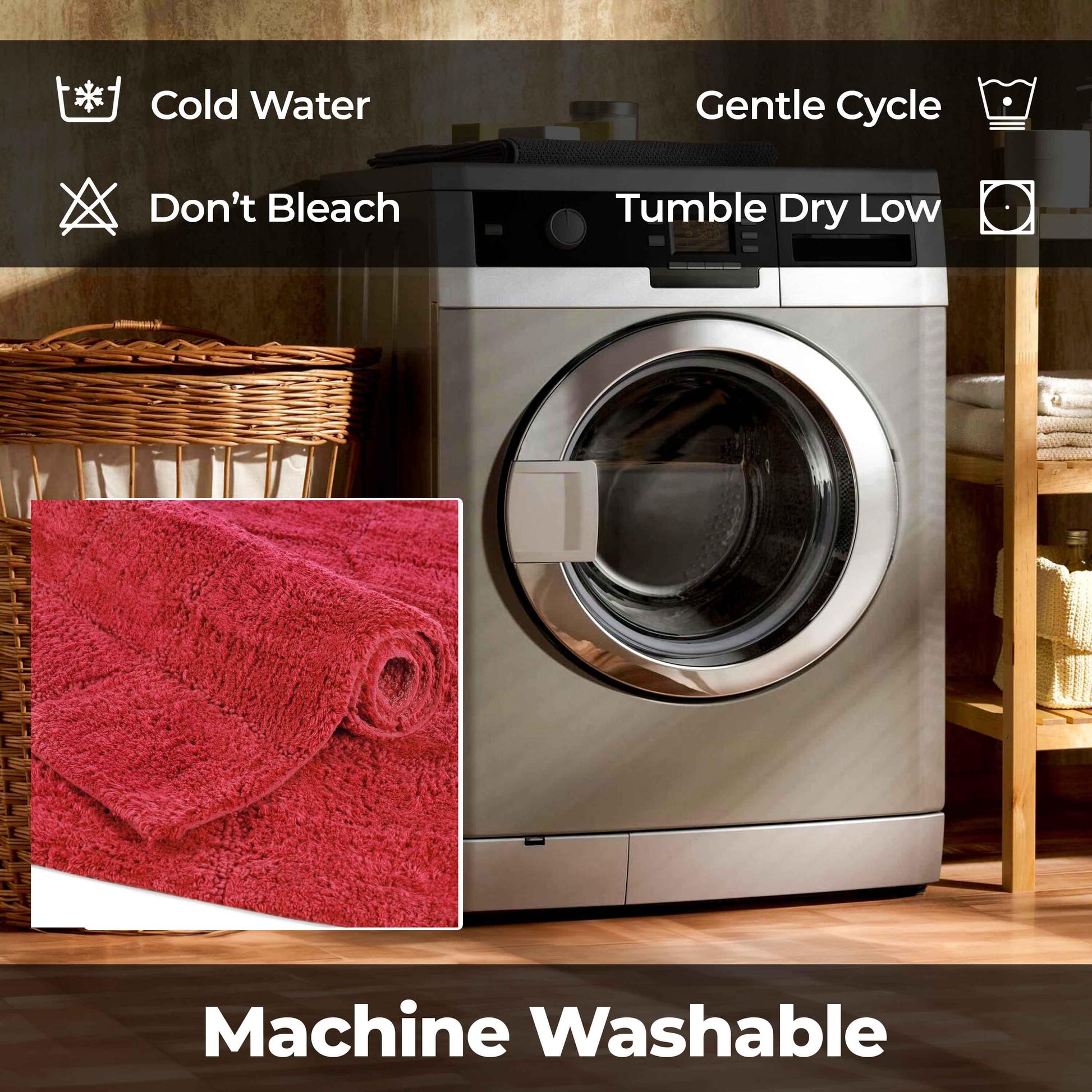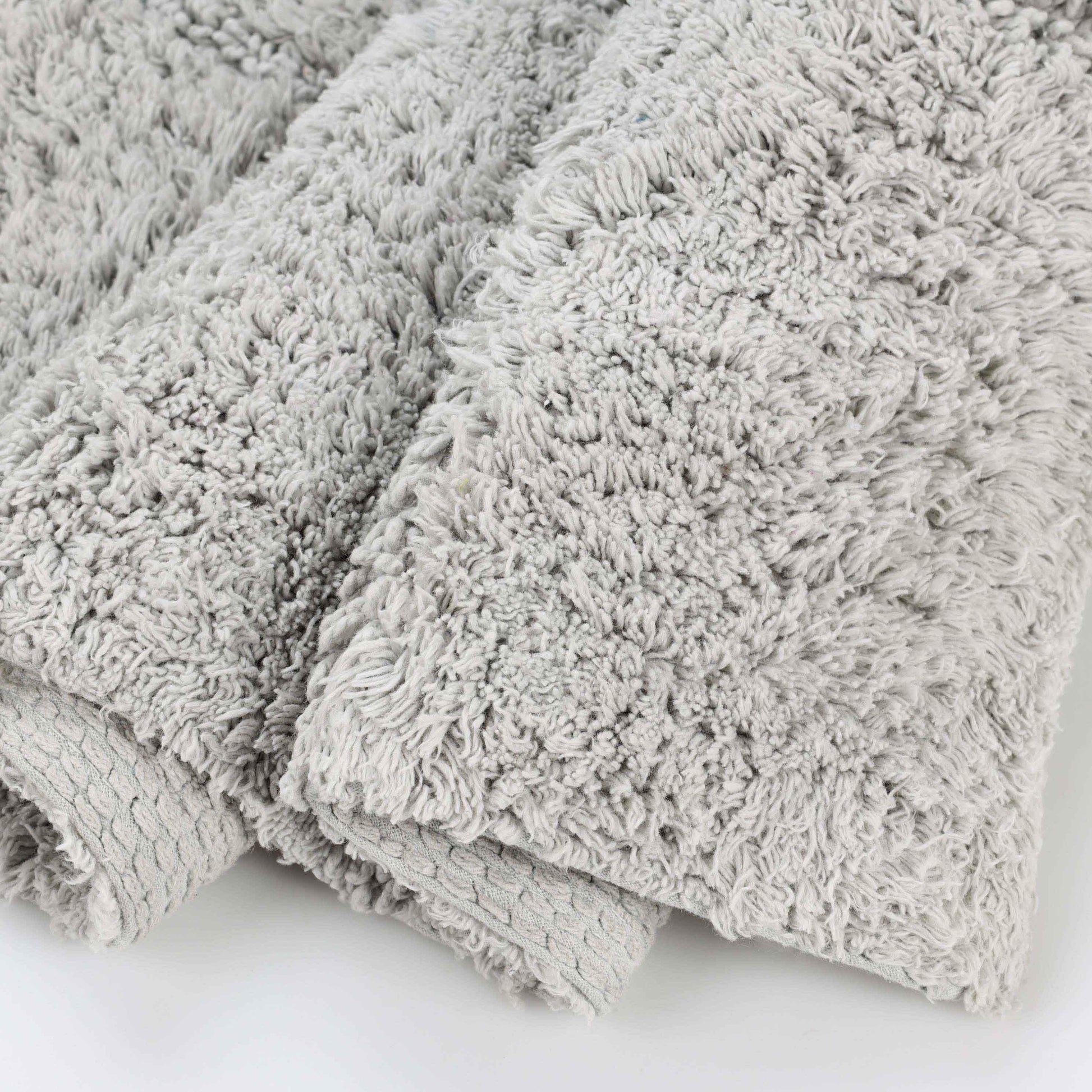 Start your mornings off right by stepping onto the Cotton Checkers 2 Piece Bath Rug Set. Crafted from plush and durable cotton fabric, this bath rug feels comfortable underfoot, giving you a hotel-like experience. The non-slip latex backing keeps your rug from shifting or sliding. Perfect for any shower space, the oversized checkered pattern easily coordinates with modern or contemporary bathroom styles. Available in two different sizes, place the larger rug outside your tub and the smaller rug in front of the sink for a tailored finish to your bathroom. This rug set is also OEKO-TEX certified, meaning it does not contain any harmful substances or chemicals, ensuring quality, comfort, and wellness.