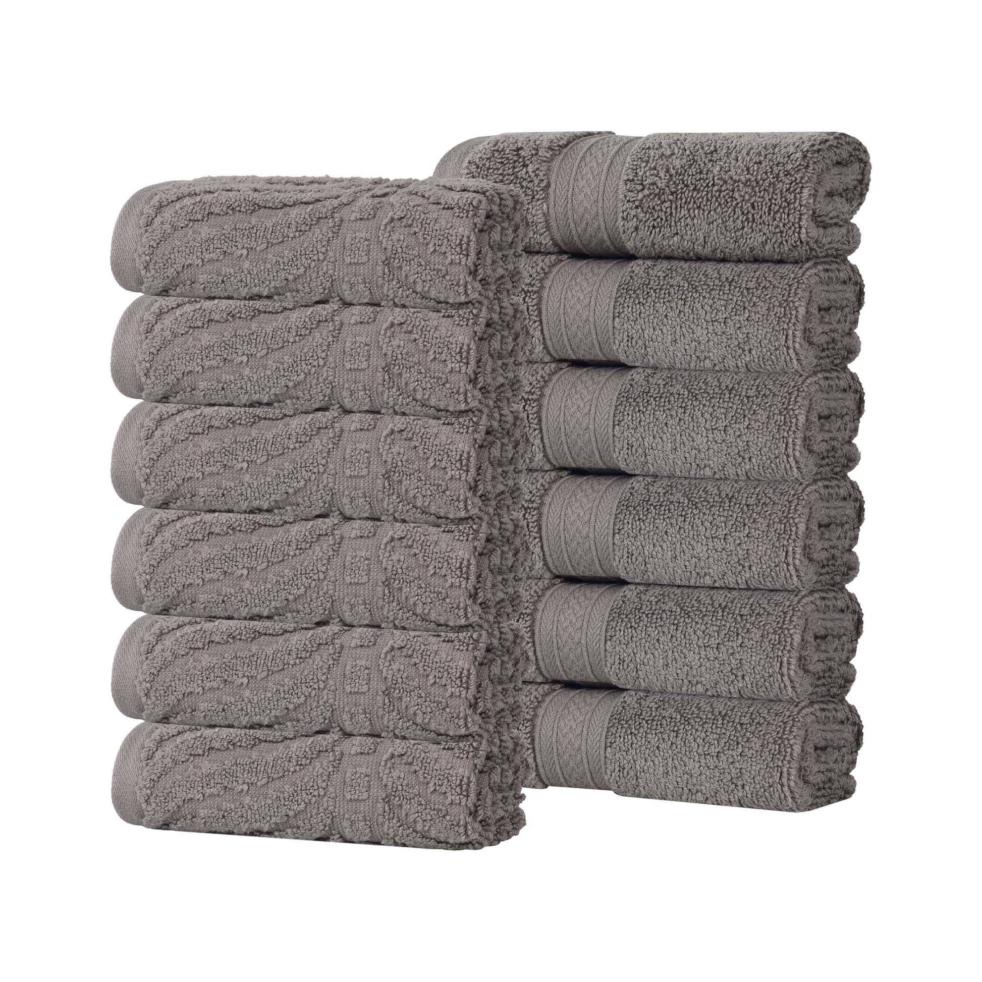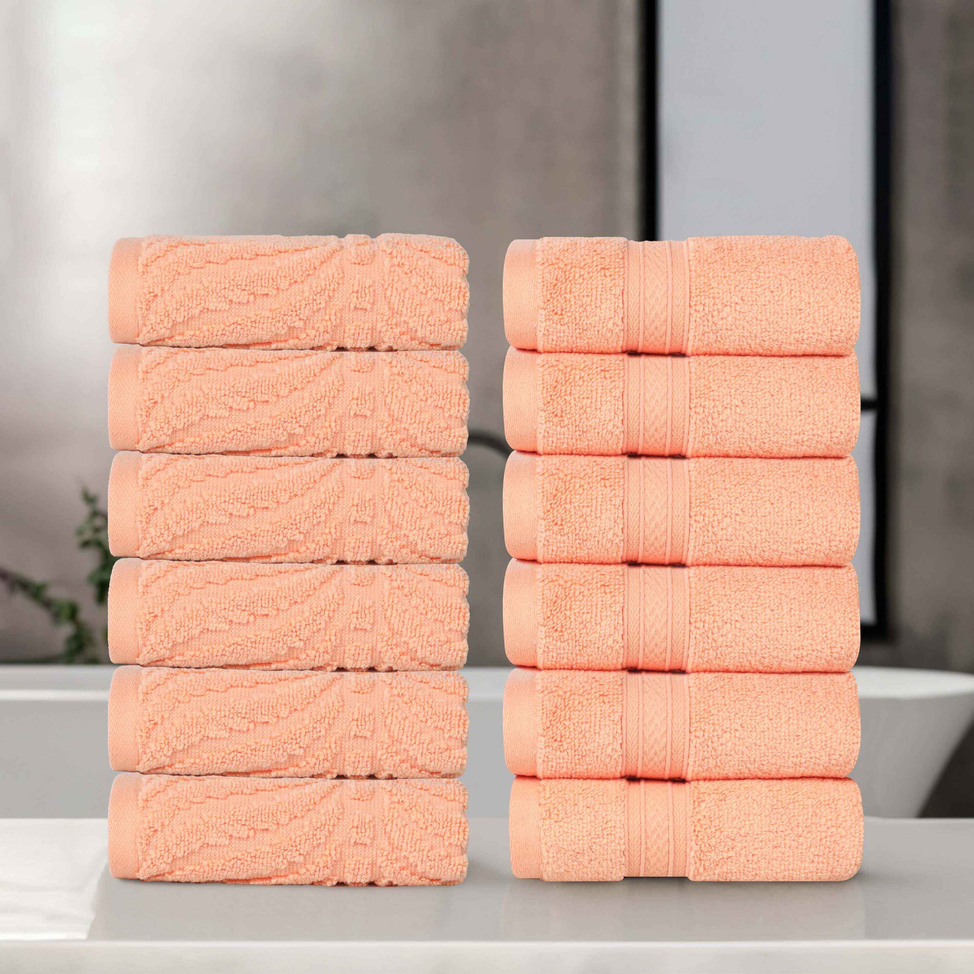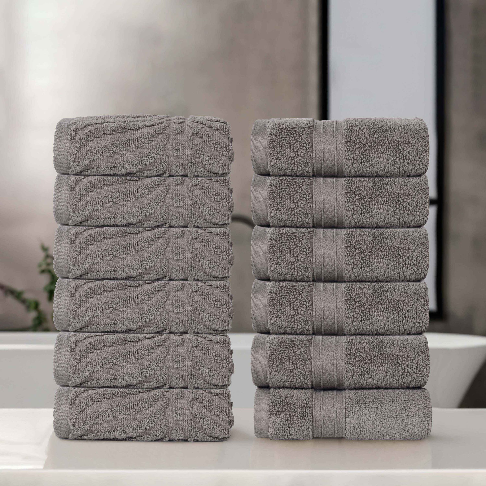 Chevron Zero Twist Solid and Jacquard Soft Cotton Washcloth Set of 12