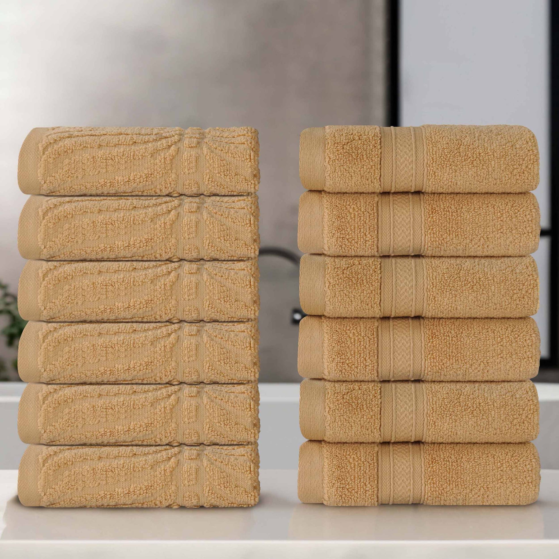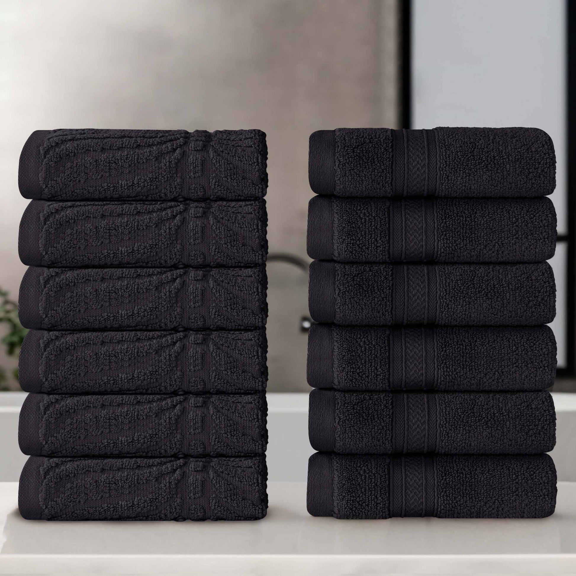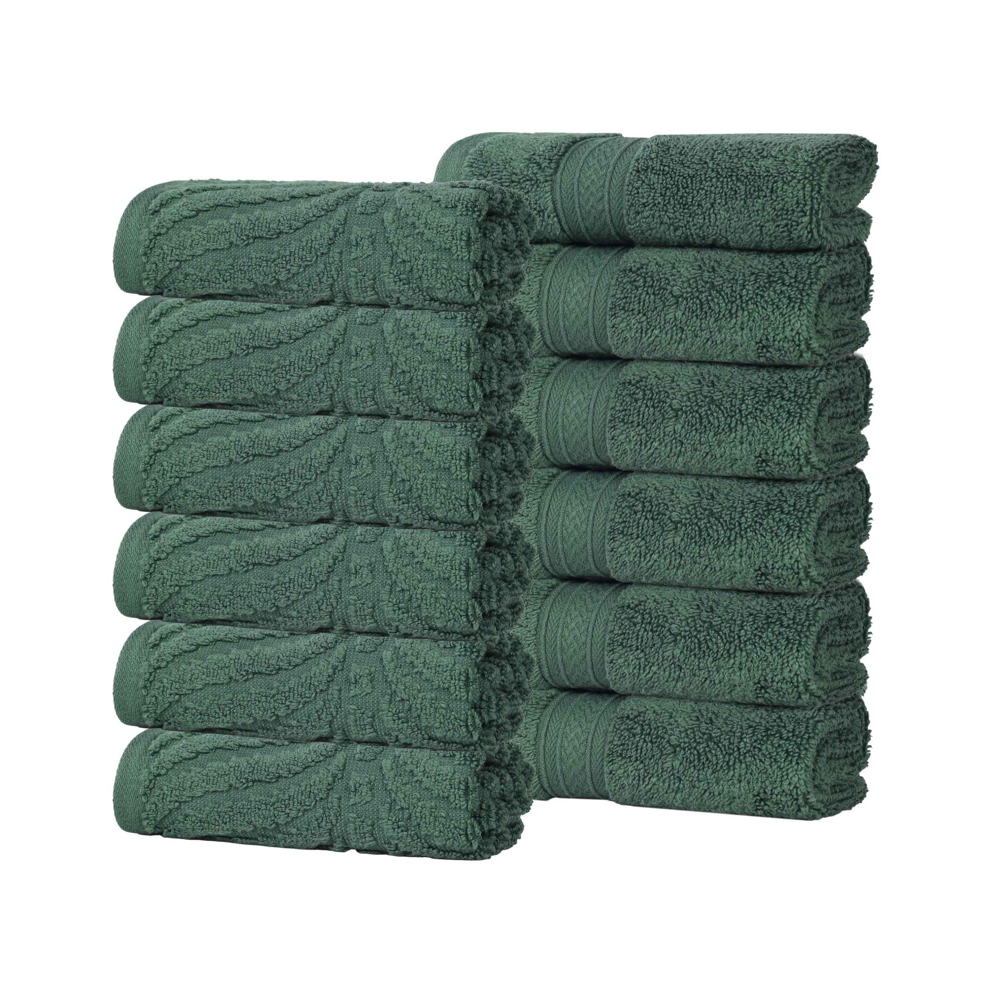 Chevron Zero Twist Solid and Jacquard Soft Cotton Washcloth Set of 12