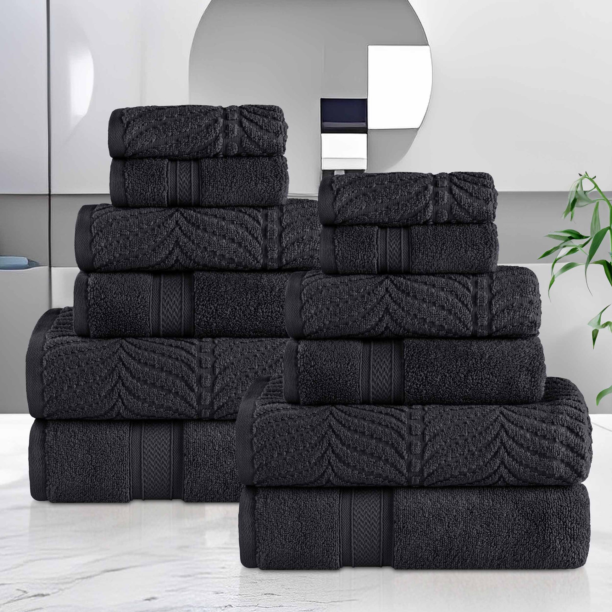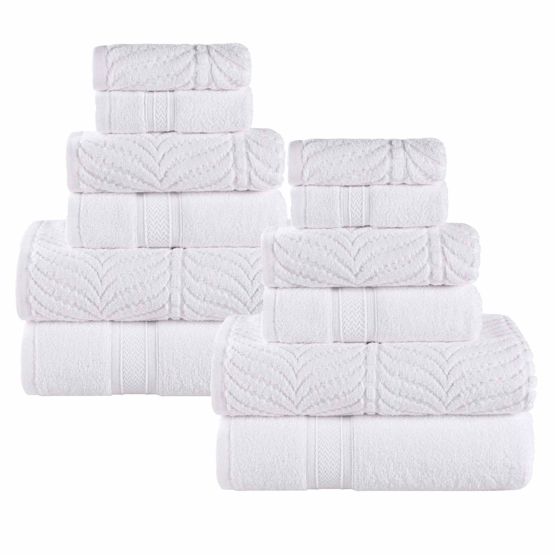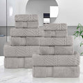 Chevron Zero Twist Solid and Jacquard Soft Cotton 12 Piece Towel Set
