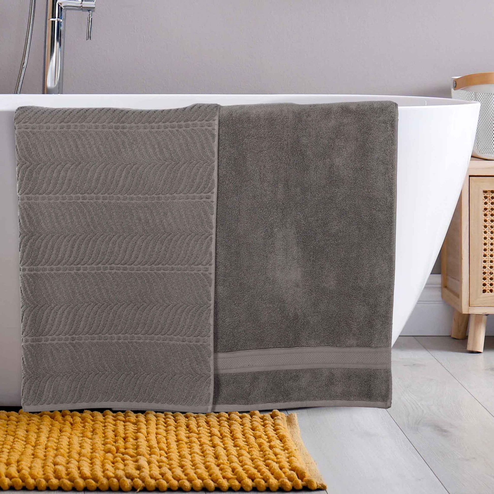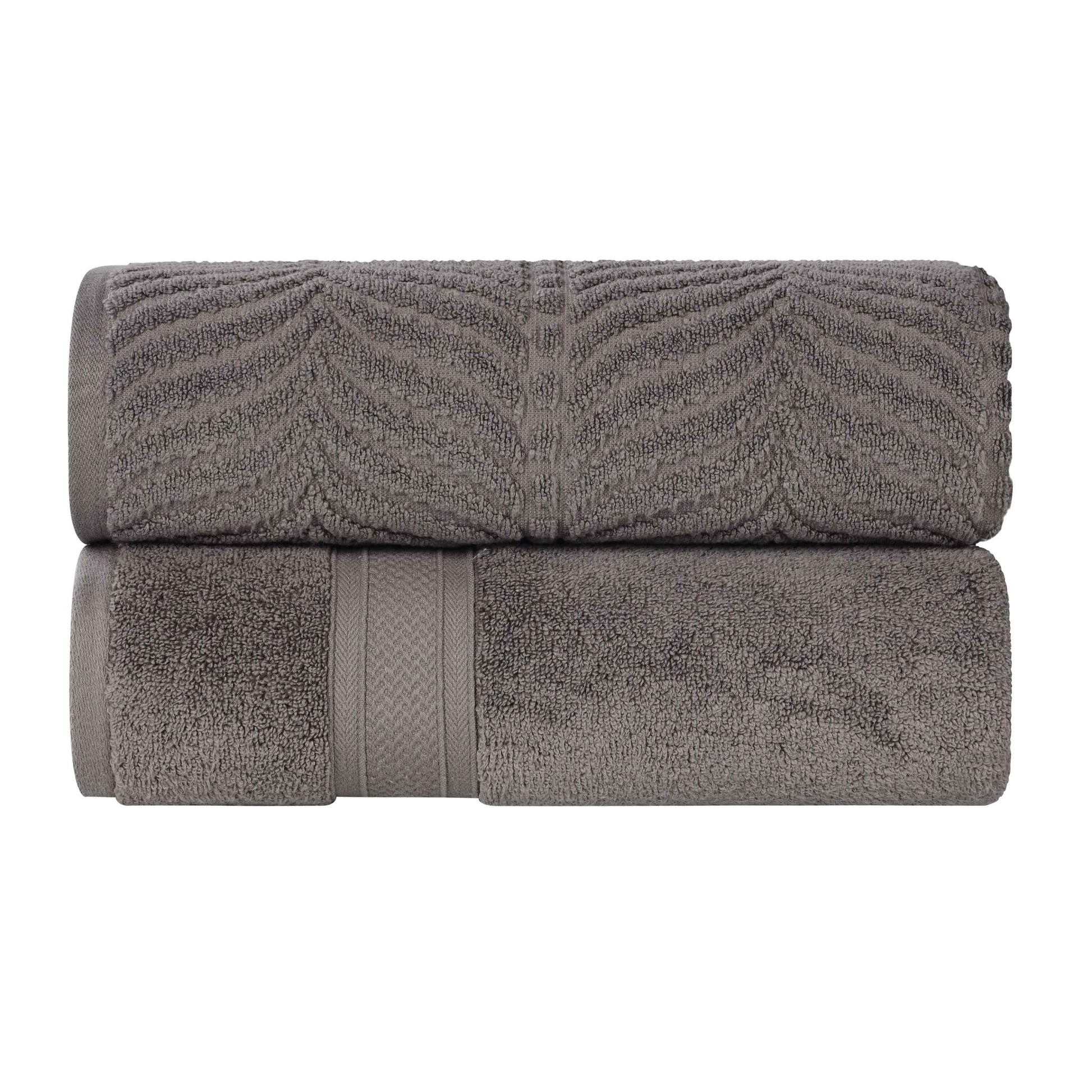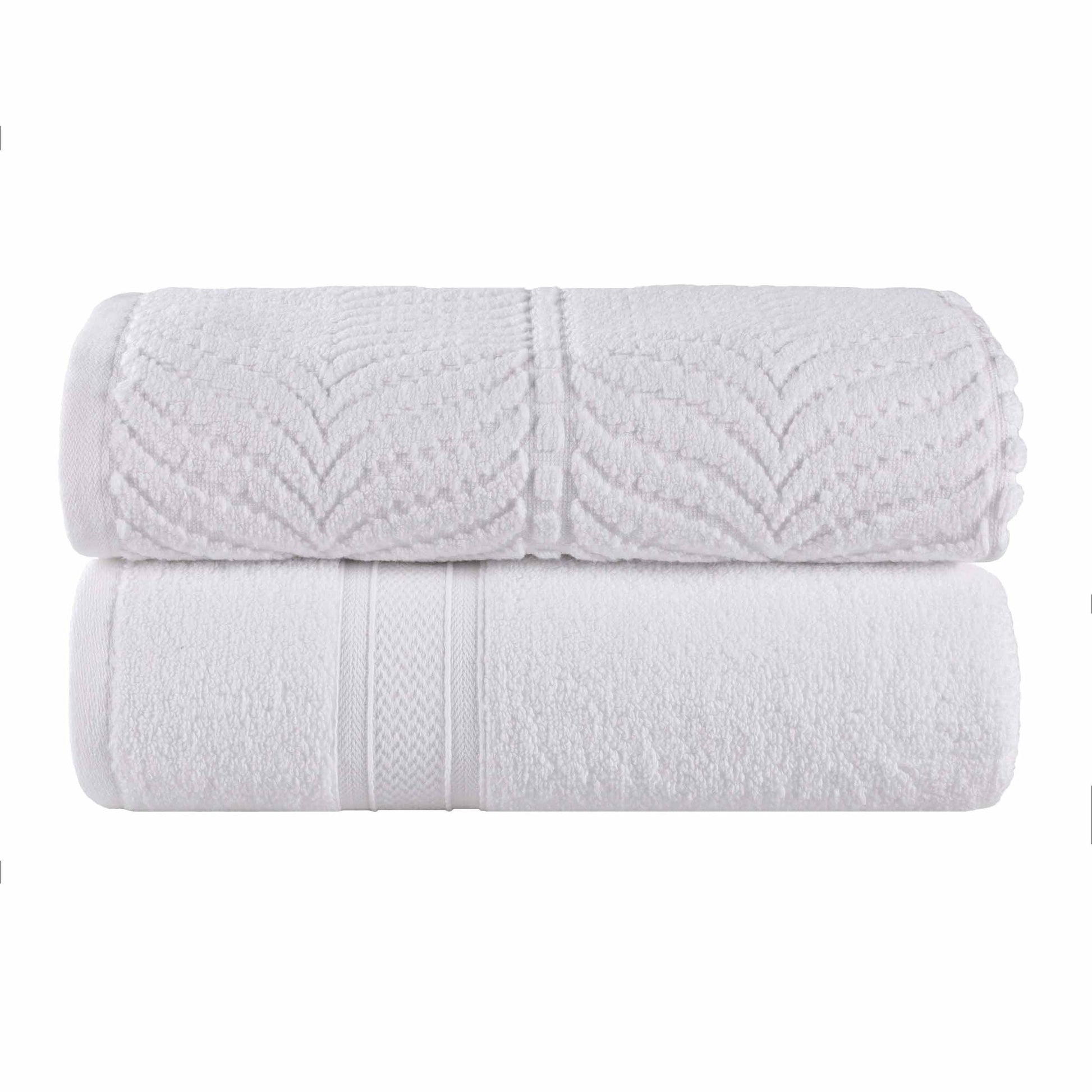 Chevron Zero Twist Solid and Jacquard Soft Cotton Bath Sheet Set of 2
