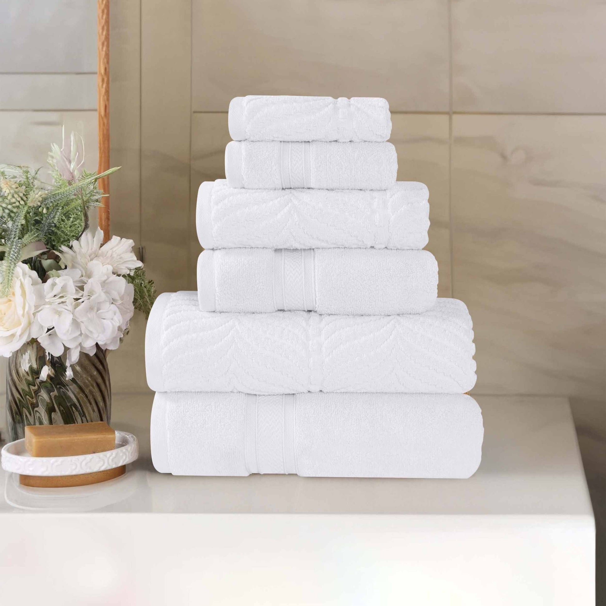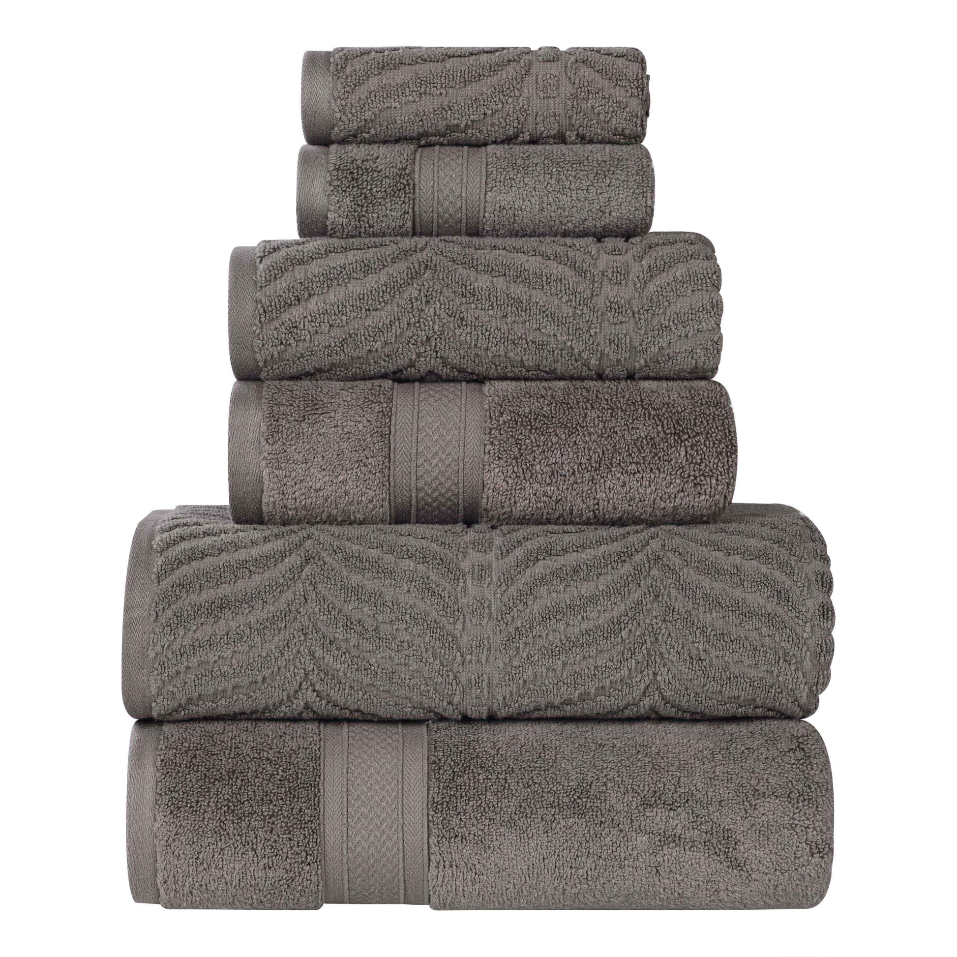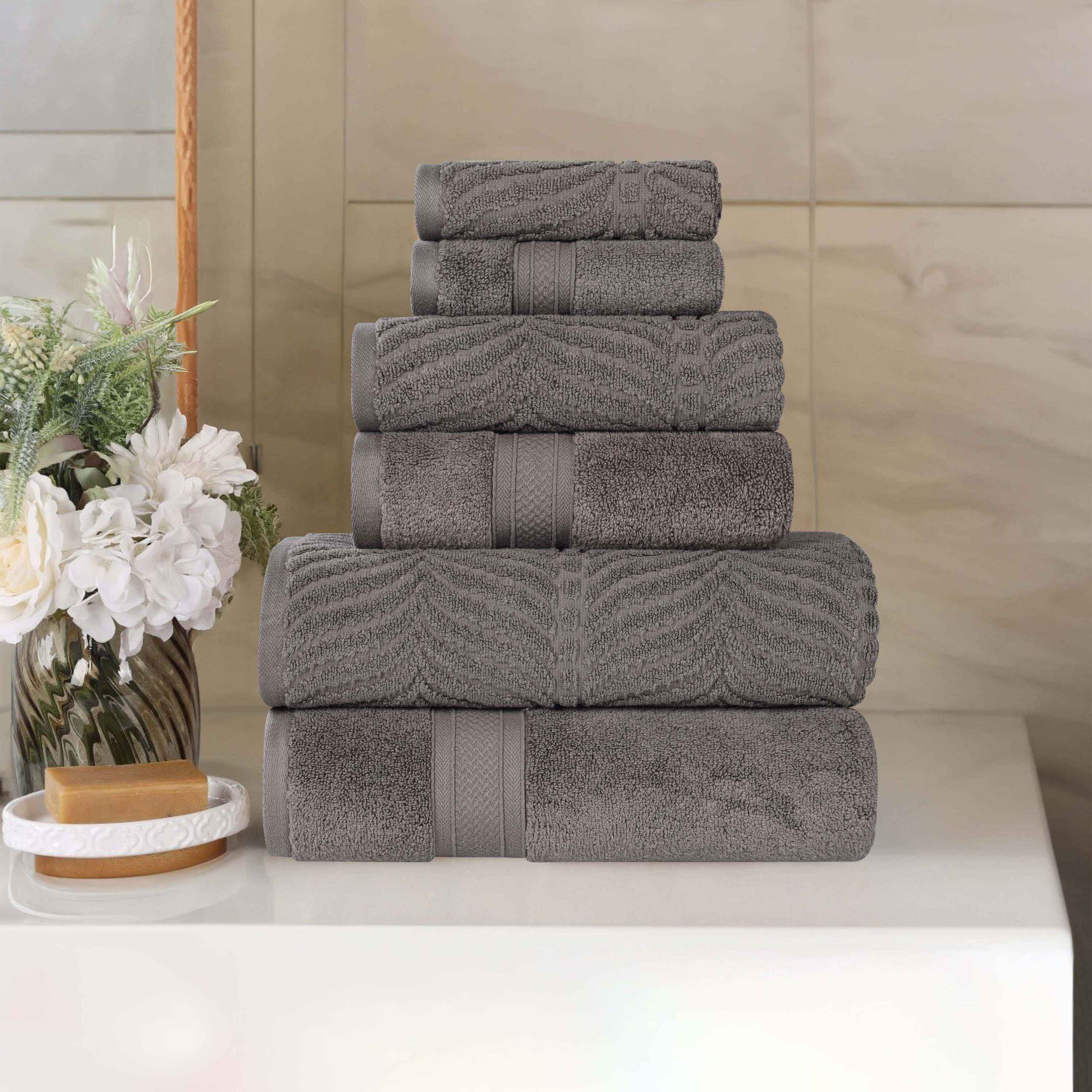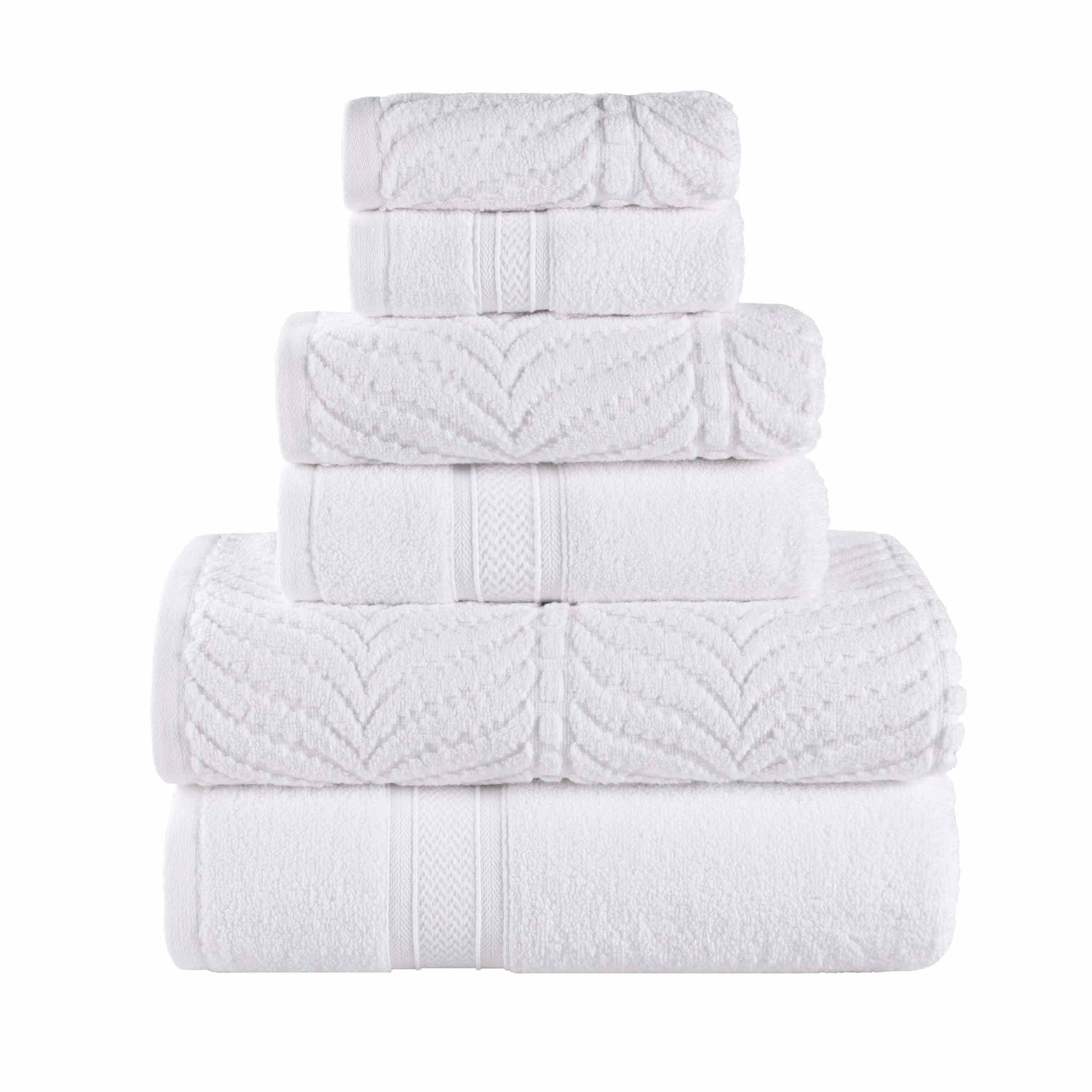 Chevron Zero-Twist Cotton Jacquard and Solid Towel Set 6 Piece