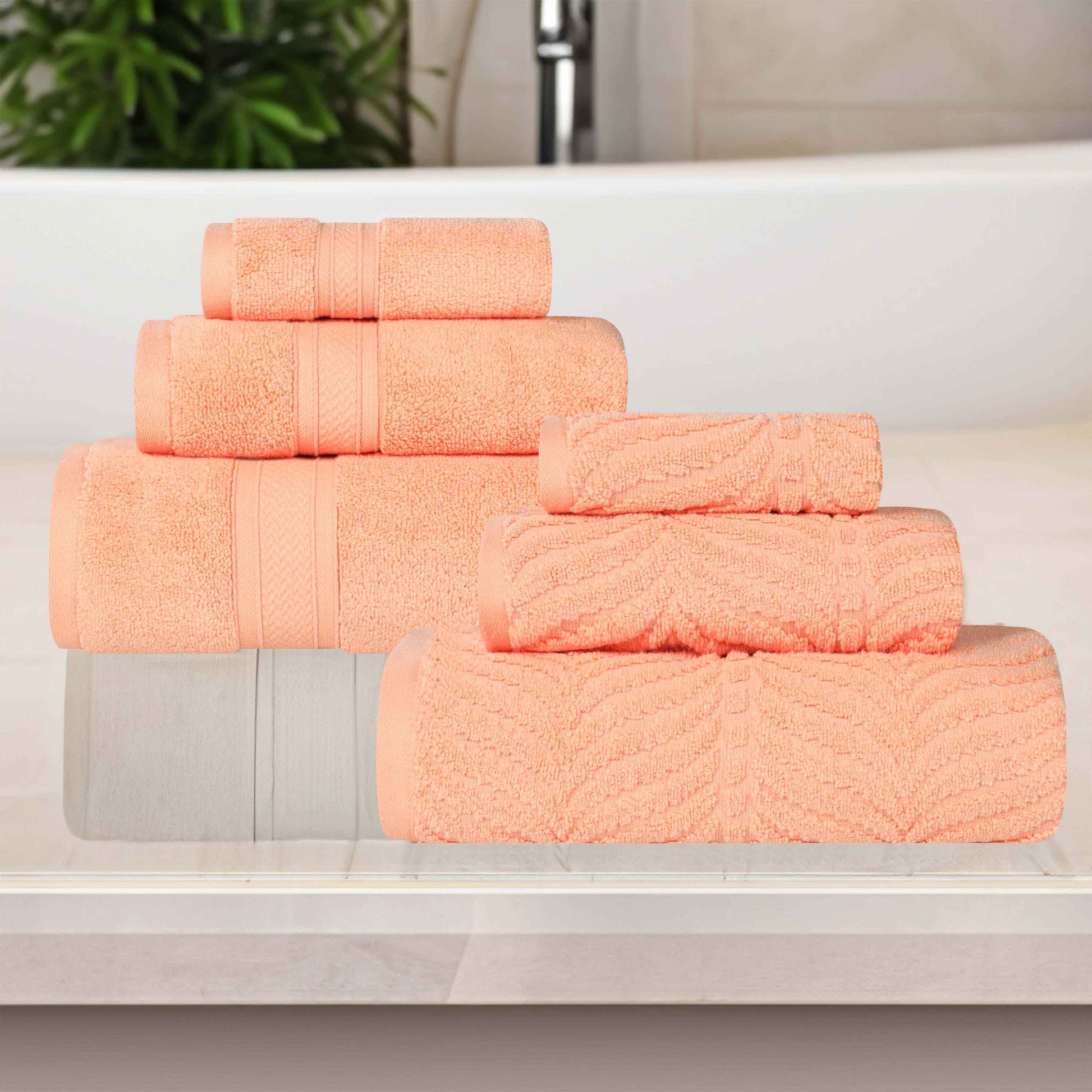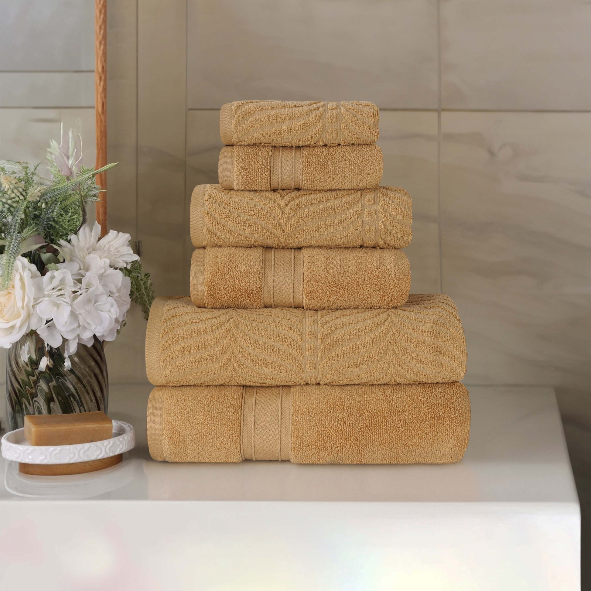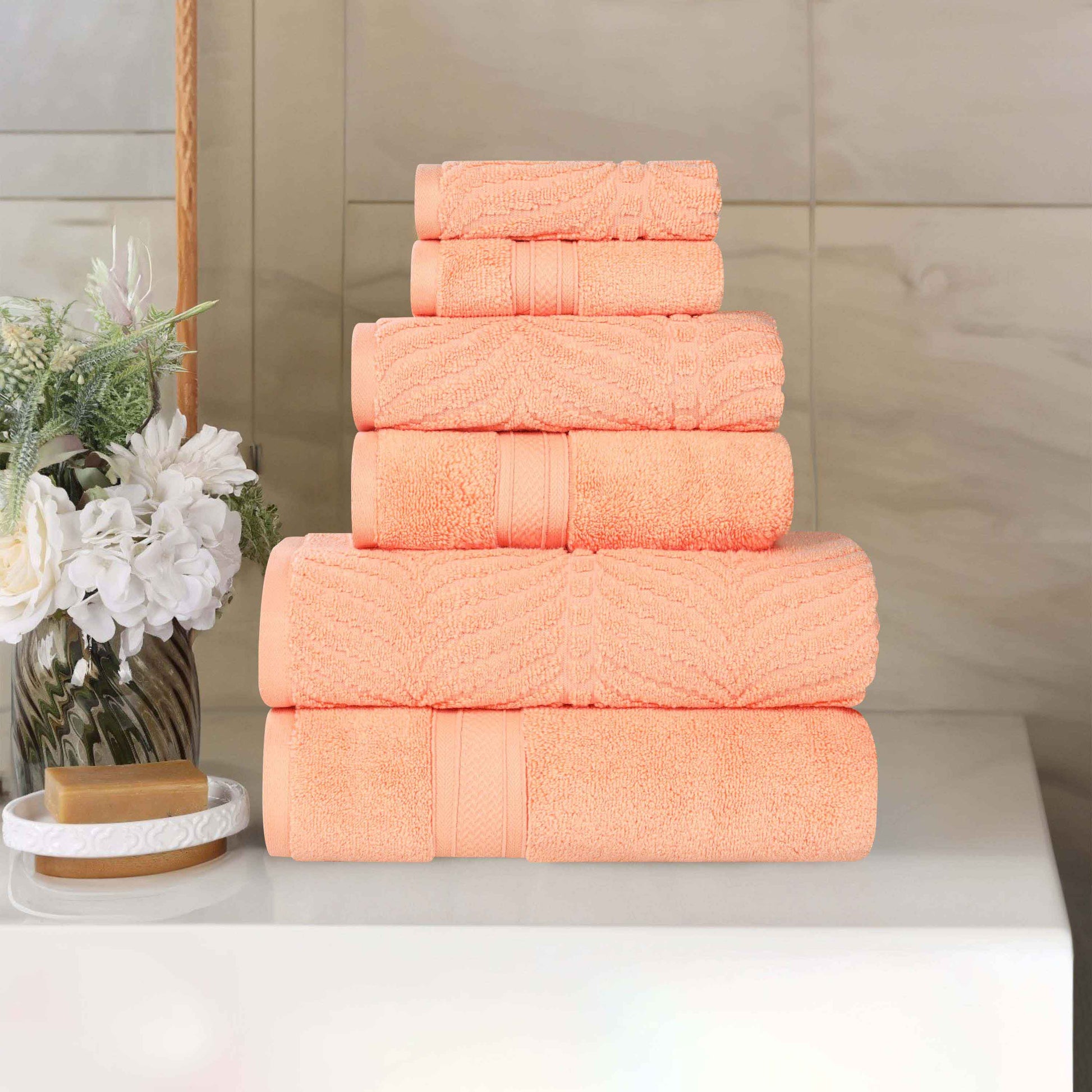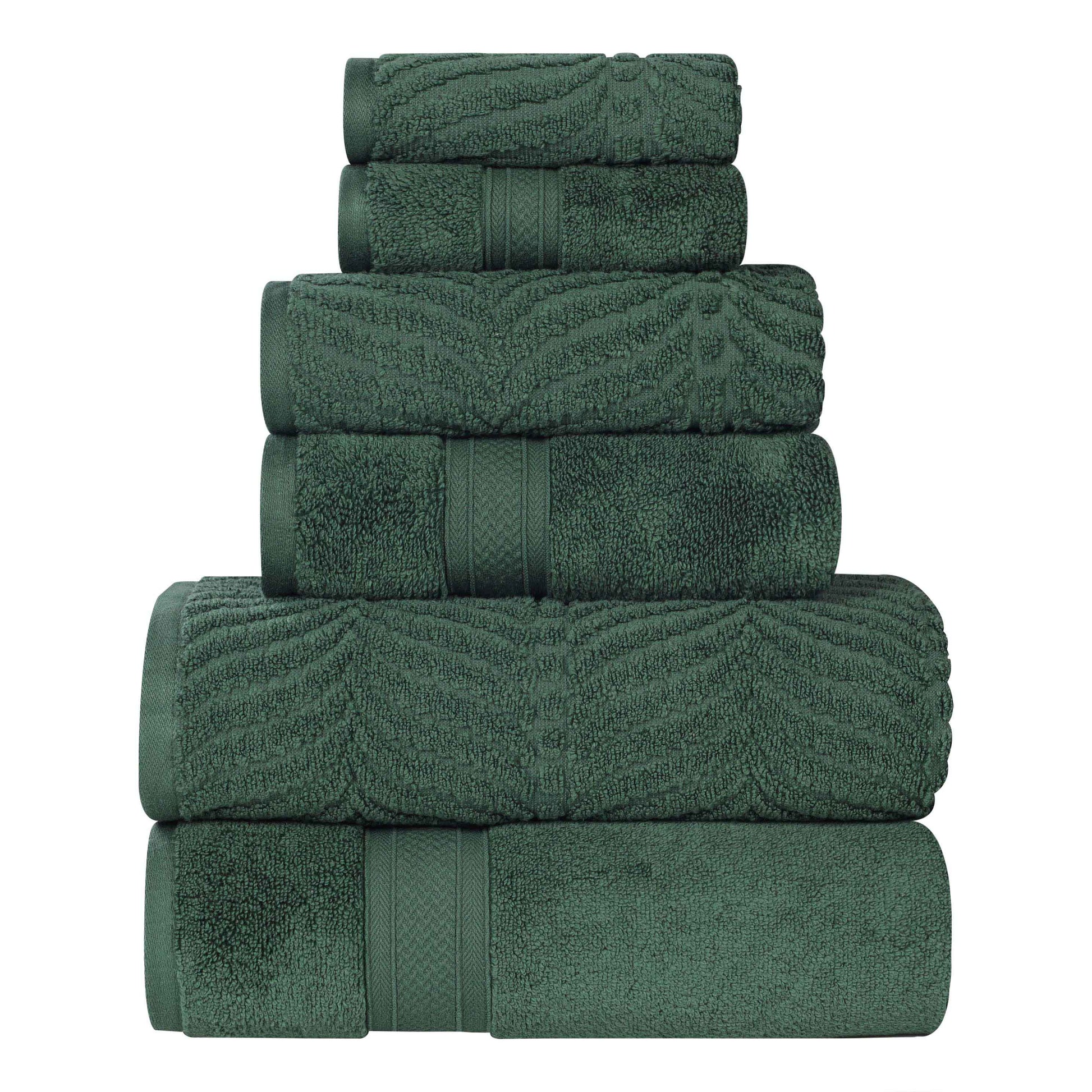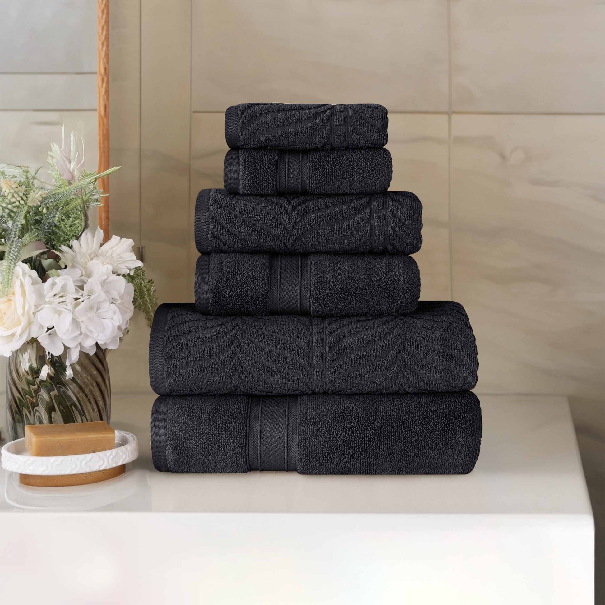 Chevron Zero-Twist Cotton Jacquard and Solid Towel Set 6 Piece