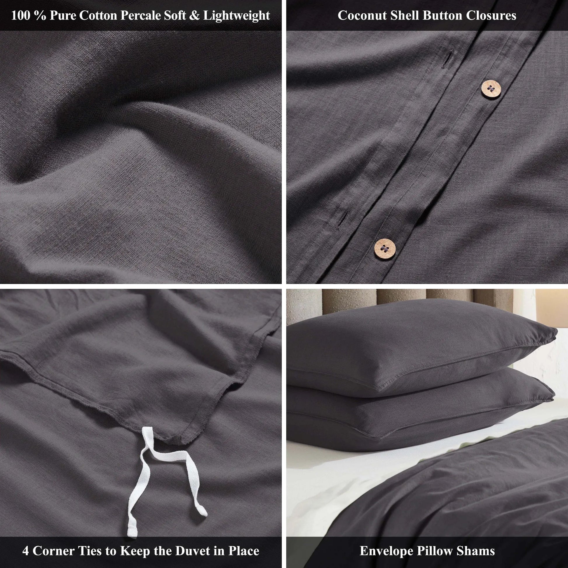 Chloe 100% Cotton Linen Texture Vintage Wash Duvet Cover Set