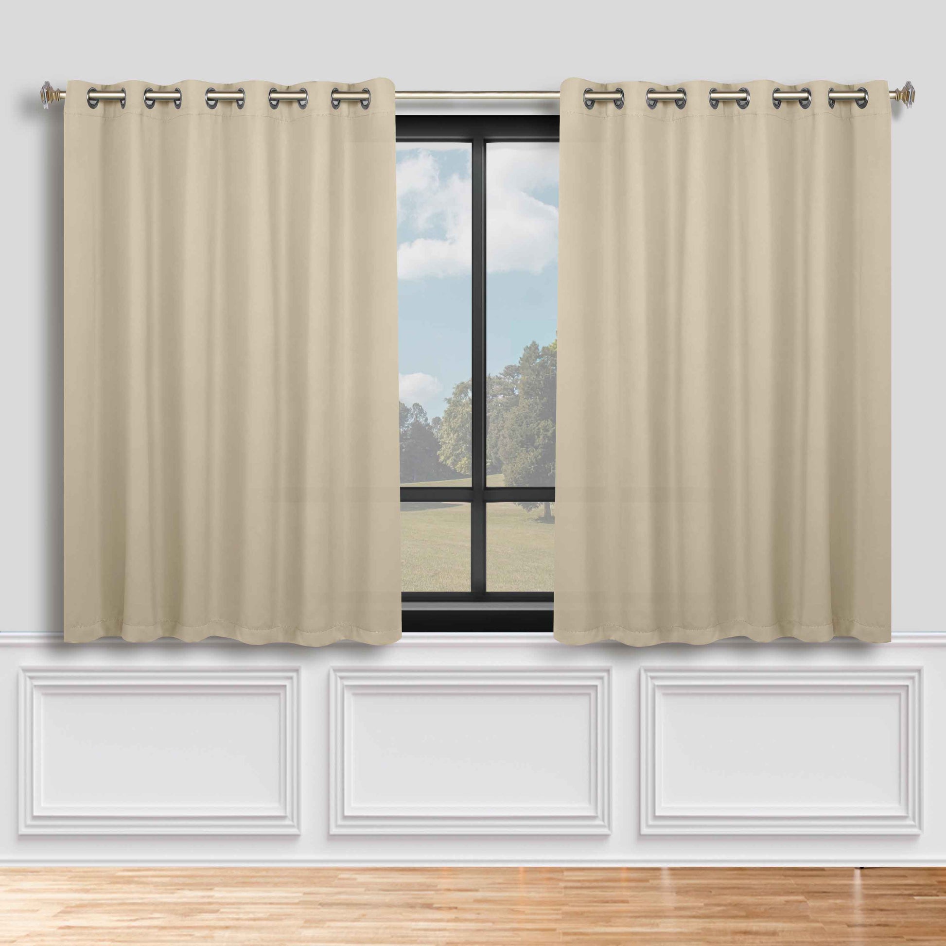 Classic Modern Solid Room Darkening Blackout Curtain Panels, Set of 2