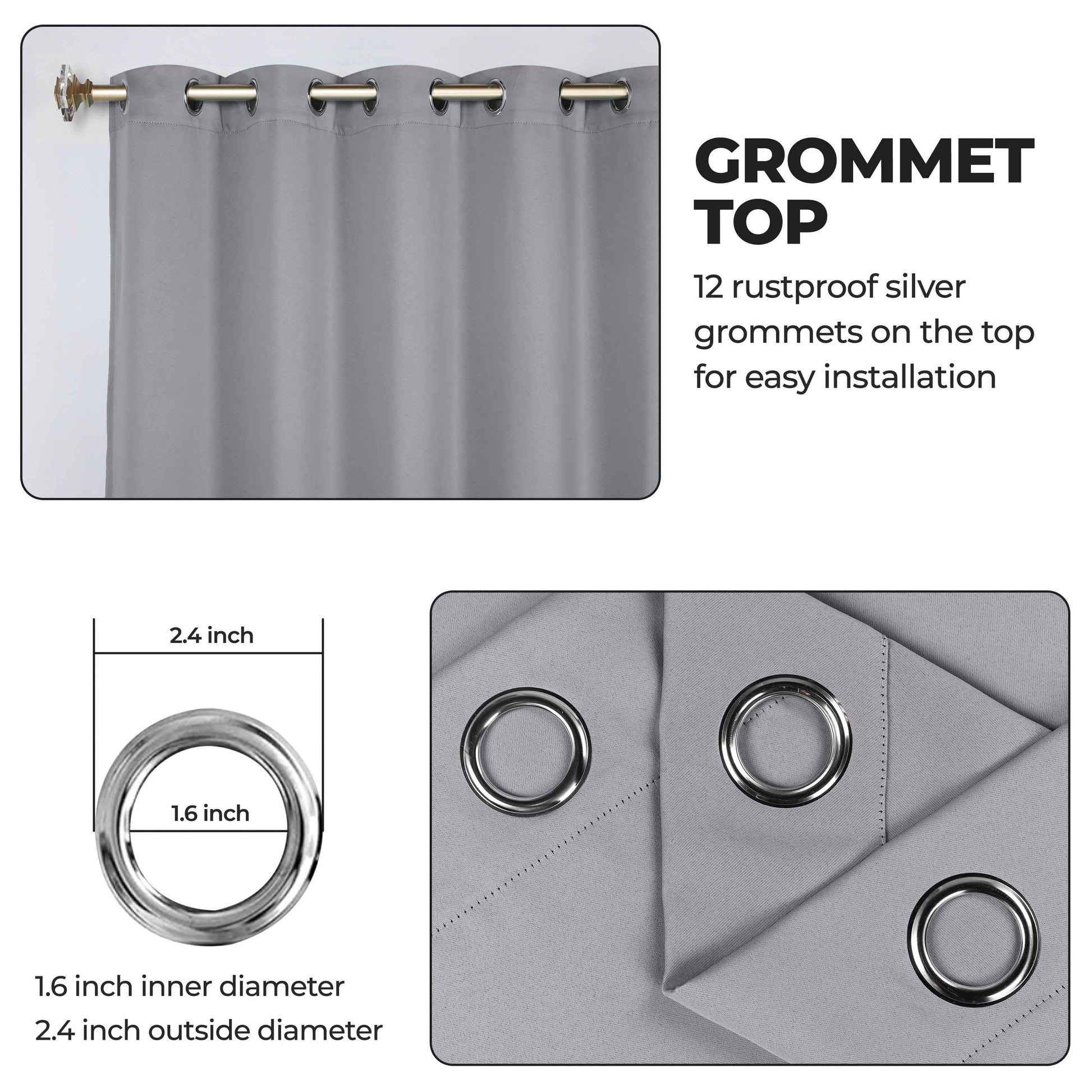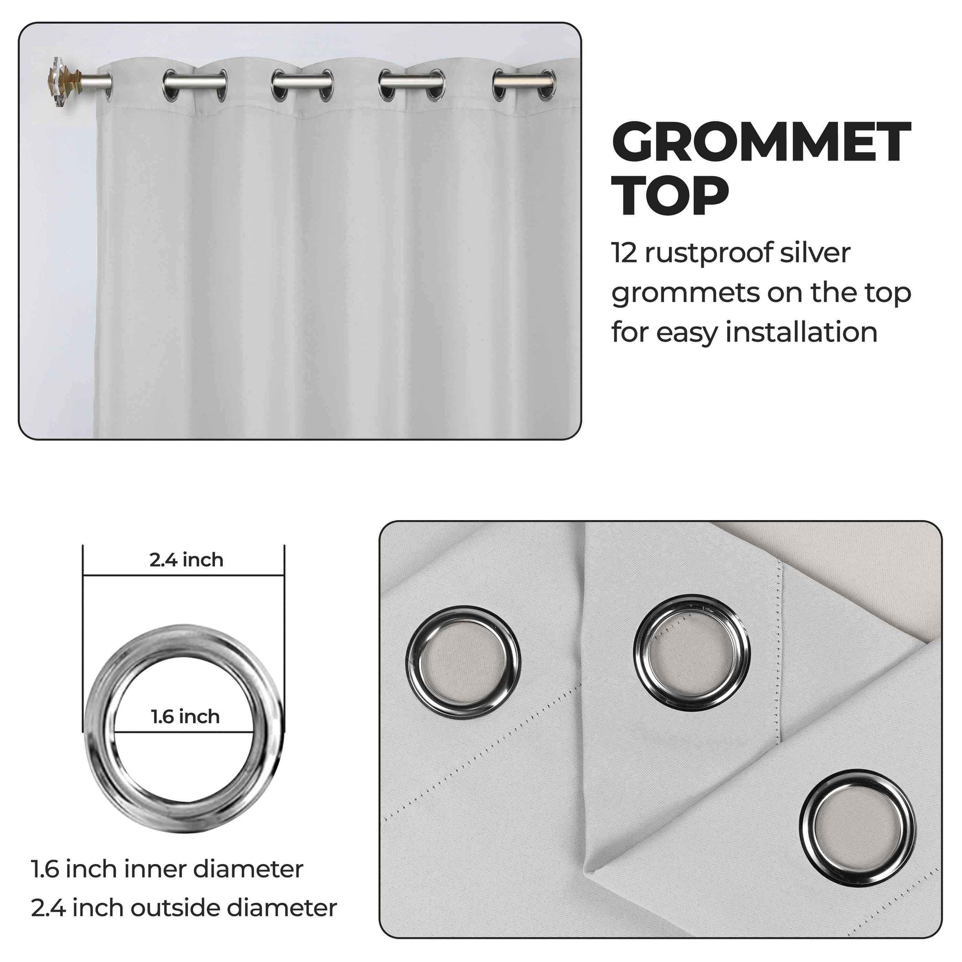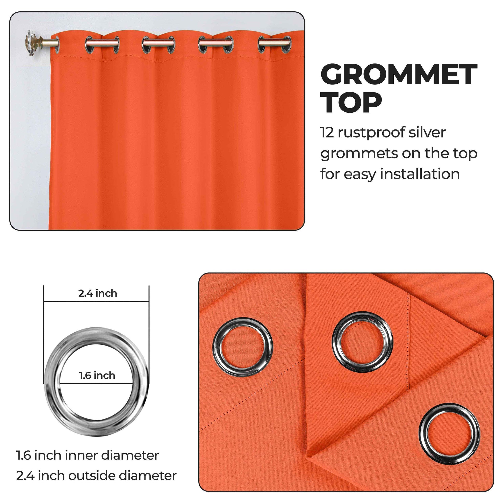 - Additional Features: Blocks up to 70-80% sunlight and UV rays, helps reduce noise, and provides optimal privacy. Stainless steel grommet header for easy installation. Energy efficient and thermal insulating; Reduces room heat and cold loss through window to maintain cozy room temperature.