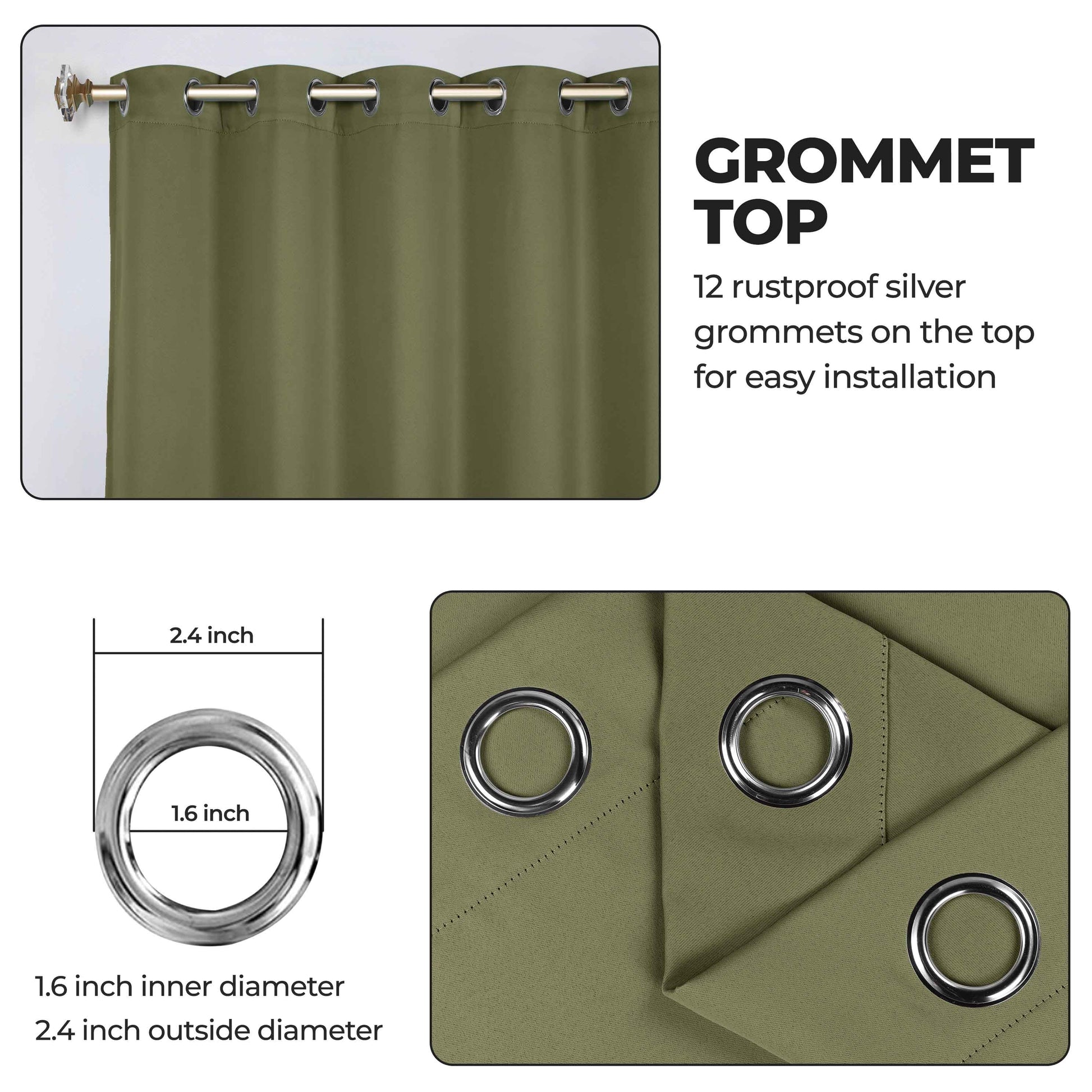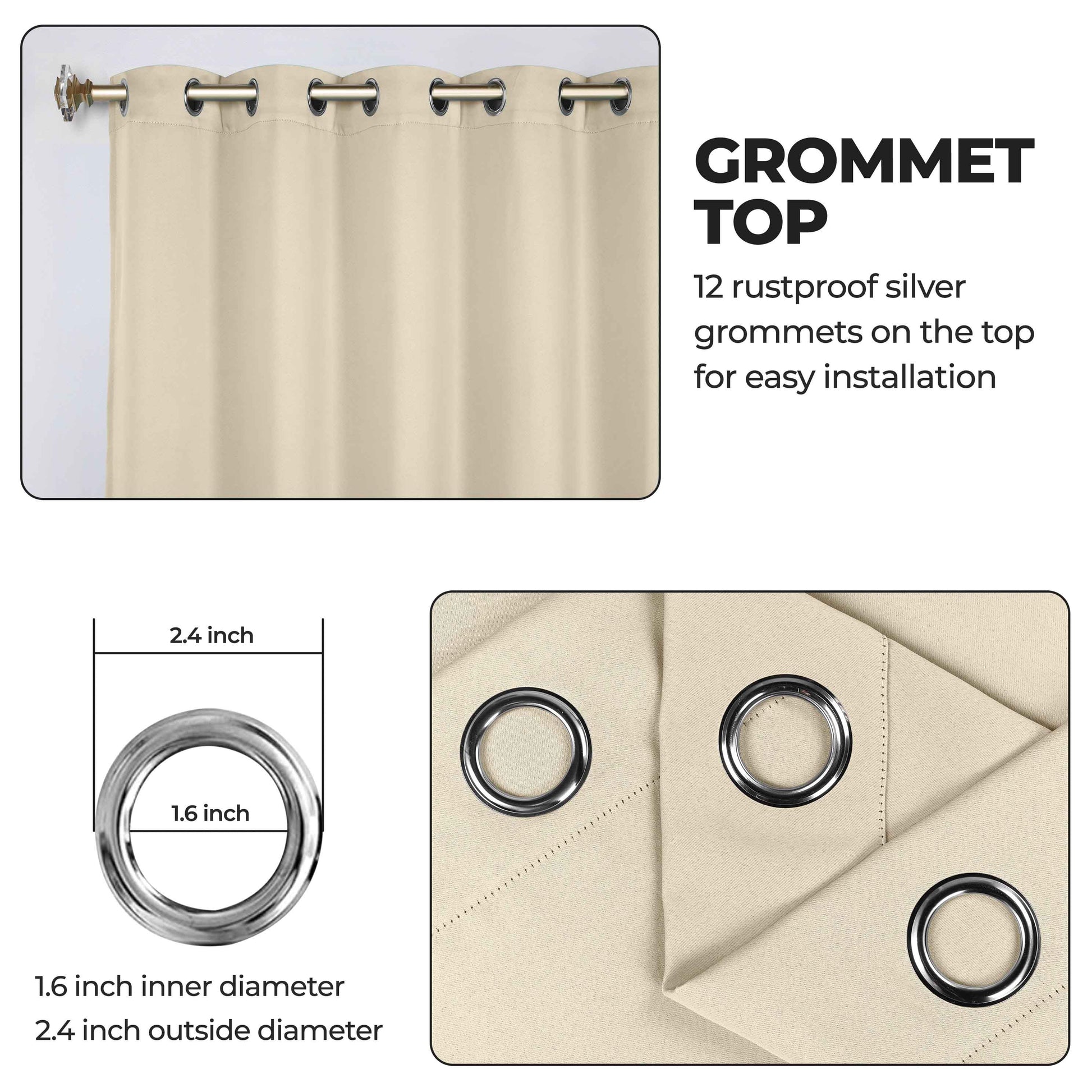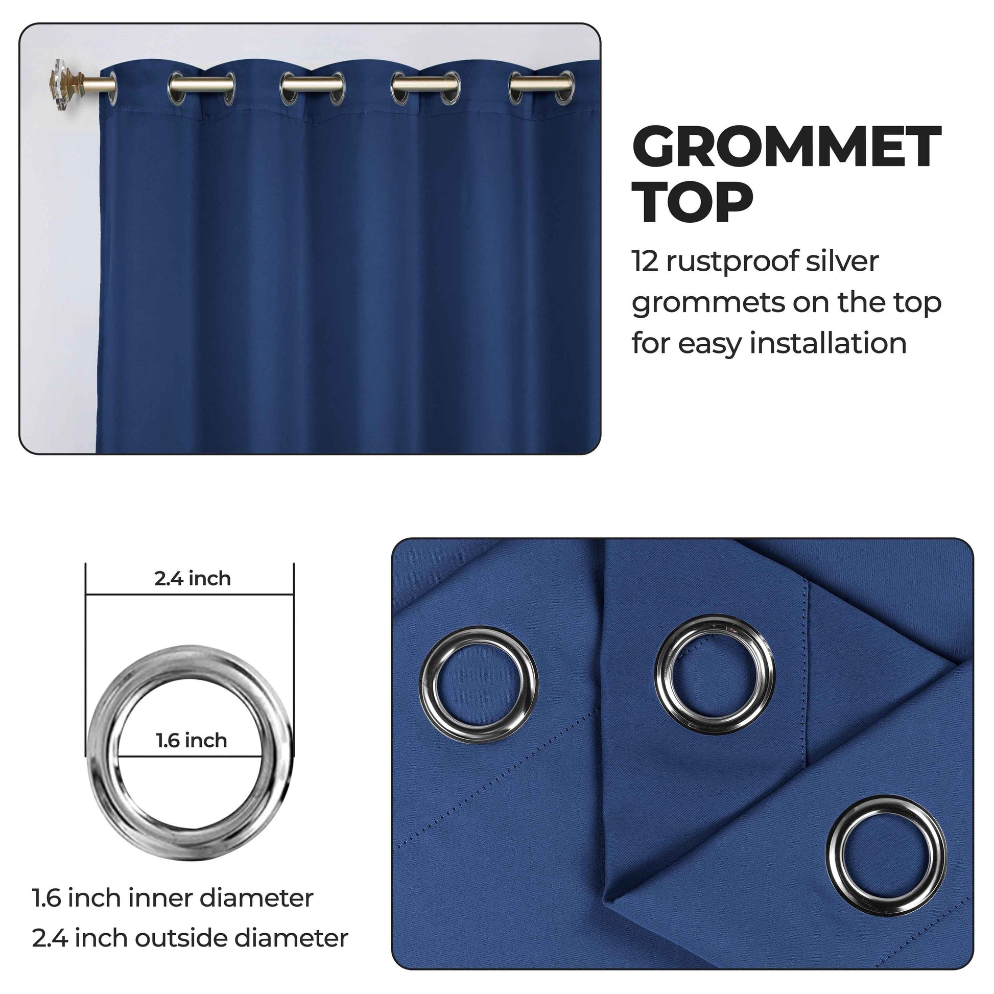 - Additional Features: Blocks up to 70-80% sunlight and UV rays, helps reduce noise, and provides optimal privacy. Stainless steel grommet header for easy installation. Energy efficient and thermal insulating; Reduces room heat and cold loss through window to maintain cozy room temperature.
