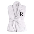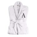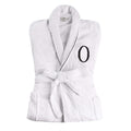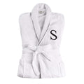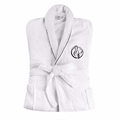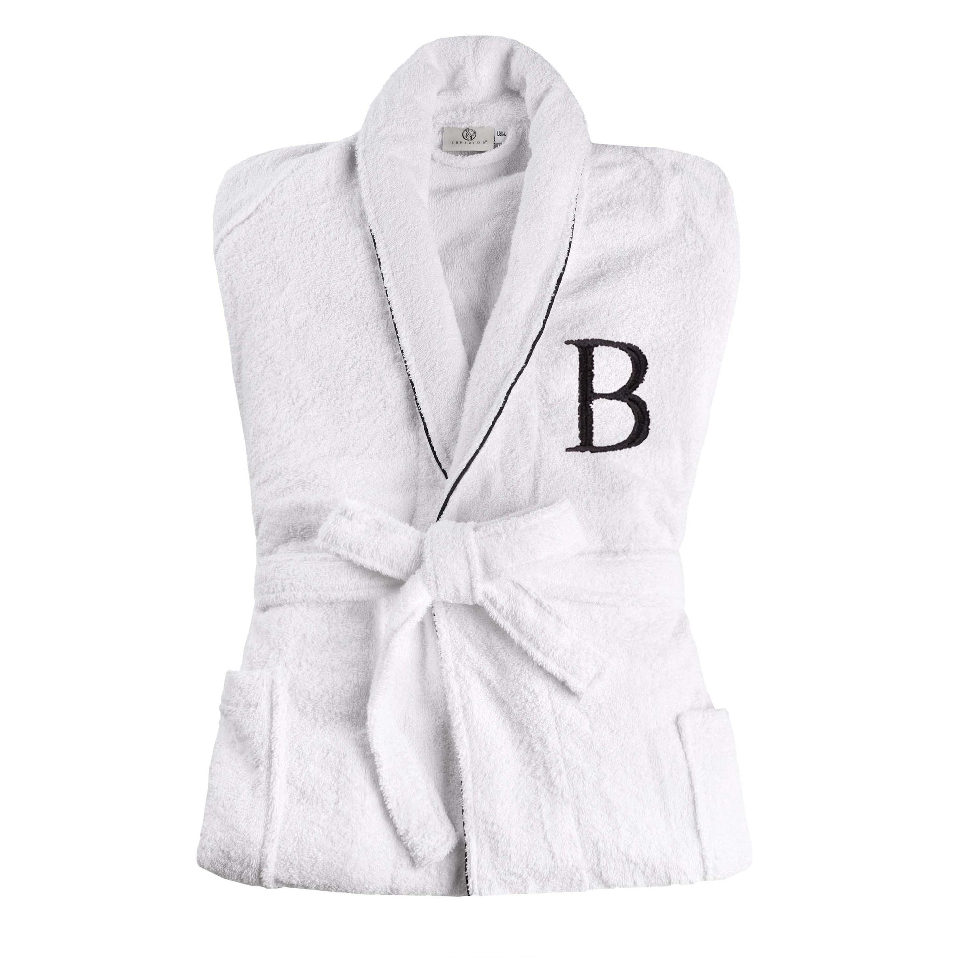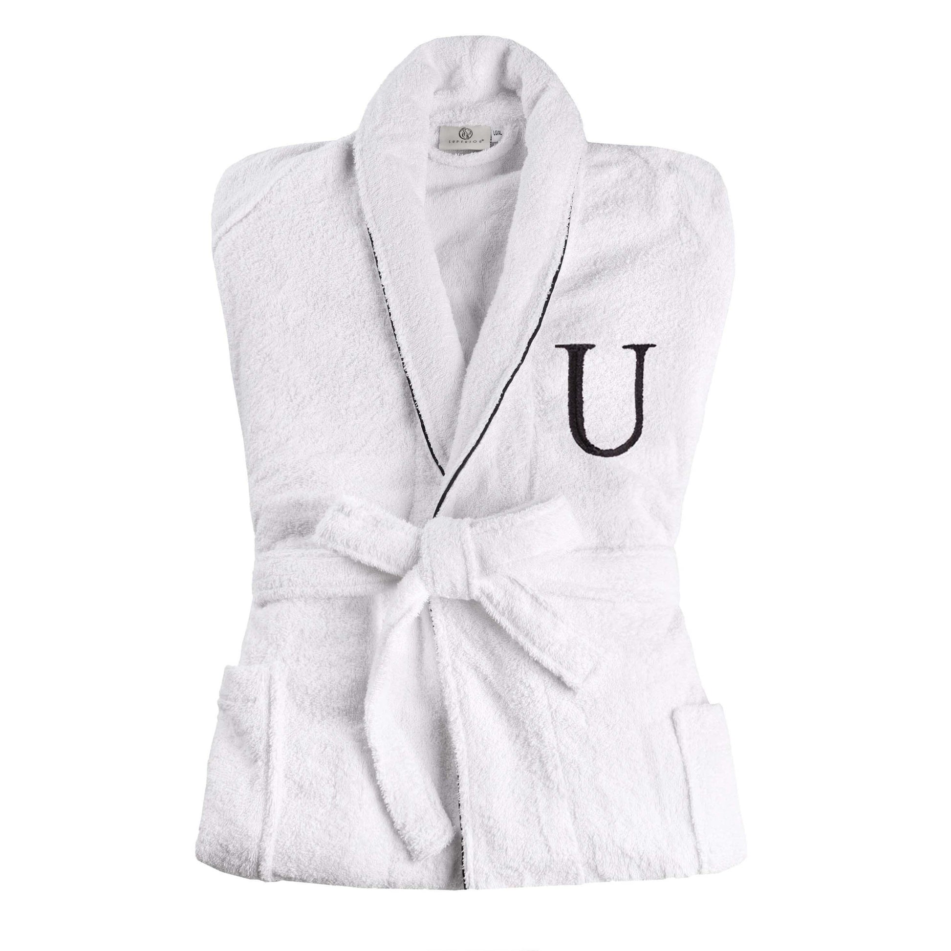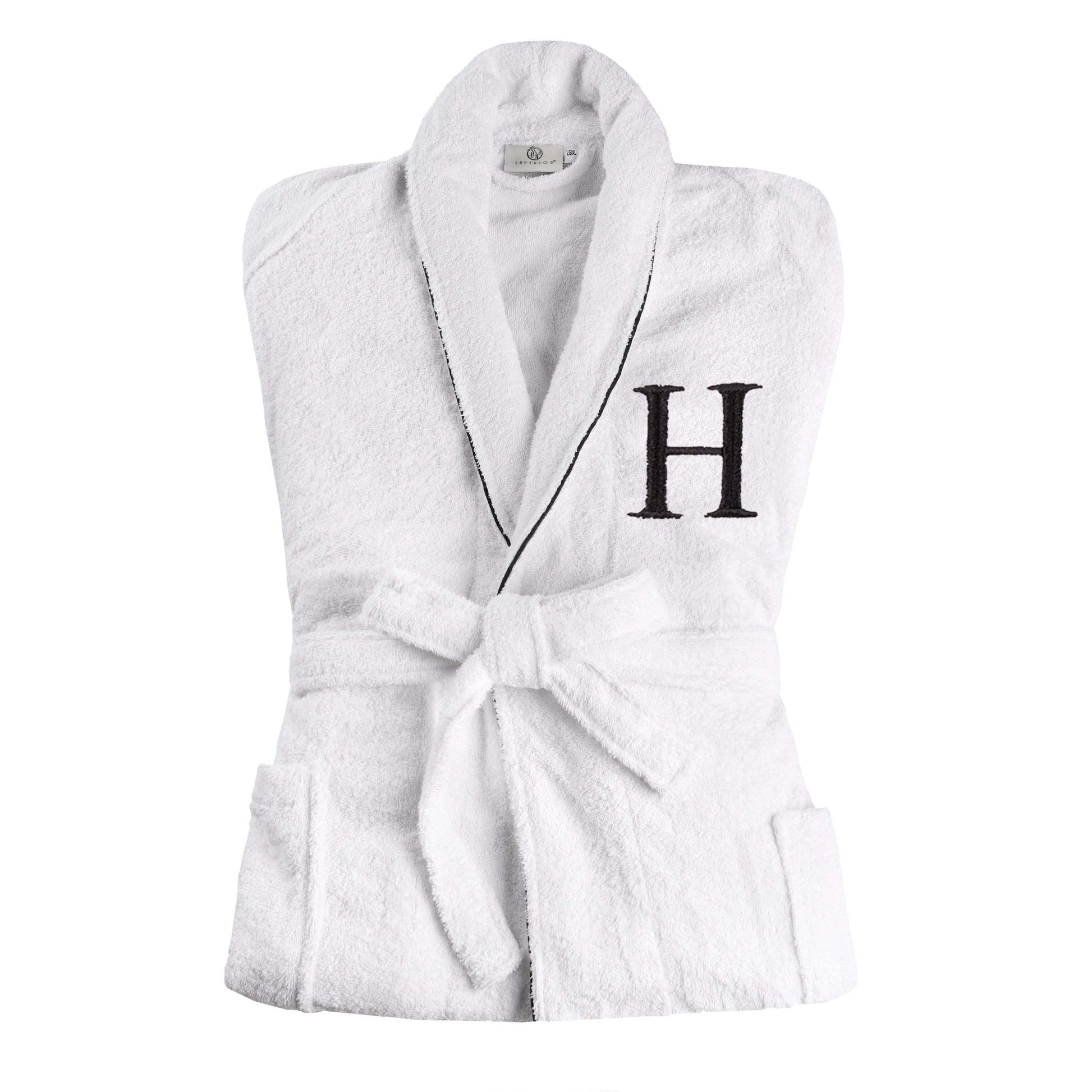 - Design Details: Solid white bathrobe with black piping and your choice of monogram: alphabet, His/Hers, Superior logo, or no monogram.
