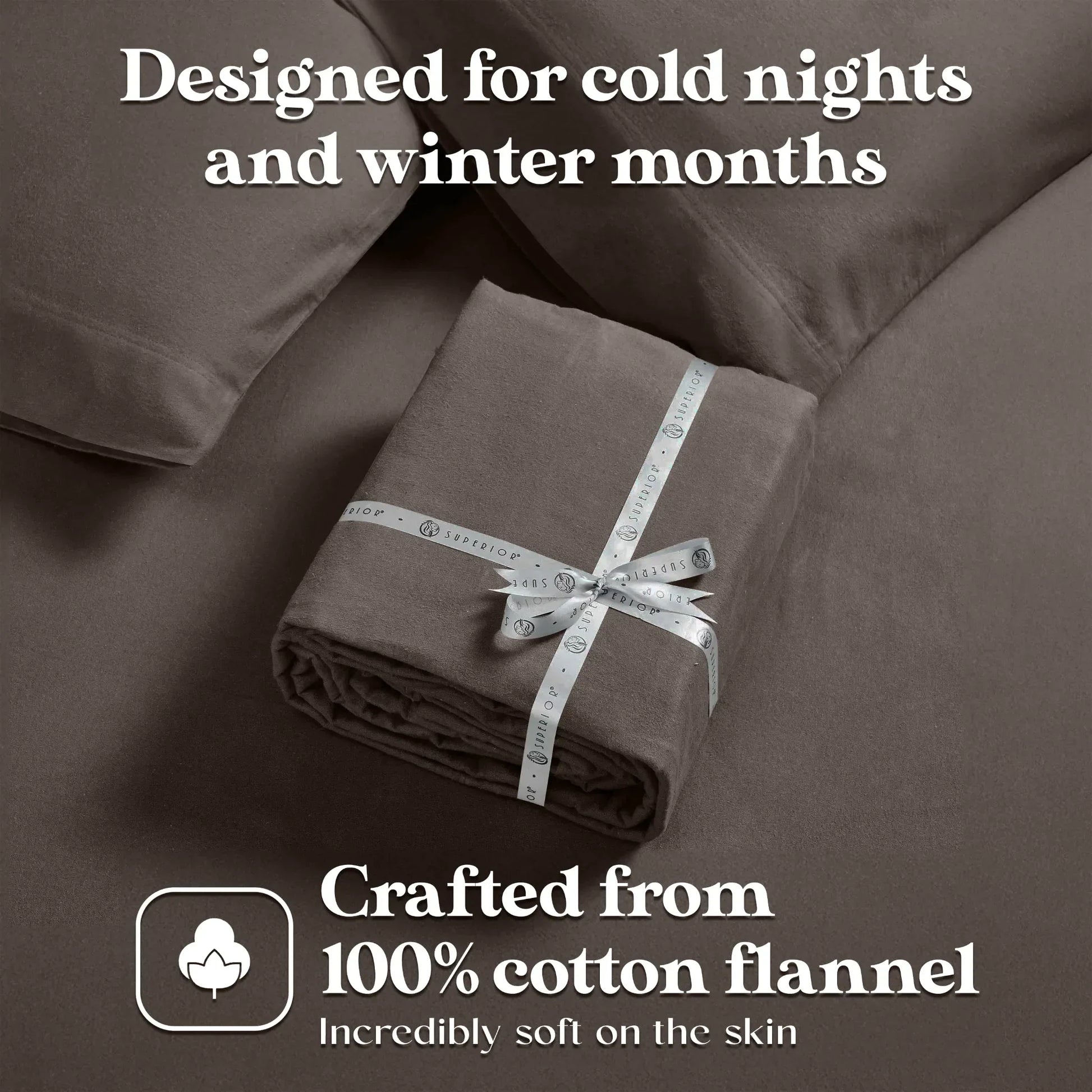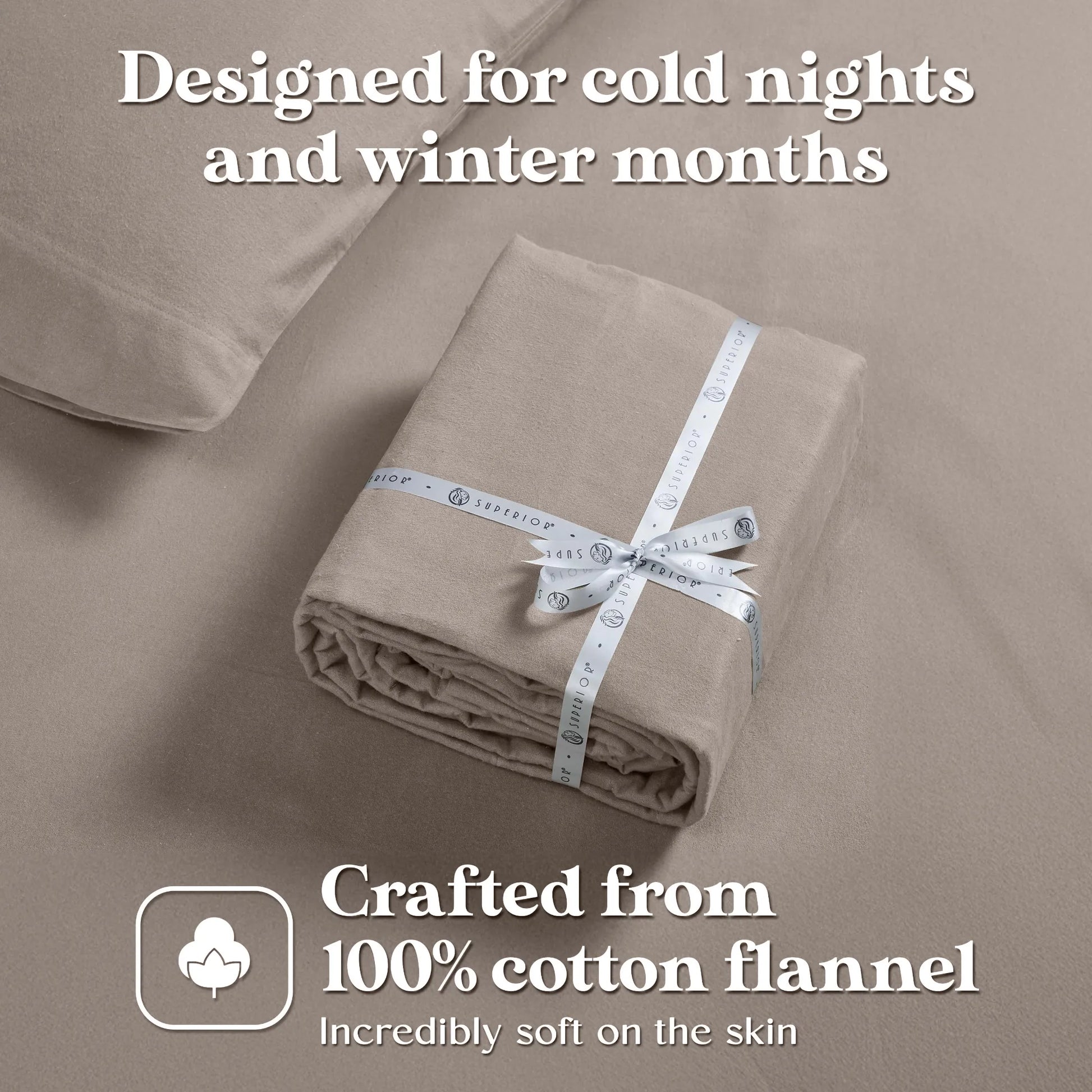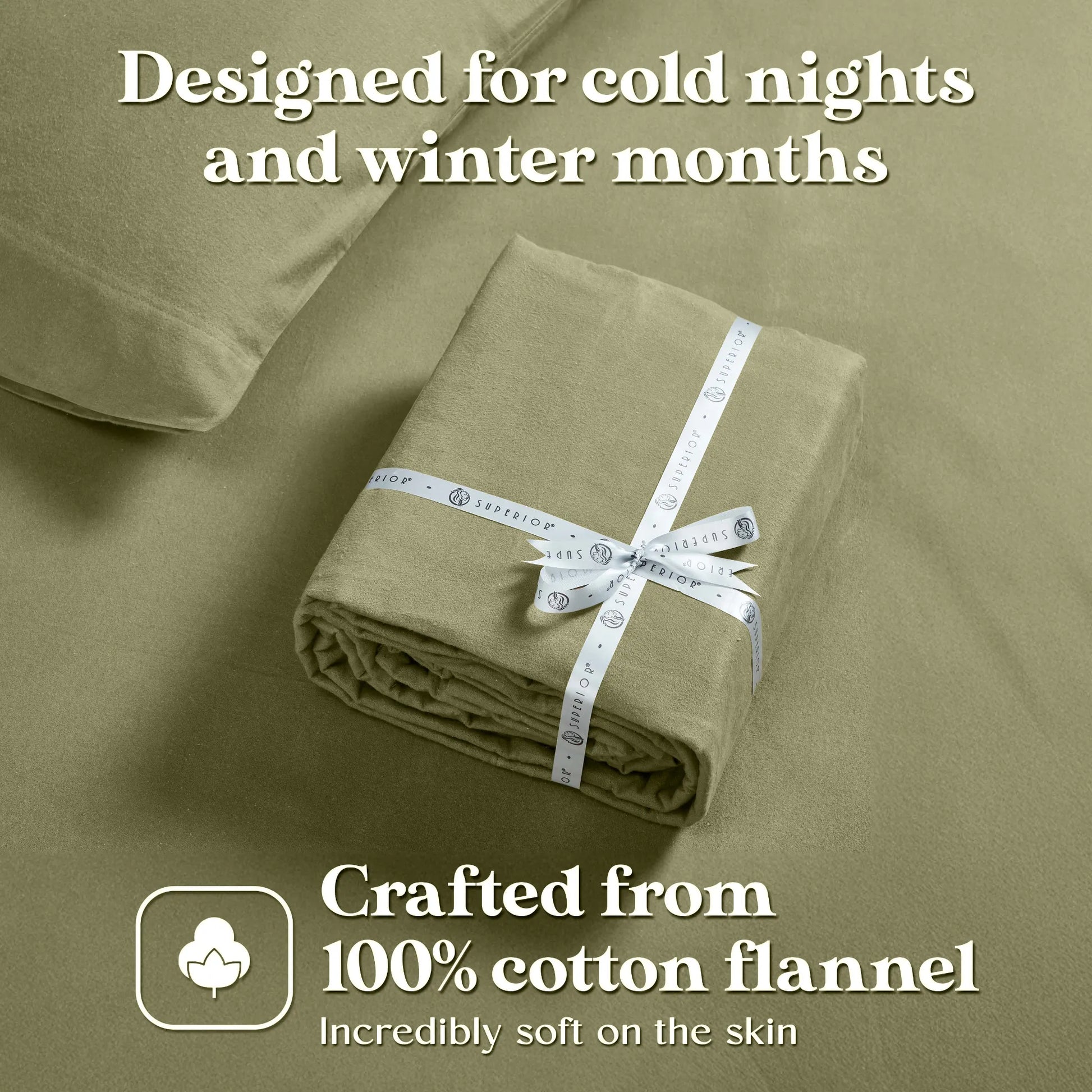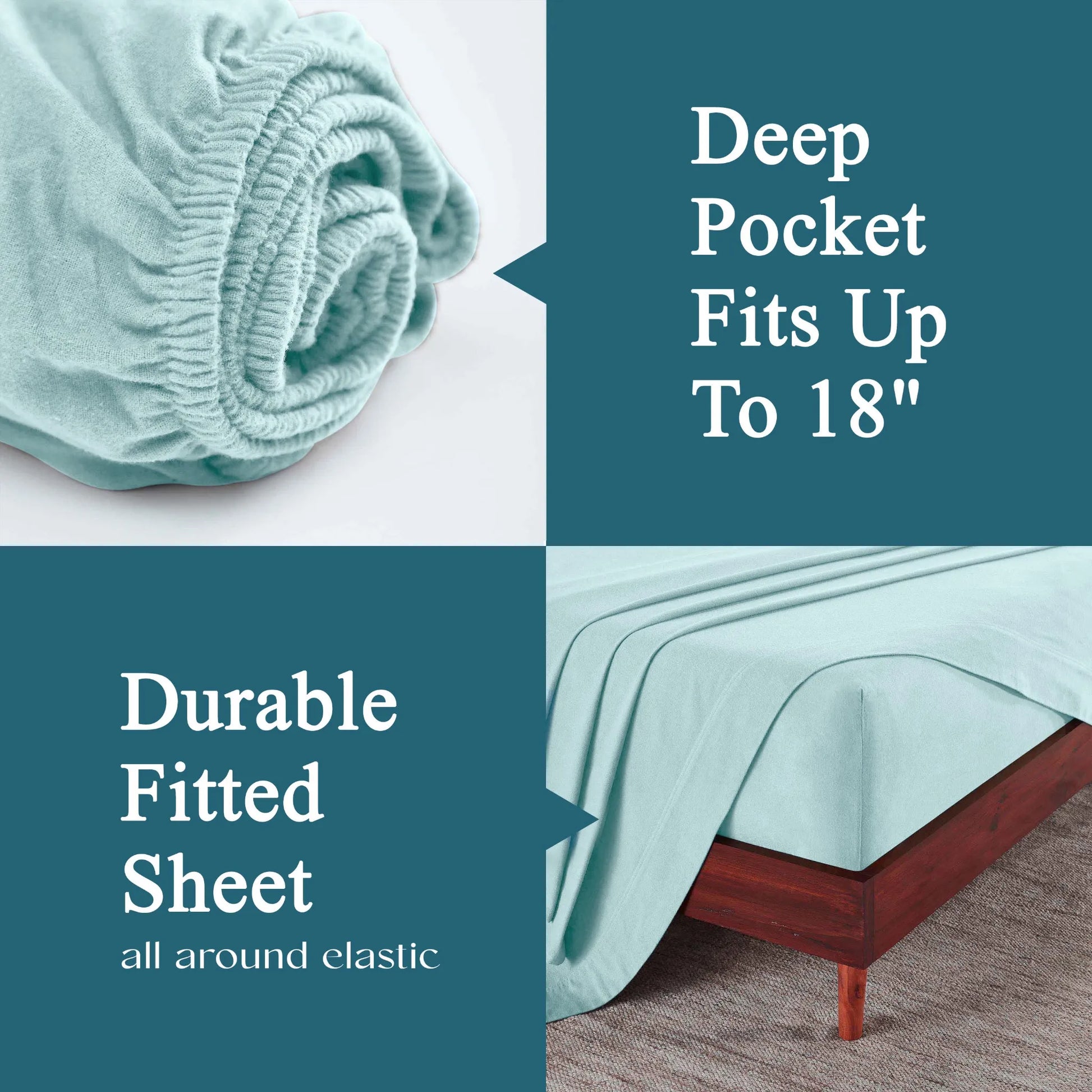 100% Cotton Flannel Sheets Set - Solid Deep Pocket Bed Sheet Set