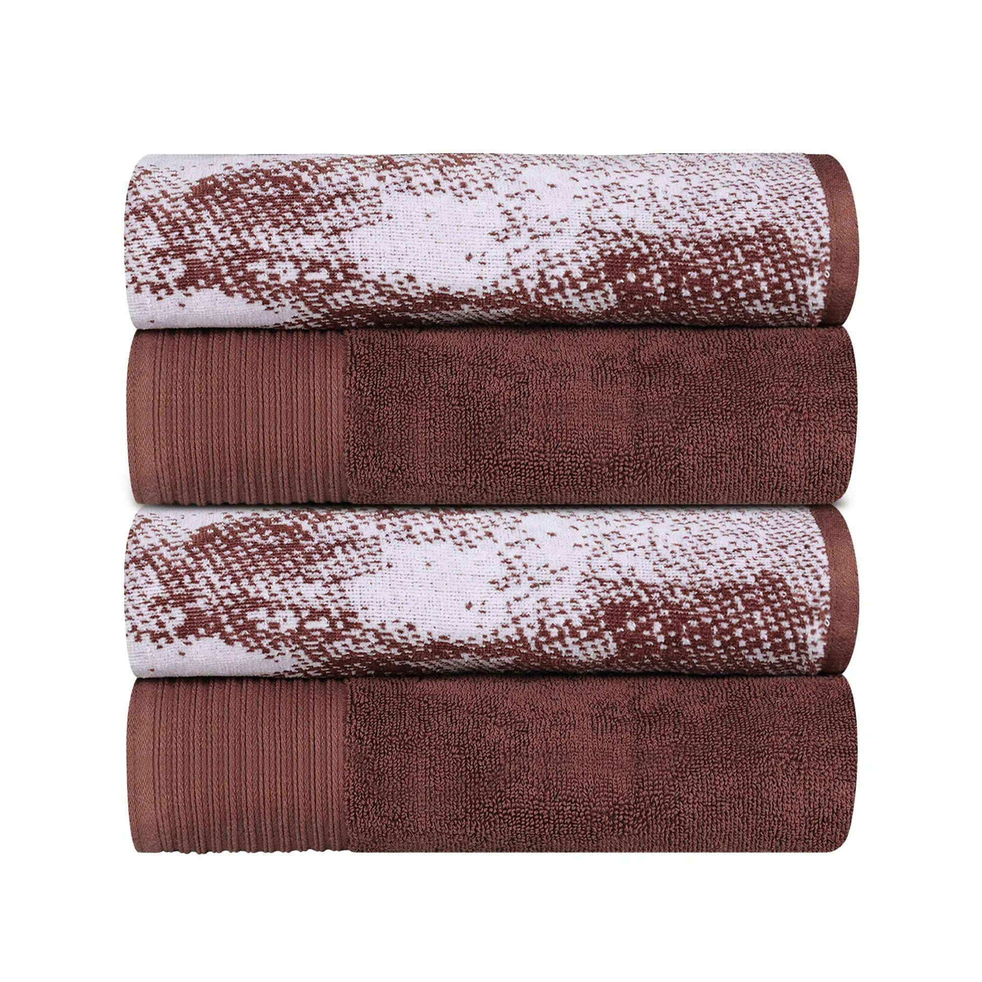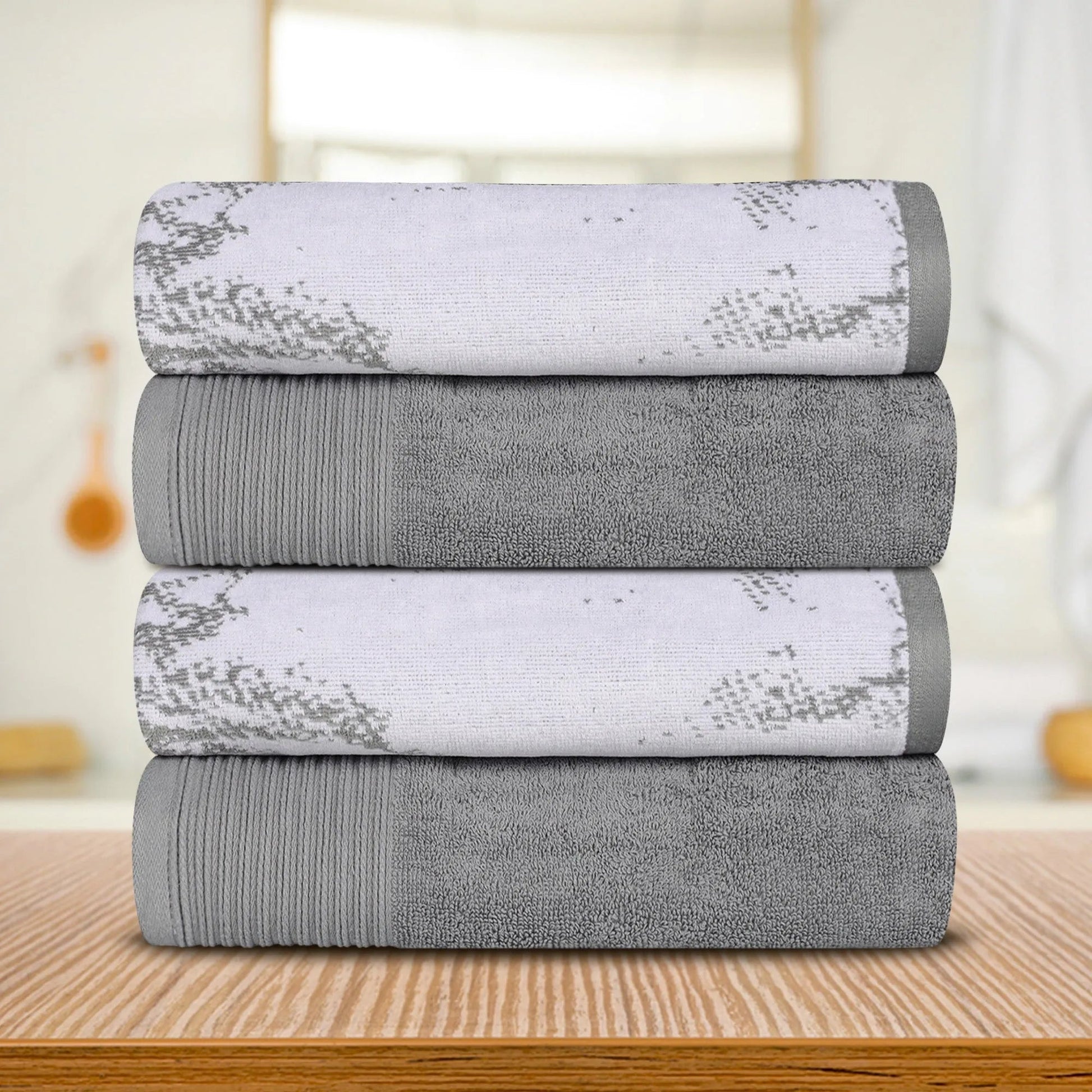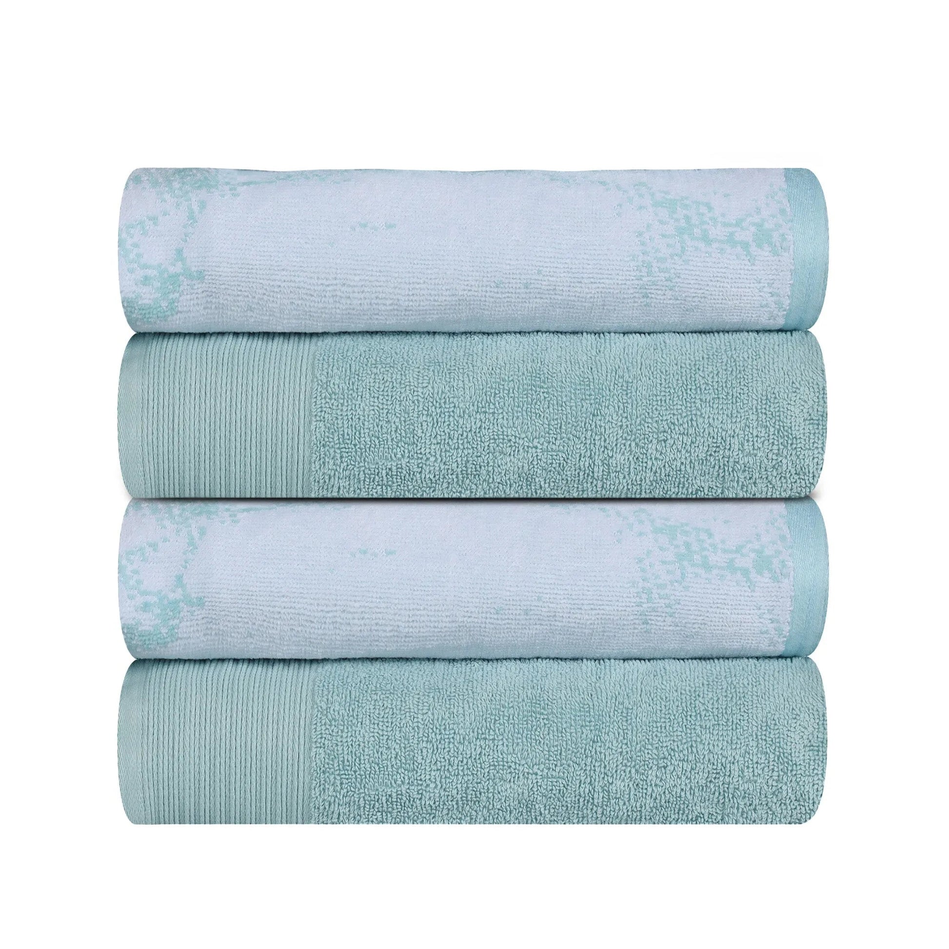 Transform your bathroom into a relaxing retreat with our Cotton Marble Solid Jacquard Border Bath Towel Set of 4.