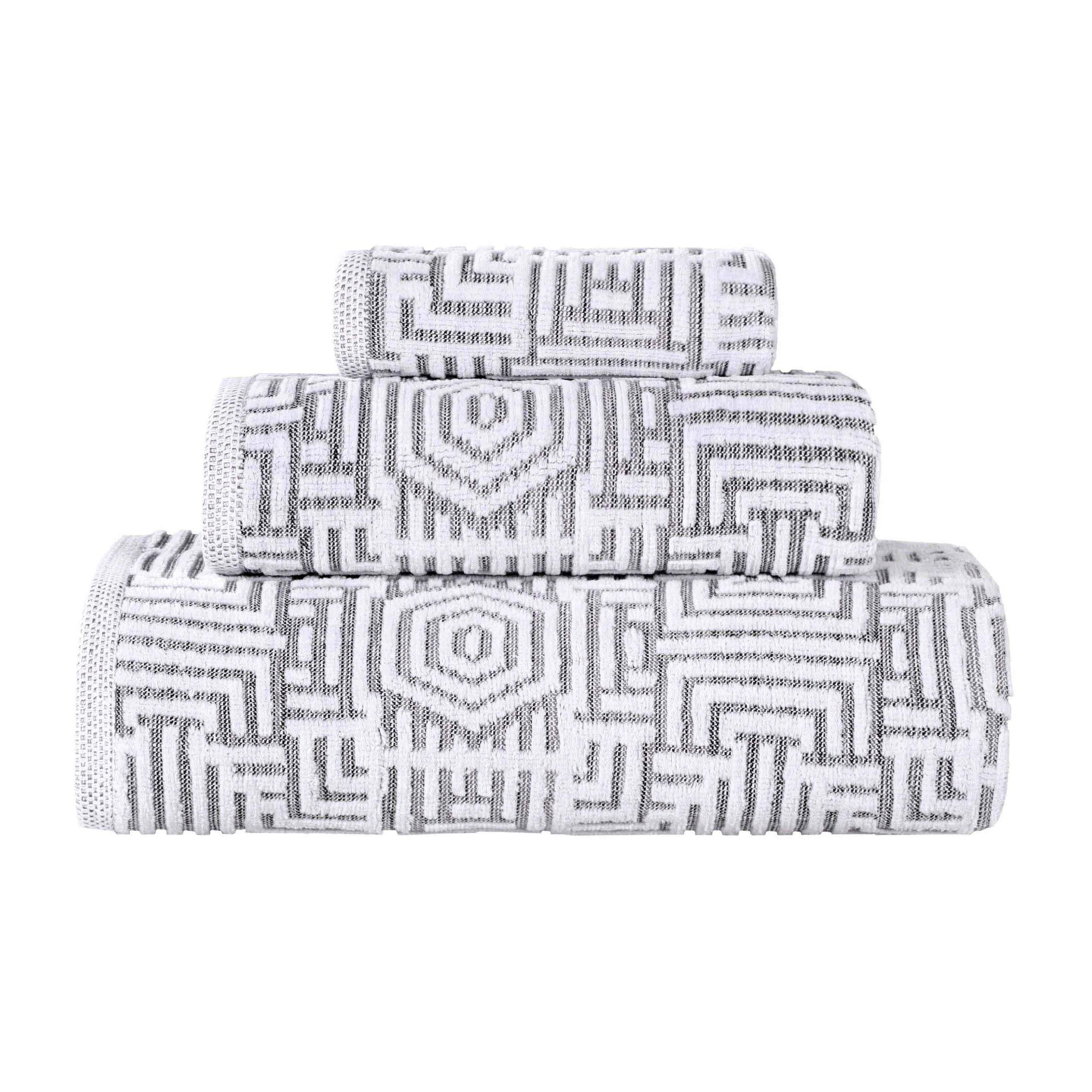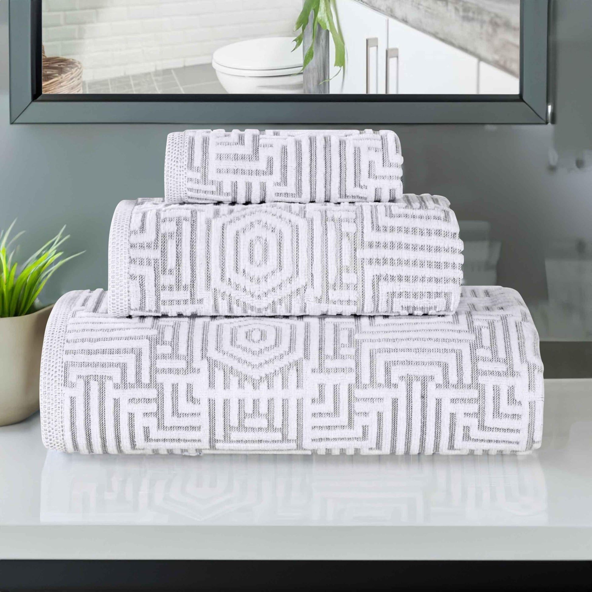 Cotton Modern Geometric Jacquard Plush Absorbent 3-Piece Towel Set