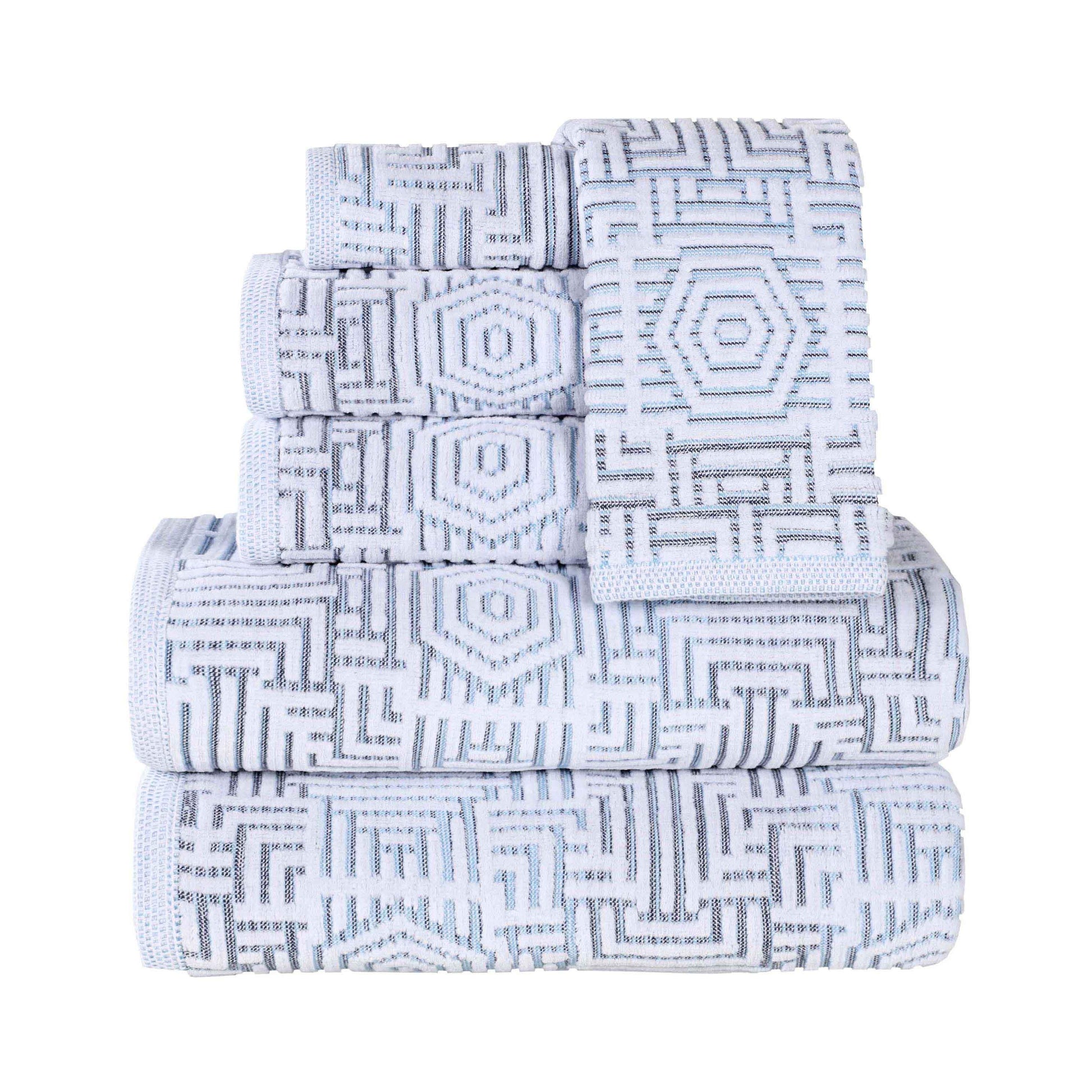 Cotton Modern Geometric Jacquard Plush Absorbent 6 Piece Towel Set