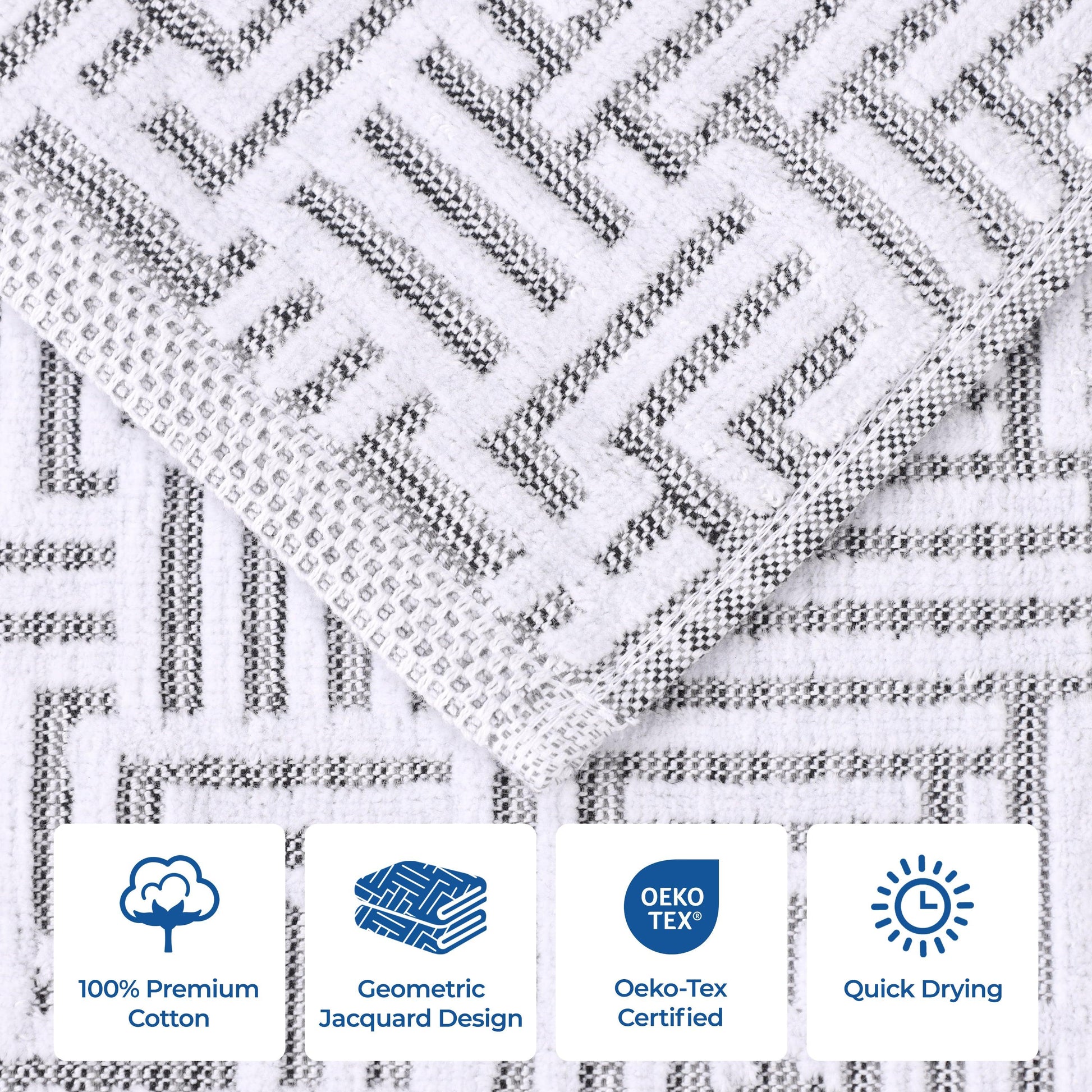 Cotton Modern Geometric Jacquard Plush Absorbent 9 Piece Towel Set
