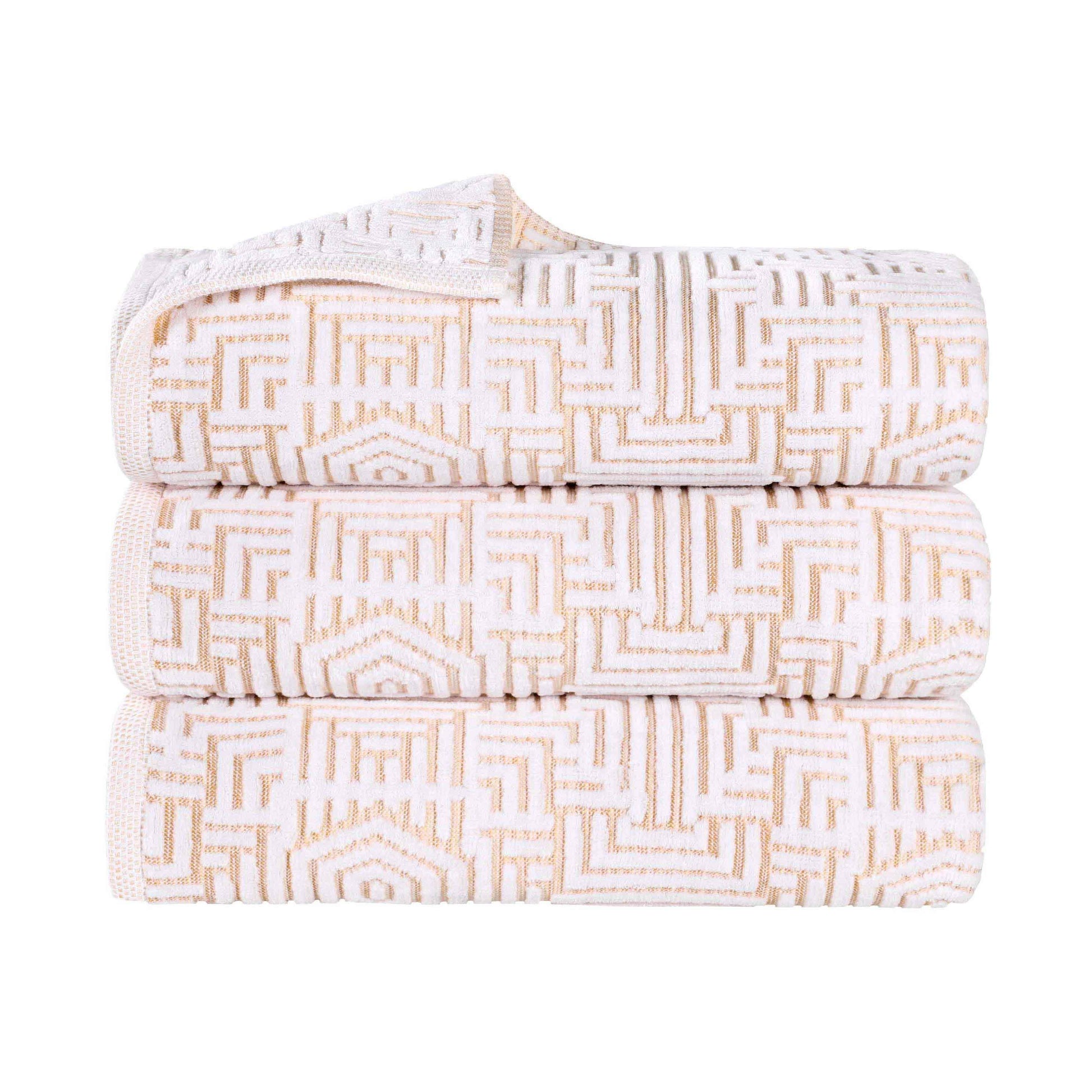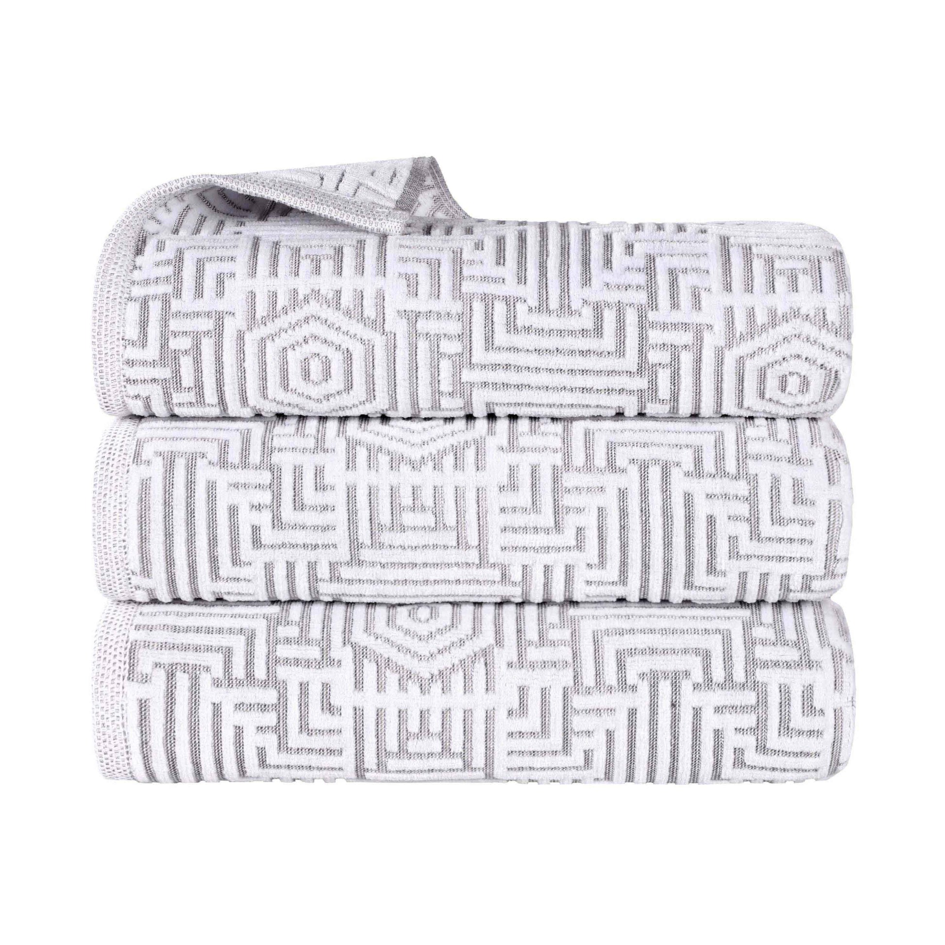 Cotton Plush Bath Towel Set 3-Piece Jasper Geometric Jacquard