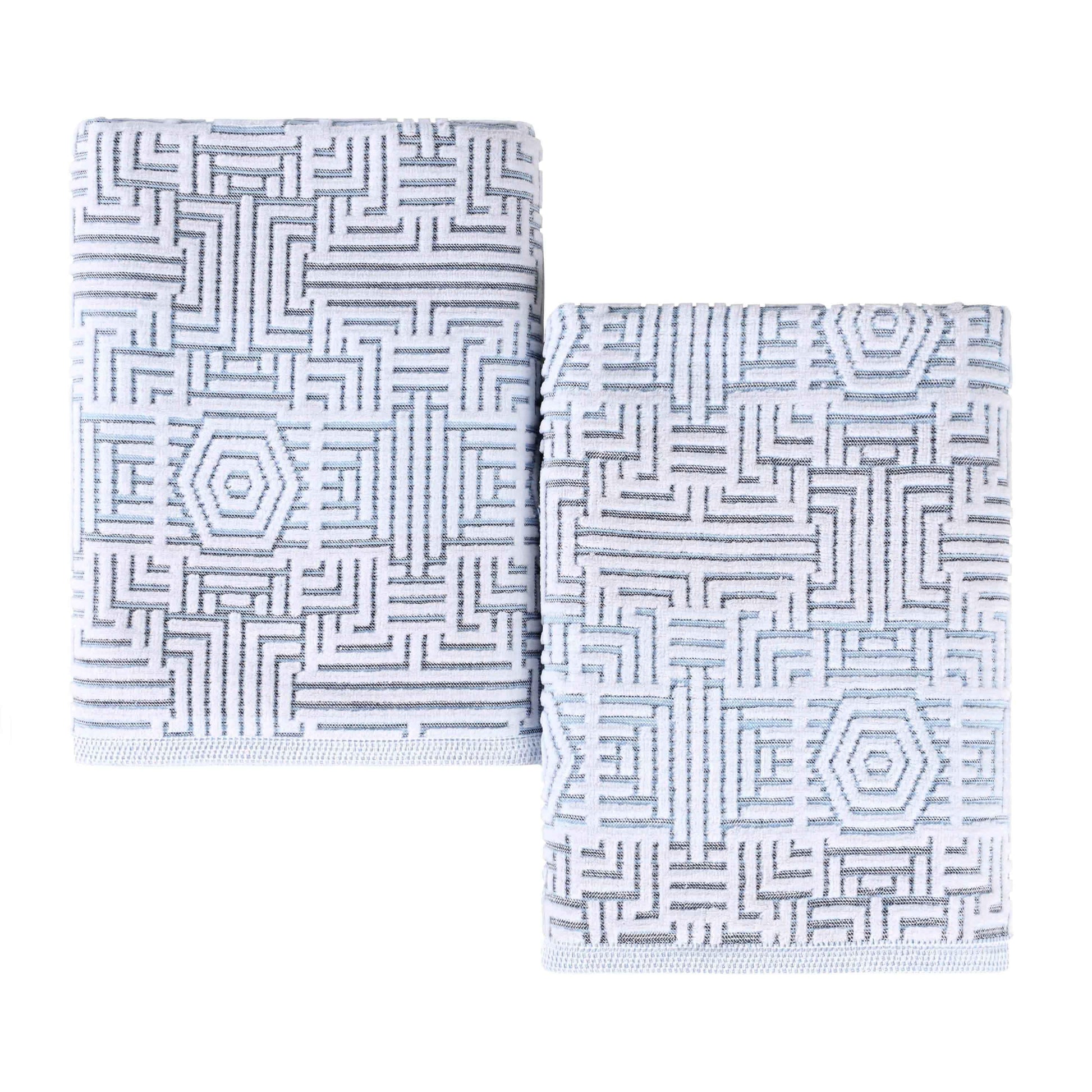 Cotton Modern Geometric Jacquard Plush Bath Sheet Set of 2