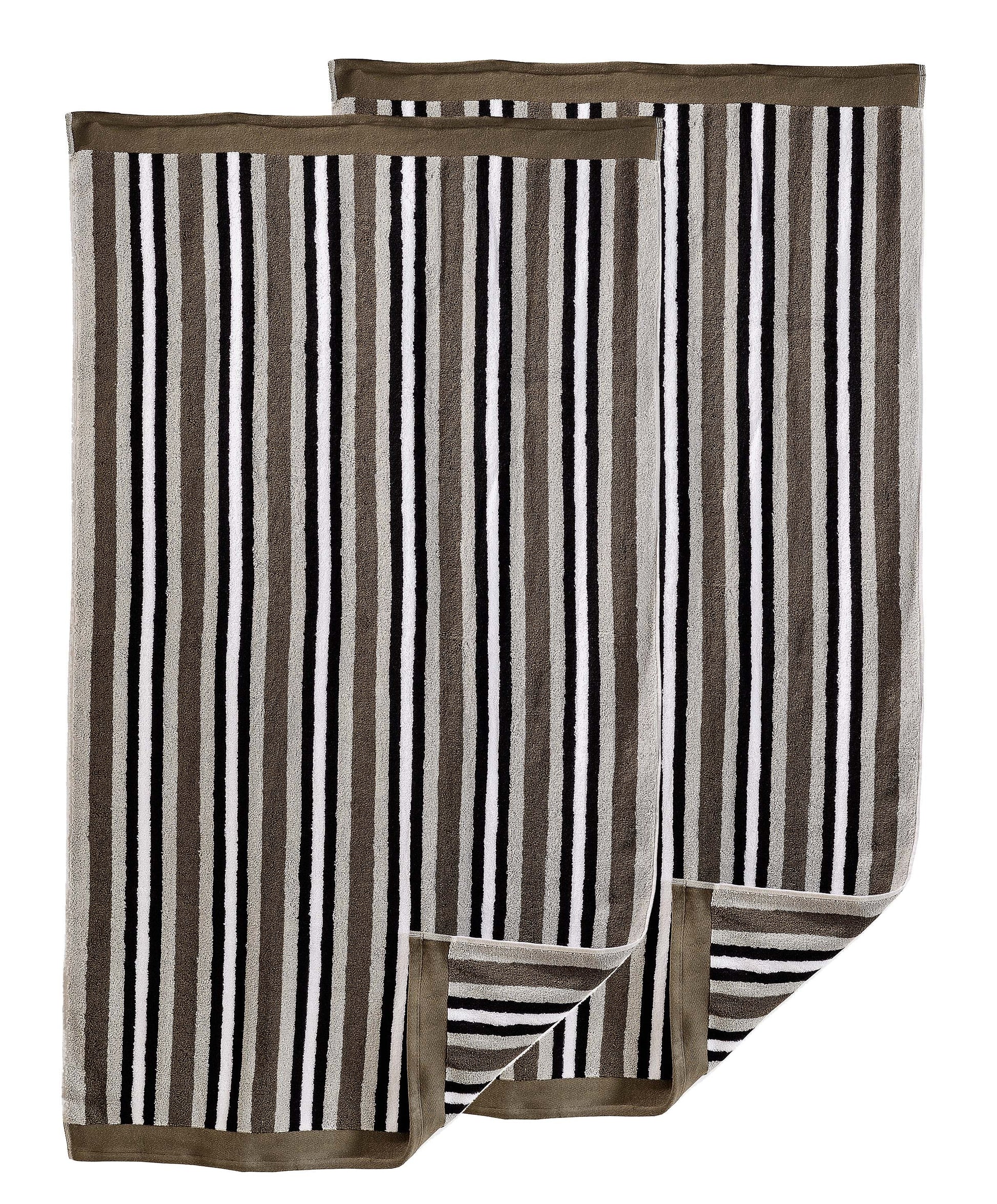 Decorate your bathroom with the Stripe 2-Piece Bath Towel Set. Expertly crafted with premium, Long Staple Cotton with a plush 550 GSM (grams per square meter), this duo is ultra-soft, durable, and long-lasting. Available in a variety of colors with a festive striped pattern and matching, solid border, these towels elevate the look of your master or guest bath.
