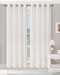 Embroidered Delicate Flower Sheer Grommet Curtain Panel Set