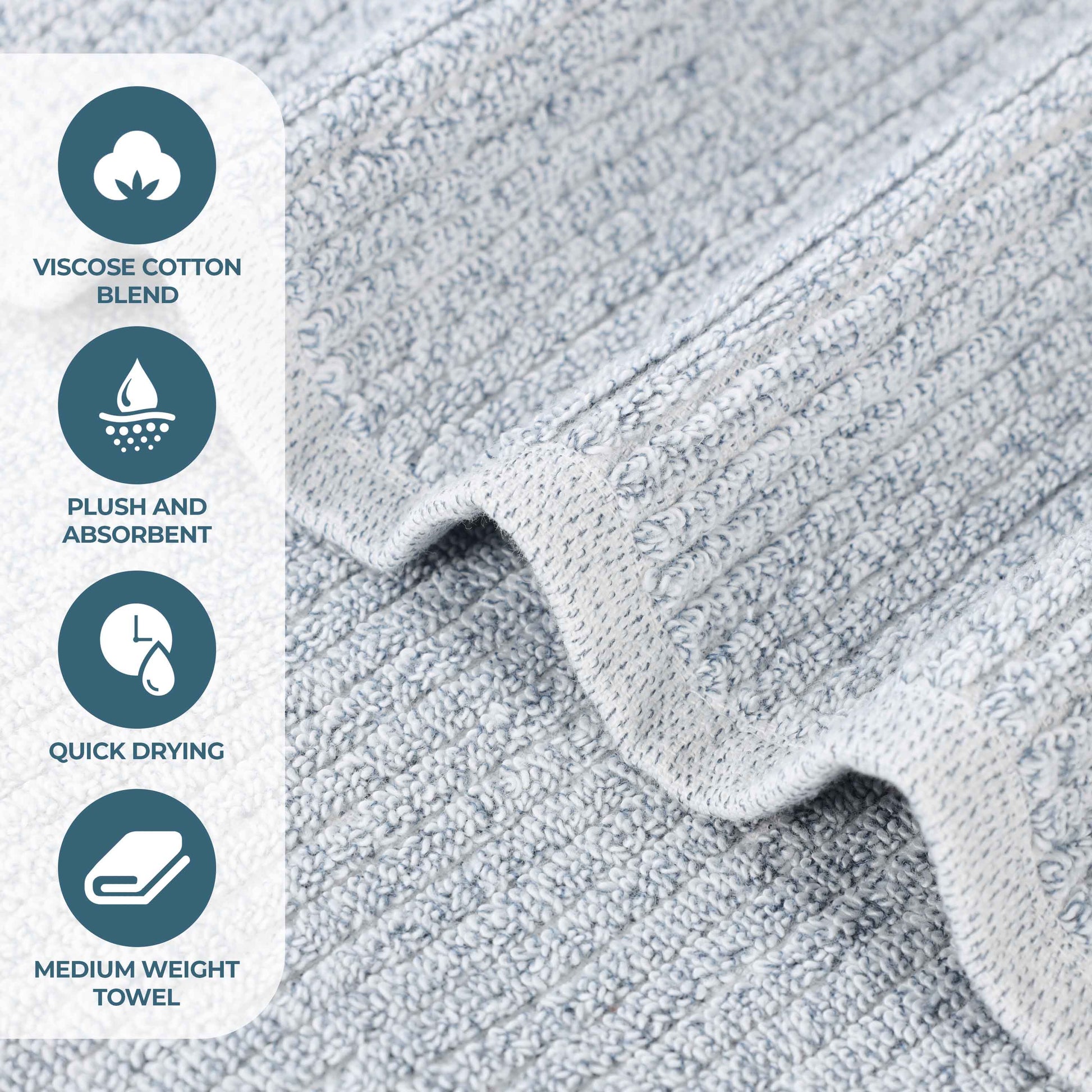 Embrace the ultimate in bath time luxury with our meticulously crafted Destin Cotton Blend Medium Weight Textured Ribbed Bath Sheets, a testament to sophisticated design and superior quality. Featuring a distinctive two-toned textured ribbed design, these bath sheets are an exquisite addition to any bathroom. Made from a premium blend of long-staple cotton and viscose, they offer unparalleled softness and exceptional absorbency, enveloping you in a cocoon of comfort after each bath or shower. Indulge in the art of self-care and experience the difference that true luxury can make. The vibrant colors, a result of viscose's exceptional dye affinity, add a touch of visual delight to your daily routine.