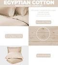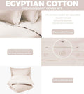 Crafted from a premium blend of 50% Egyptian Cotton and 50% Long Staple Combed Cotton, this set offers a luxurious feel and exceptional durability. The breathable, ultra-soft fabric features a subtle shimmer from its sateen weave, creating an elegant finish that's perfect for year-round comfort.