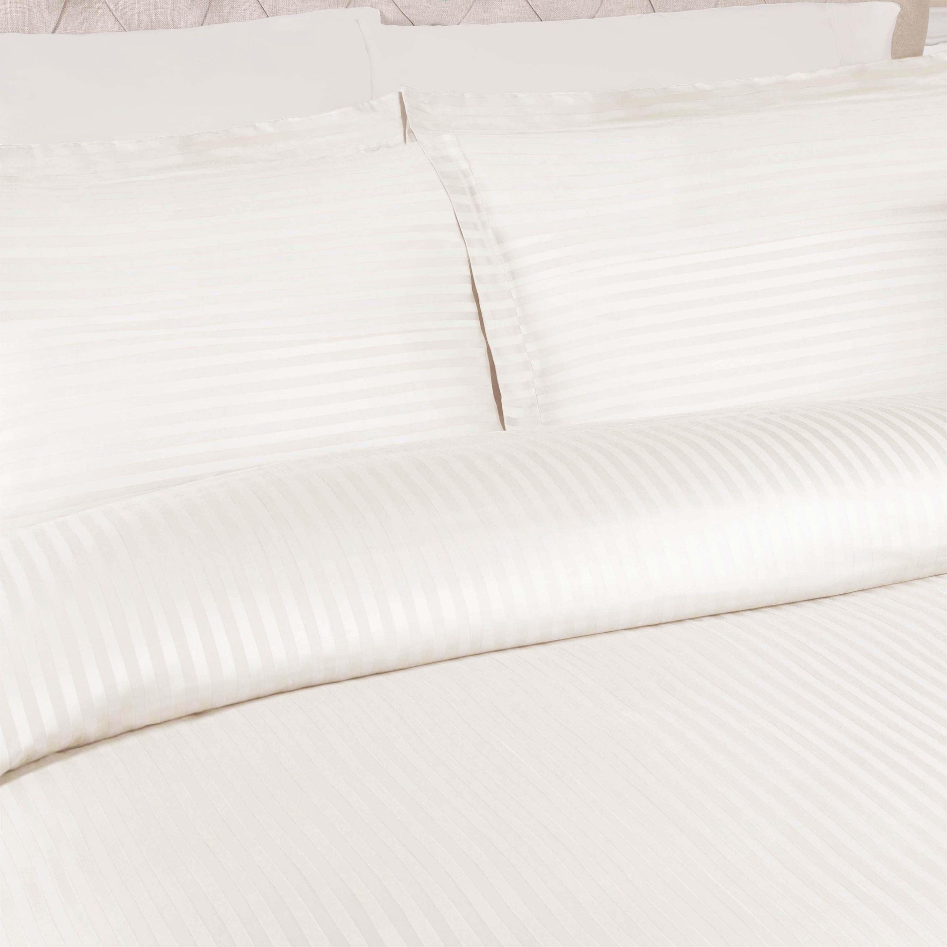Made from 100% naturally soft Egyptian Cotton, this duvet cover features a timeless stripe pattern that brings visual texture and elegance to your bedroom. The breathable sateen weave adds a gentle shimmer, creating a soothing atmosphere for sleep.
