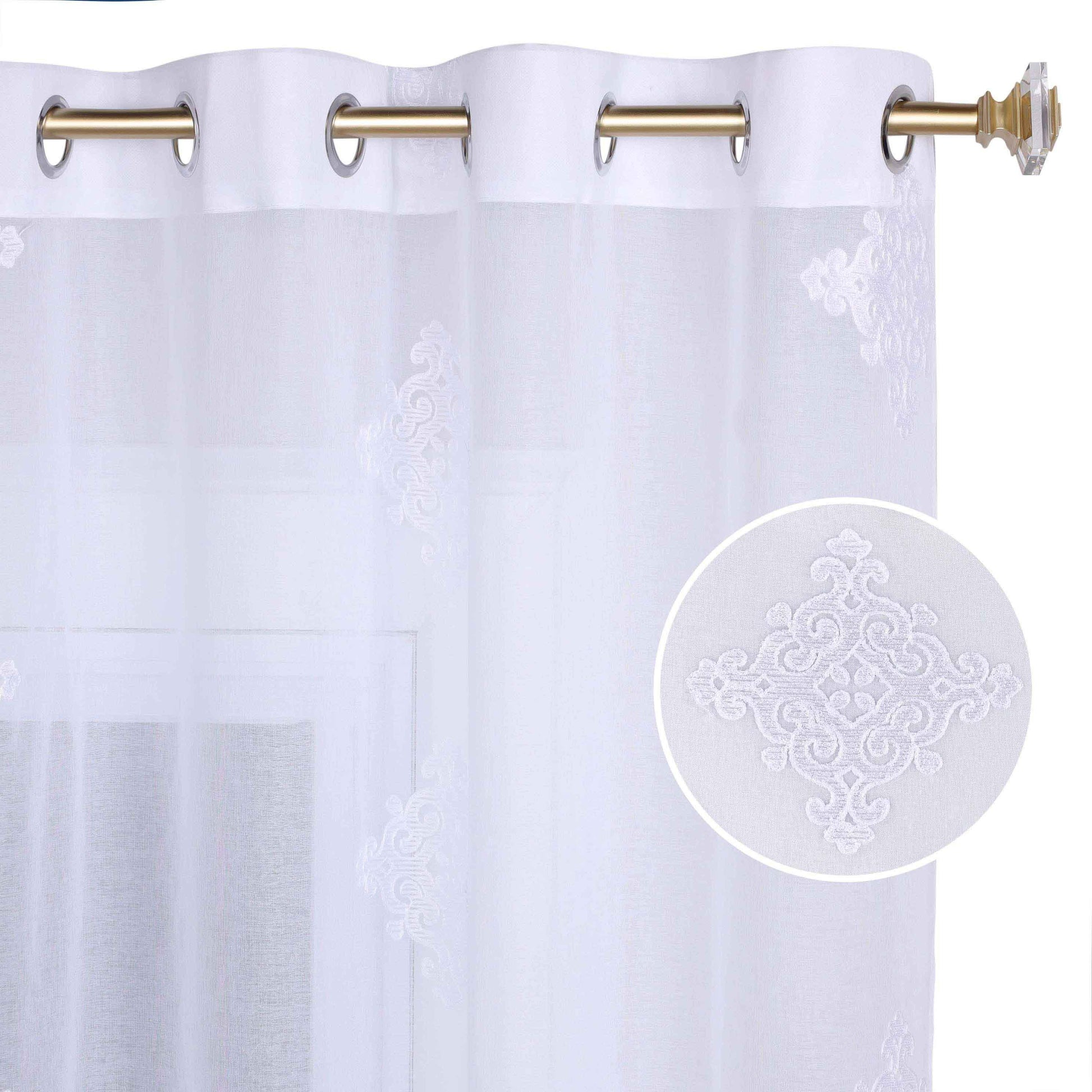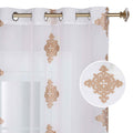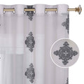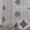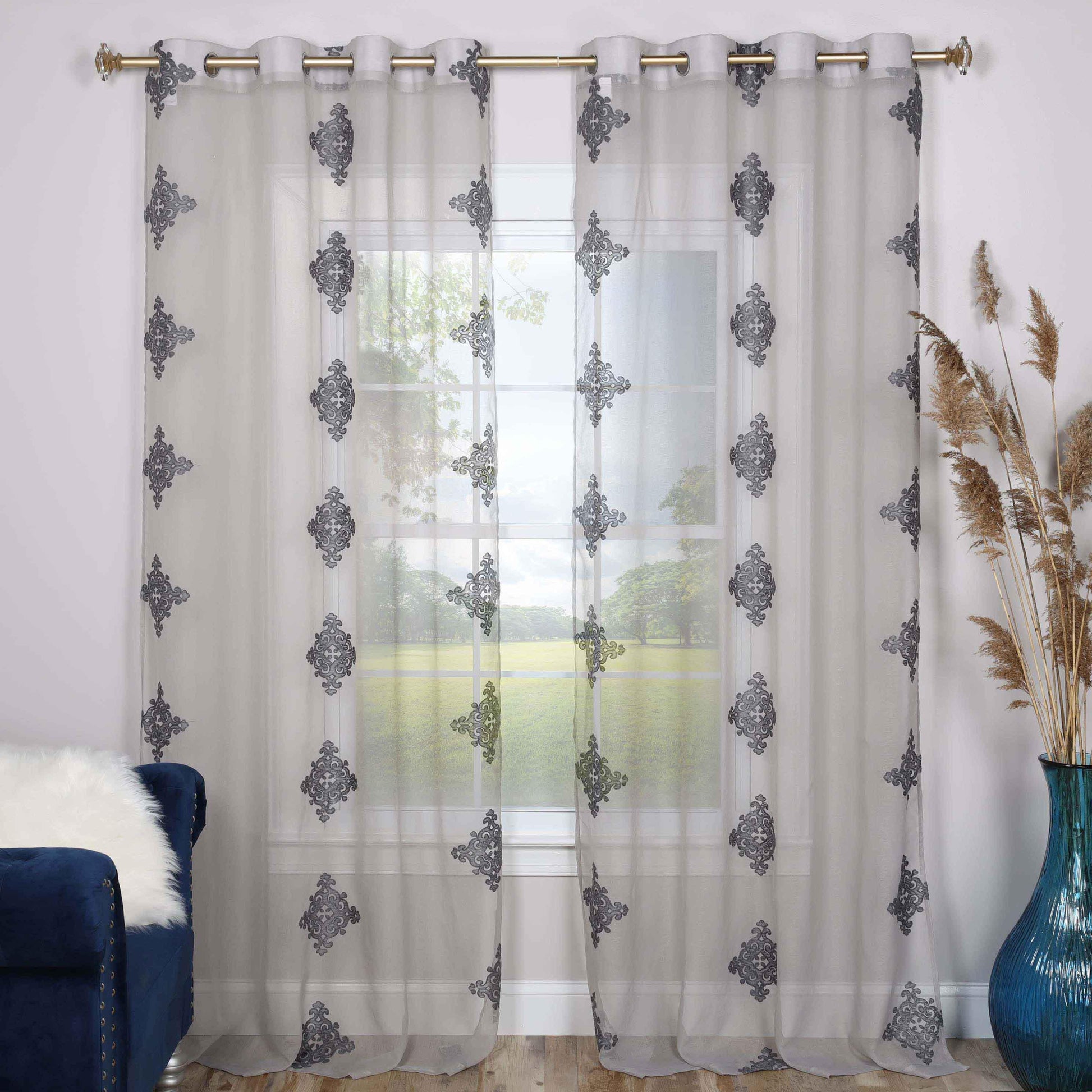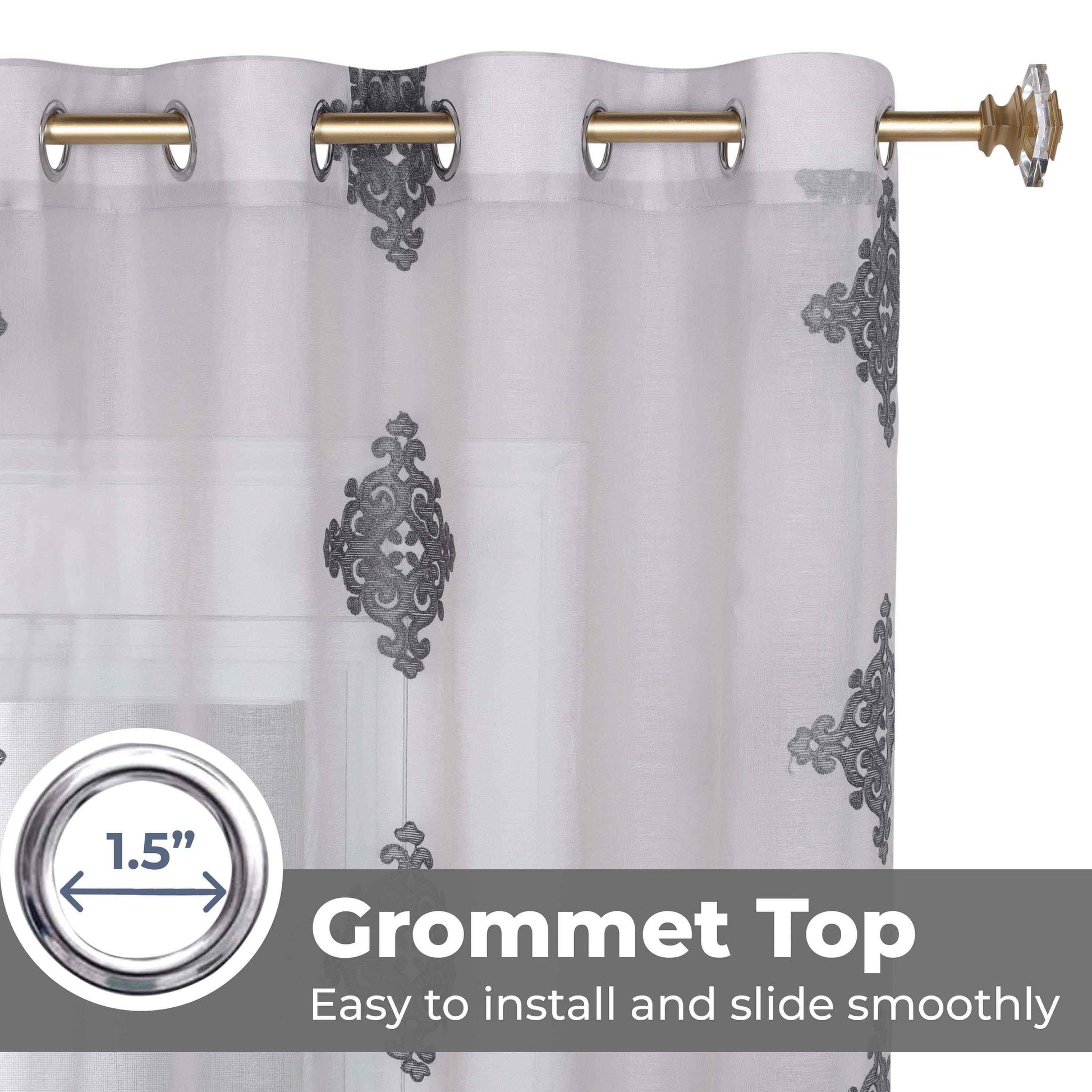 Traditional Embroidered Damask Sheer Grommet Curtain Panel Set