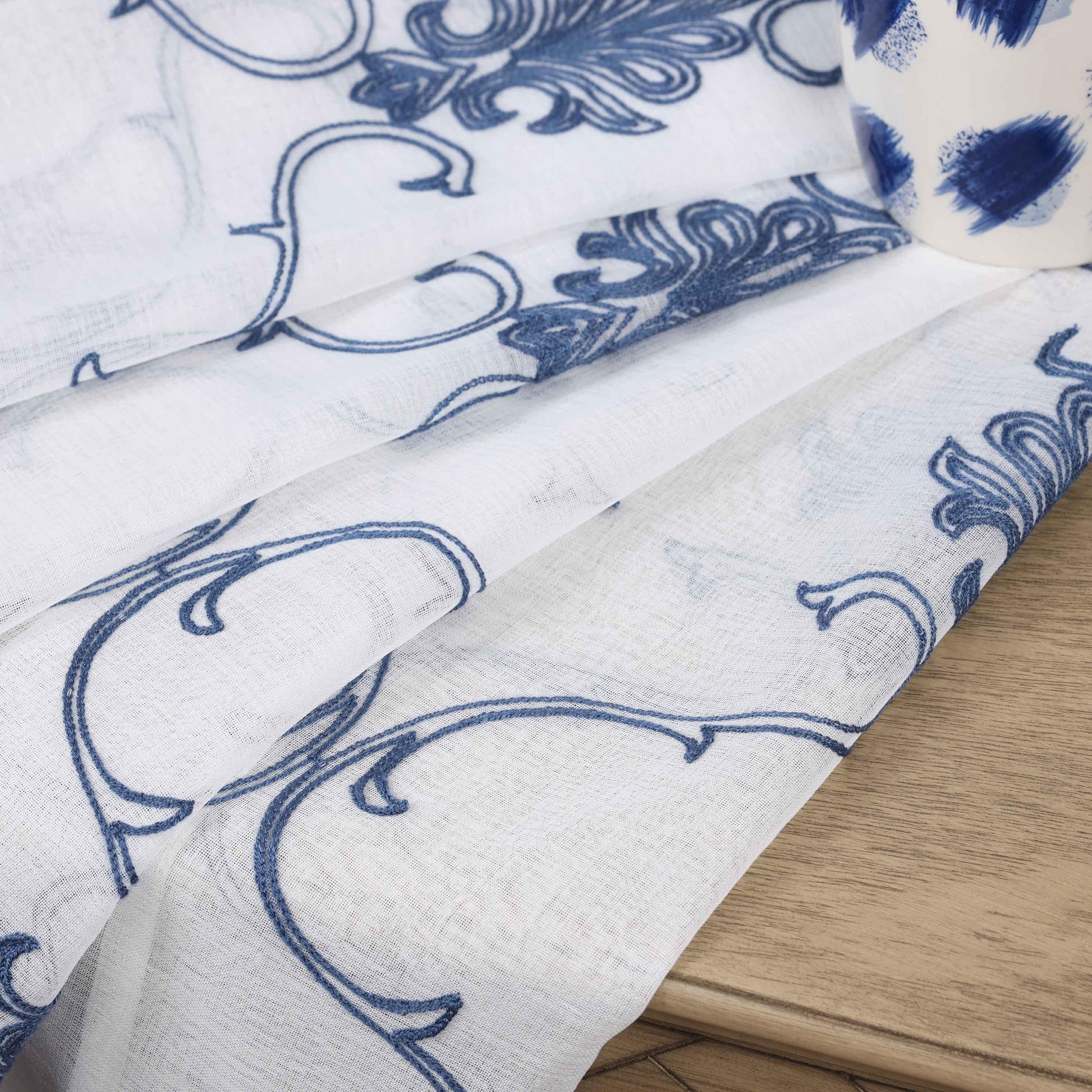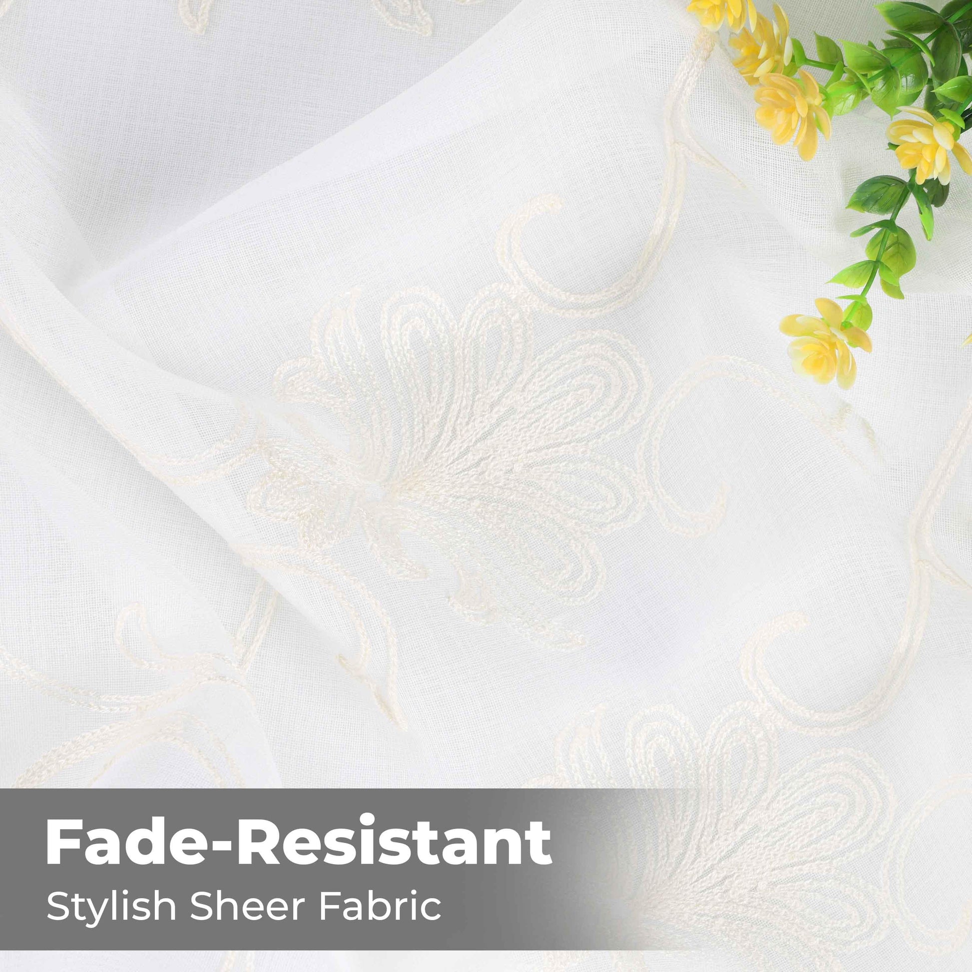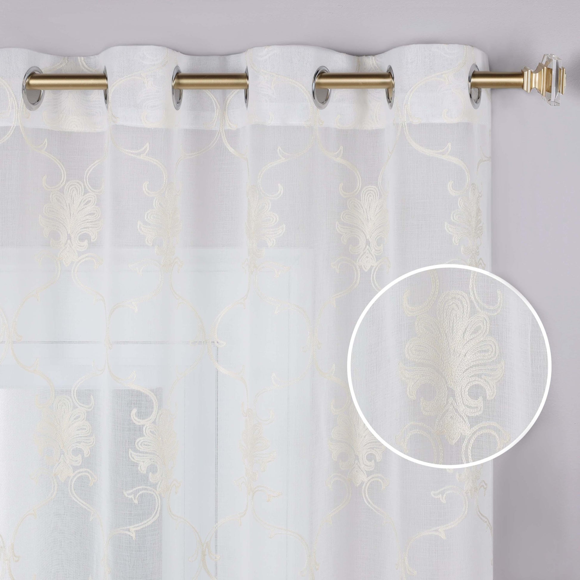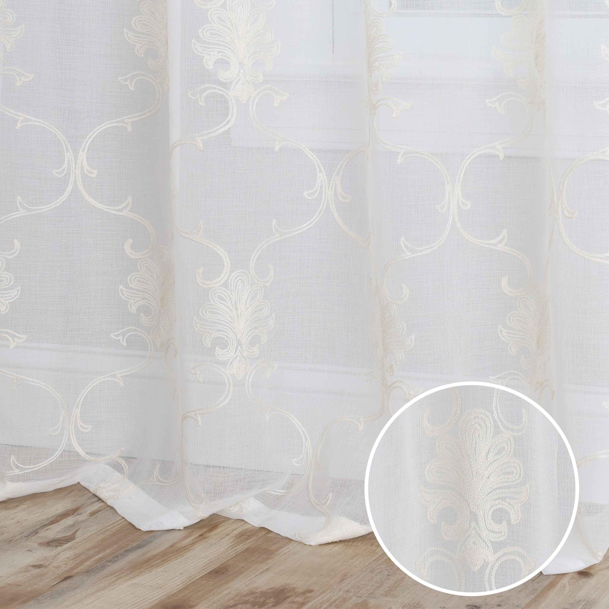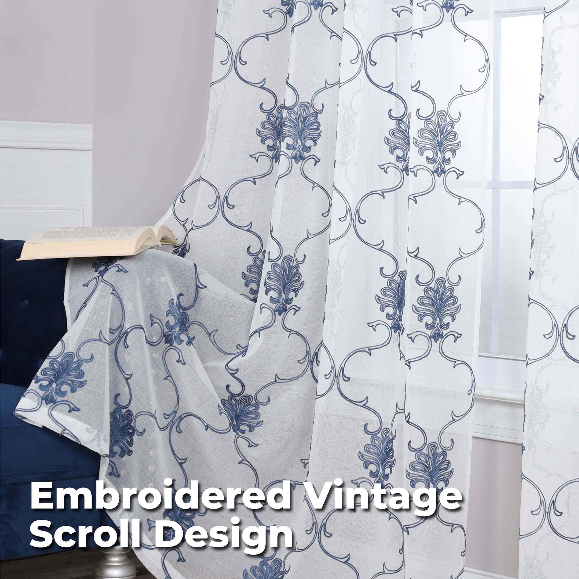 Embroidered Elegant Scroll Sheer Grommet Curtain Panel Set
