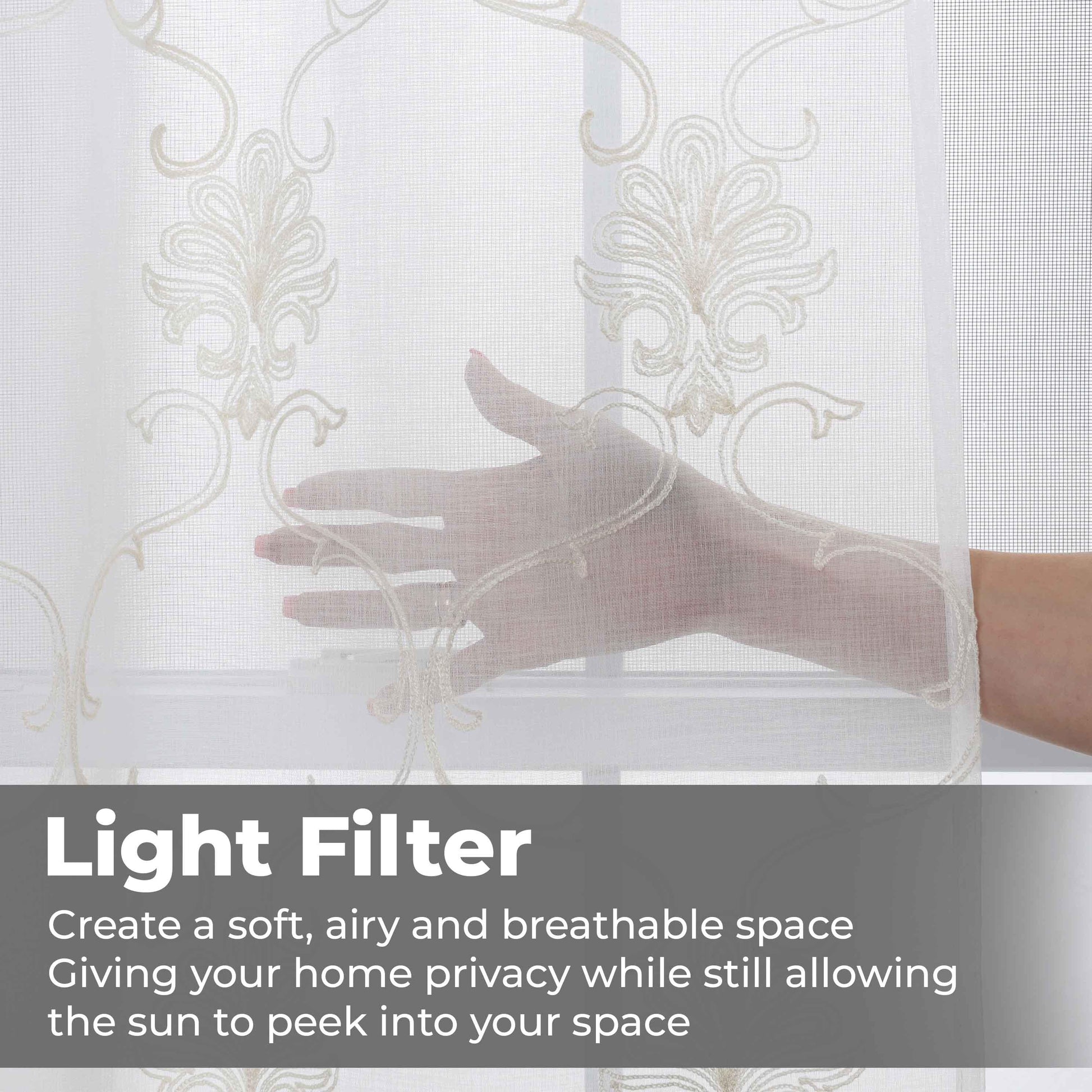 - Additional Features: Sheer curtains provide privacy while still allowing the sun to peek into your space; Stream natural light into your office, bedroom, living room, kitchen, kids room, or nursery; Perfect for maintaining plants; Fade, wrinkle, and shrink resistant.