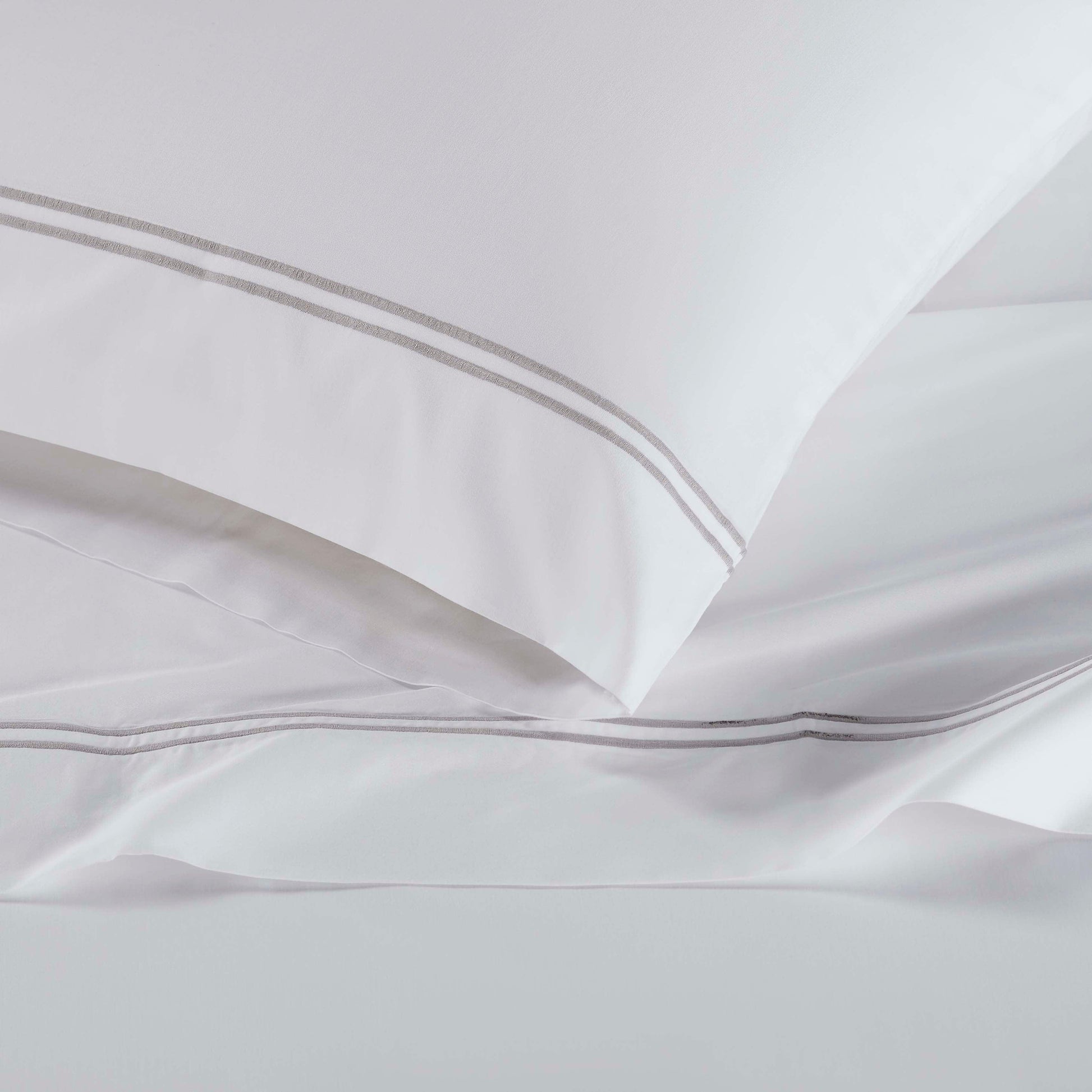 Featuring elegant two-line embroidery and a delicate shimmer finish, this sheet set blends understated luxury with everyday practicality.
